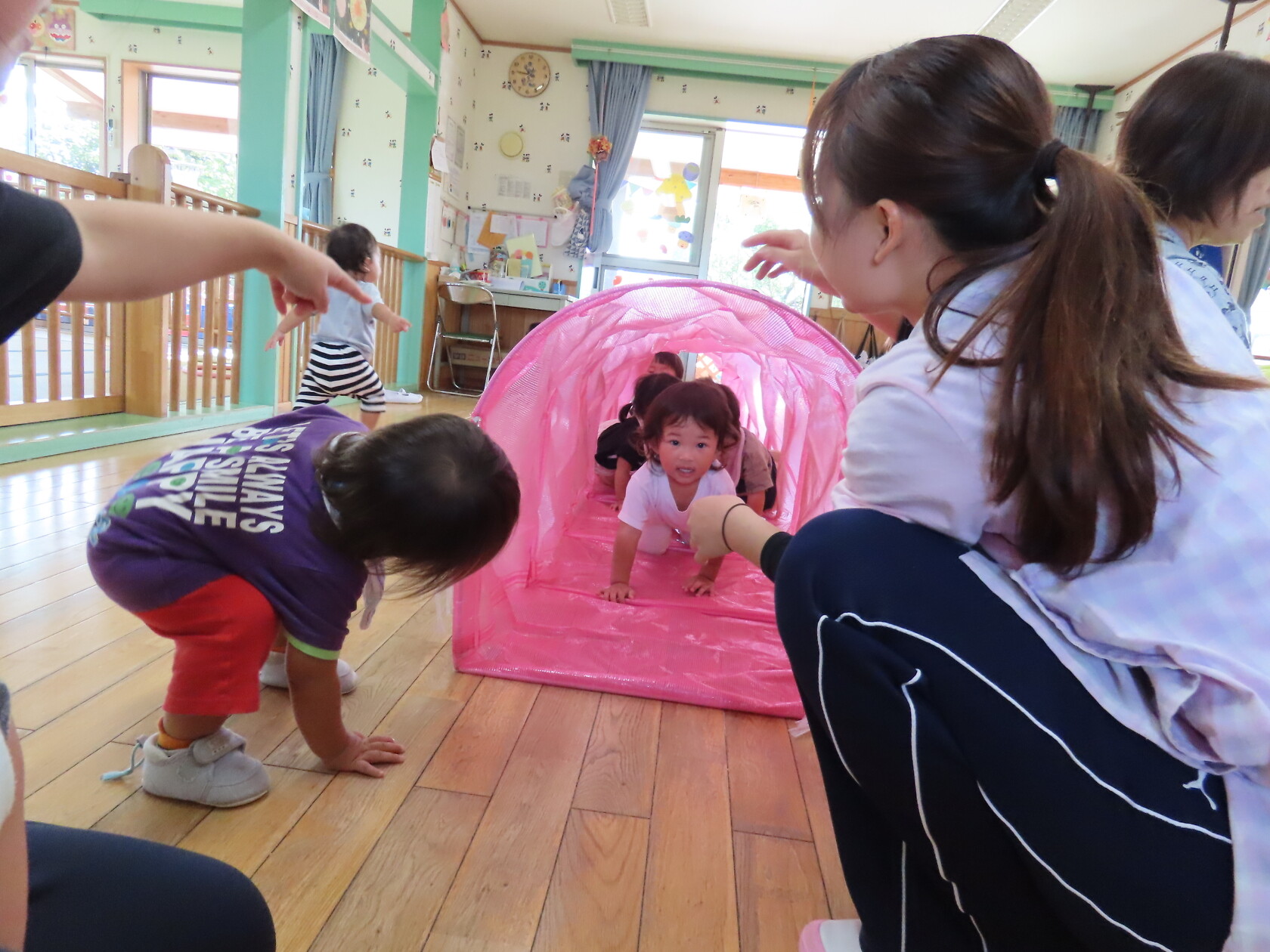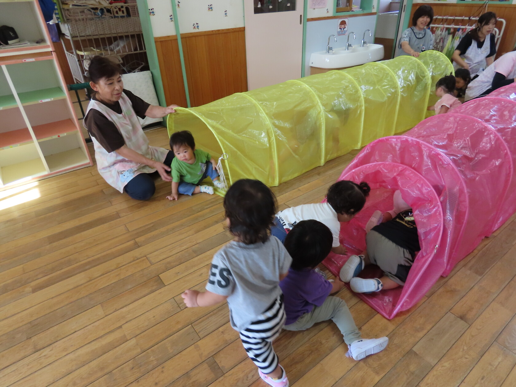 今日のできごと(さくら) 公開済み: 2024年9月26日更新: 2024年9月26日 今日は、運動会でやるドリームトンネルをお部屋に出して遊びました🎵出口で待っていると、みんないい表情をしていて、運動会本番が楽しみですね!!これから少しずつ練習も始まるので、体調に気を付けながら取り組んでいけたらと思います😊✨