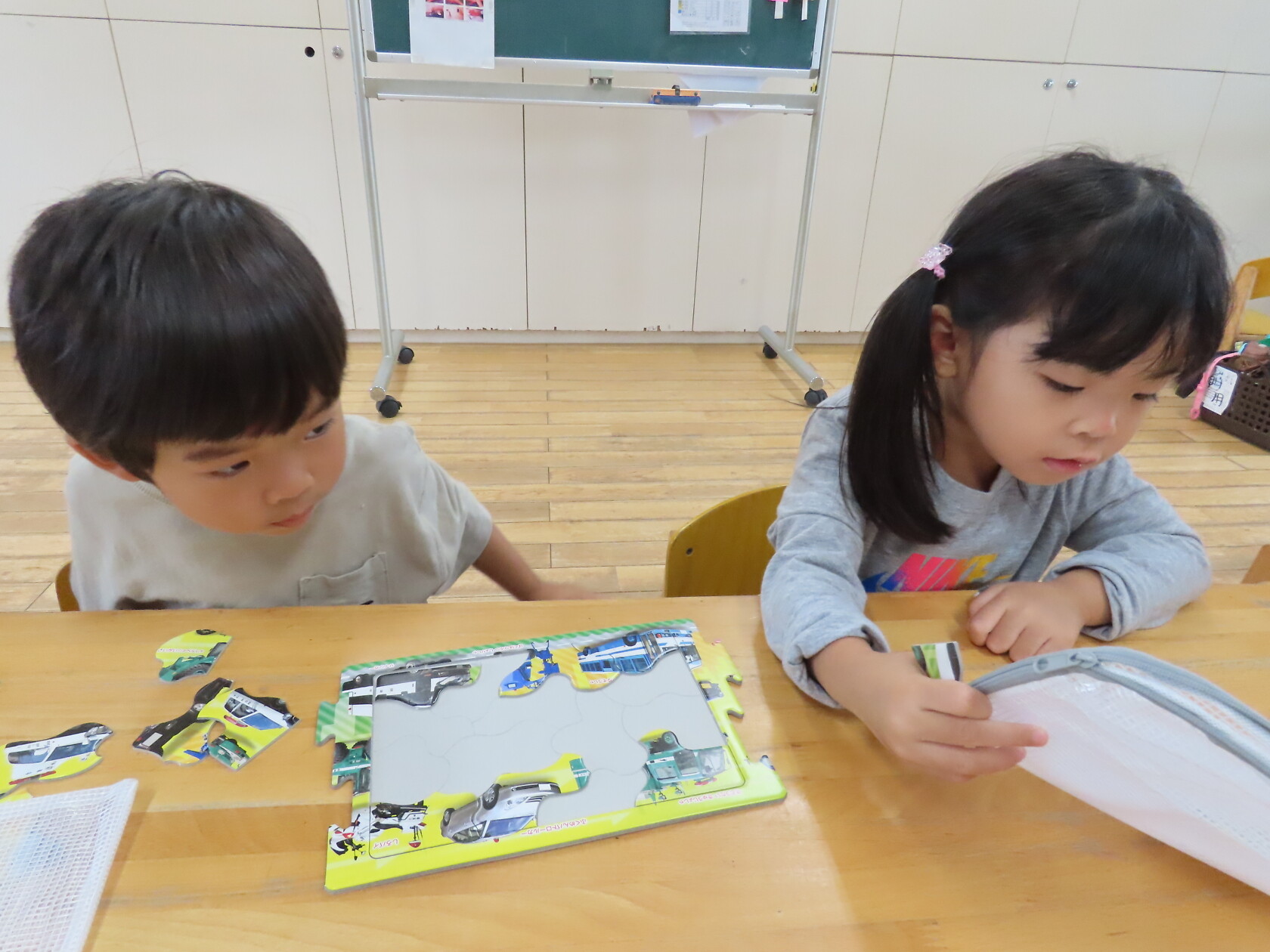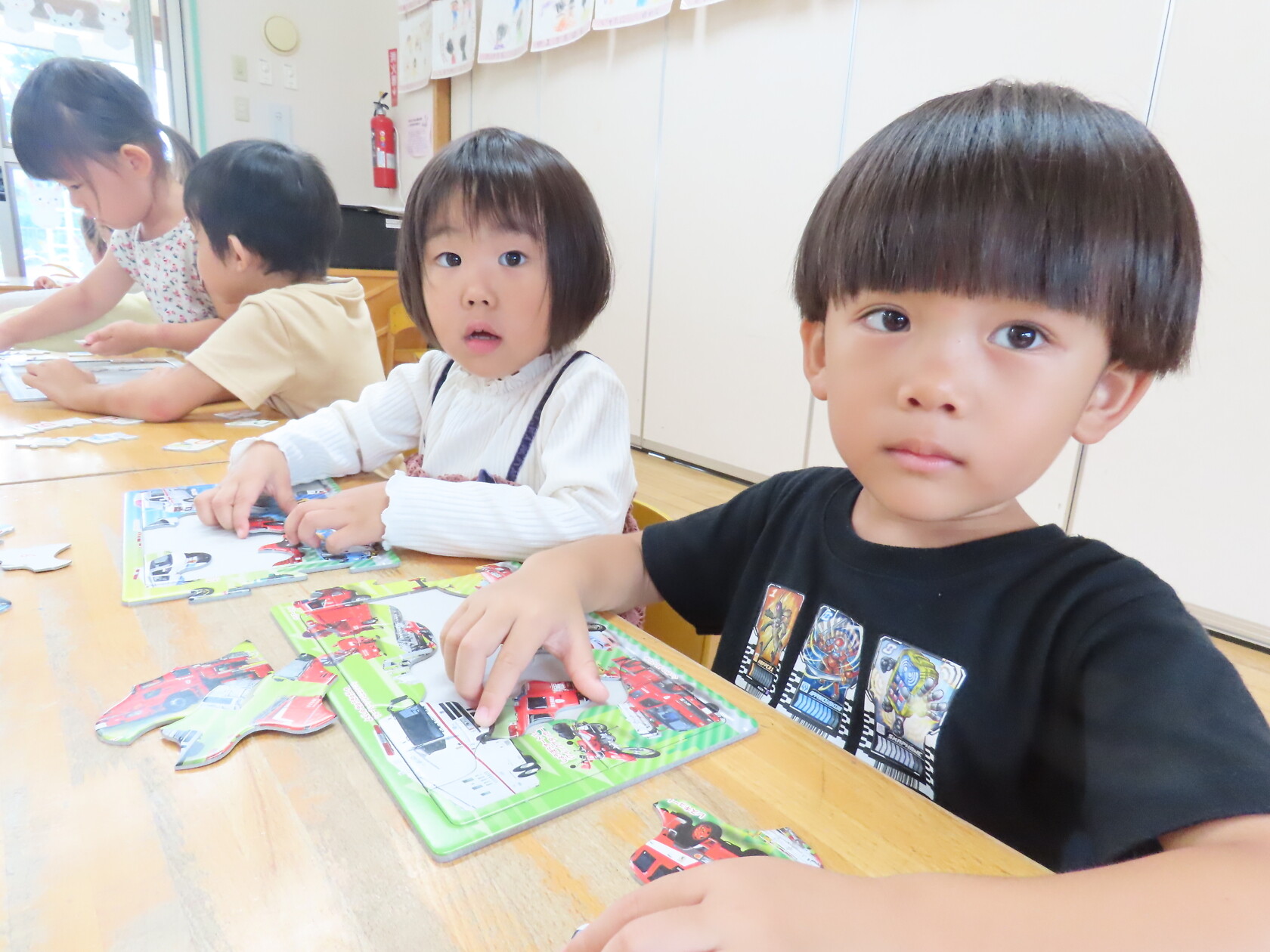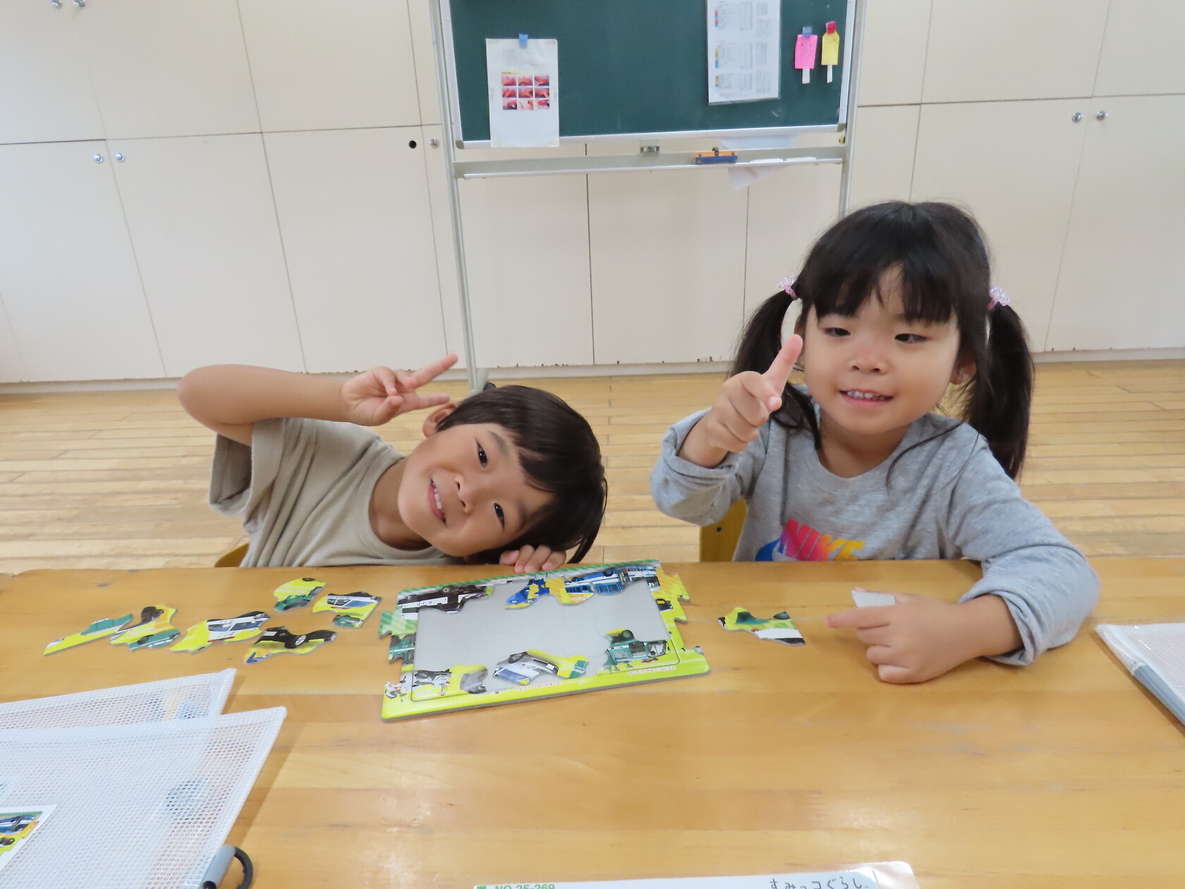 今日のできごと(すみれ) 公開済み: 2024年10月8日更新: 2024年10月8日 今日は、未満児さんのダンスを見学した後、すみれぐみさんも一緒にダンスをしたり、親子競技や鼓笛パレードの練習をしました✨ 今、すみれぐみさんではパズルブーム到来‼ 少し時間があると「先生、パズルやりたーい!!」とみんなから声があがります。 今日は、パズルを楽しんでいる姿のひとこまです😊