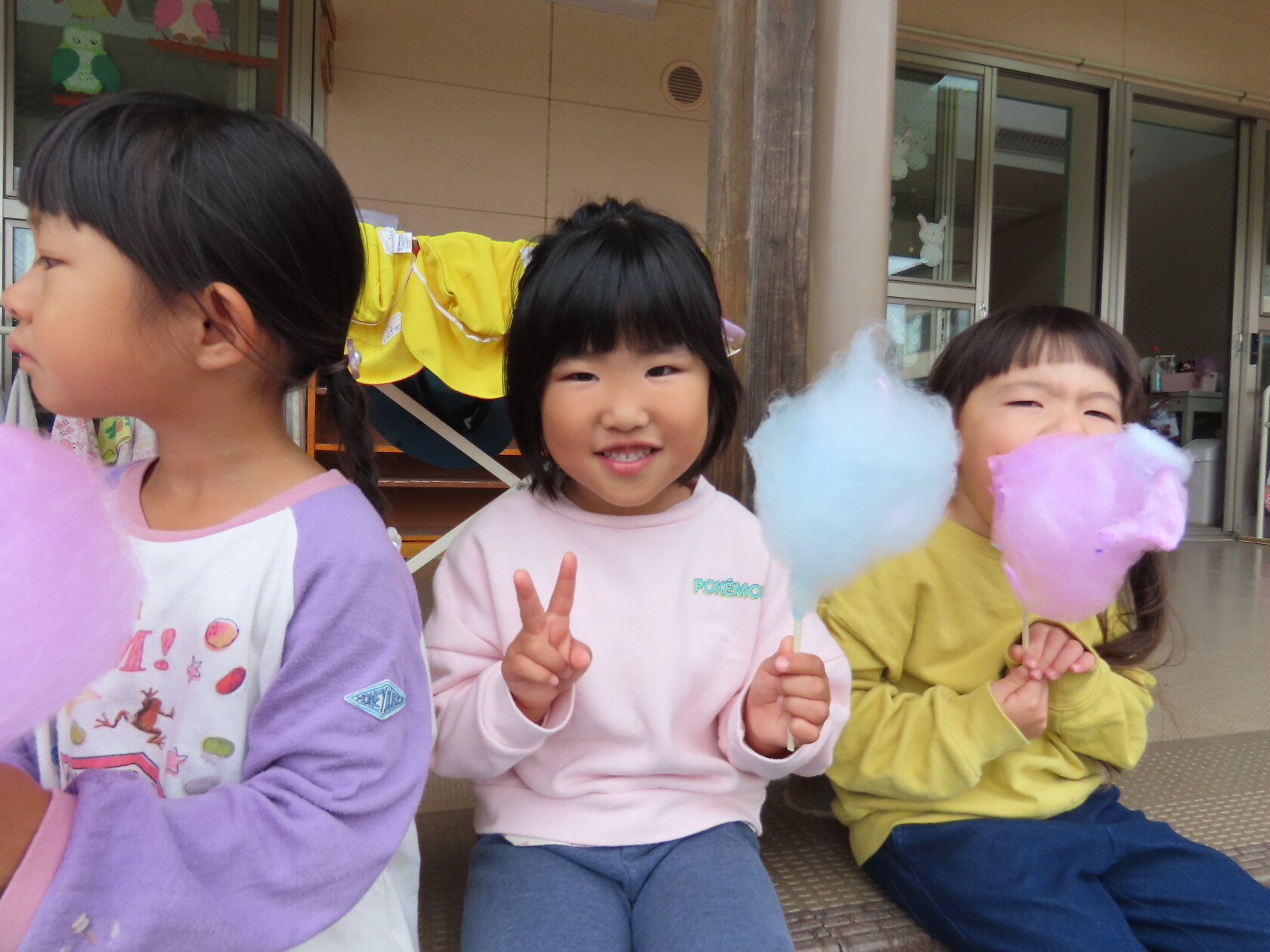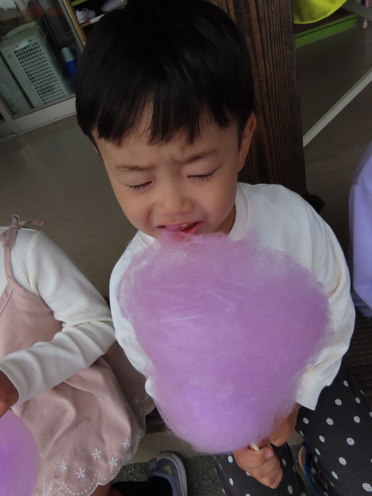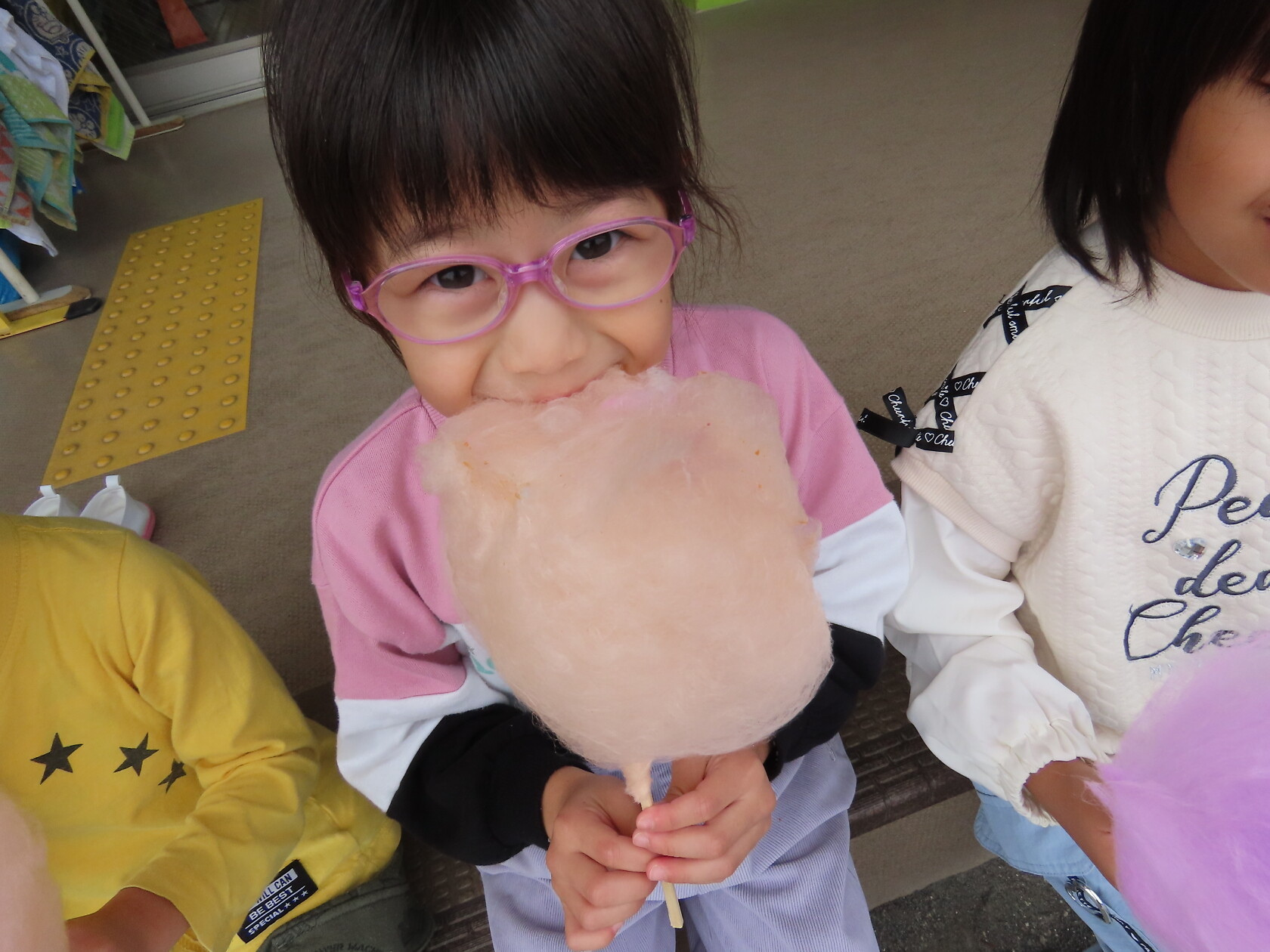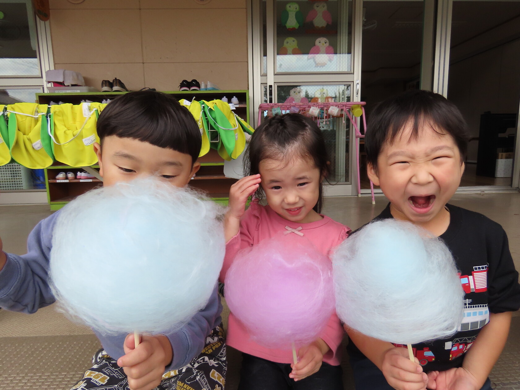 運動会頑張りました!! 公開済み: 2024年10月21日更新: 2024年10月21日 今日は運動会お疲れ様ということでわたあめ大会をやりました!! 自分の好きな色を選んでわたあめを楽しんでいました😁 保育園にはプロがいるので写真のようにとてもおおきなわたあめがつくれます!!