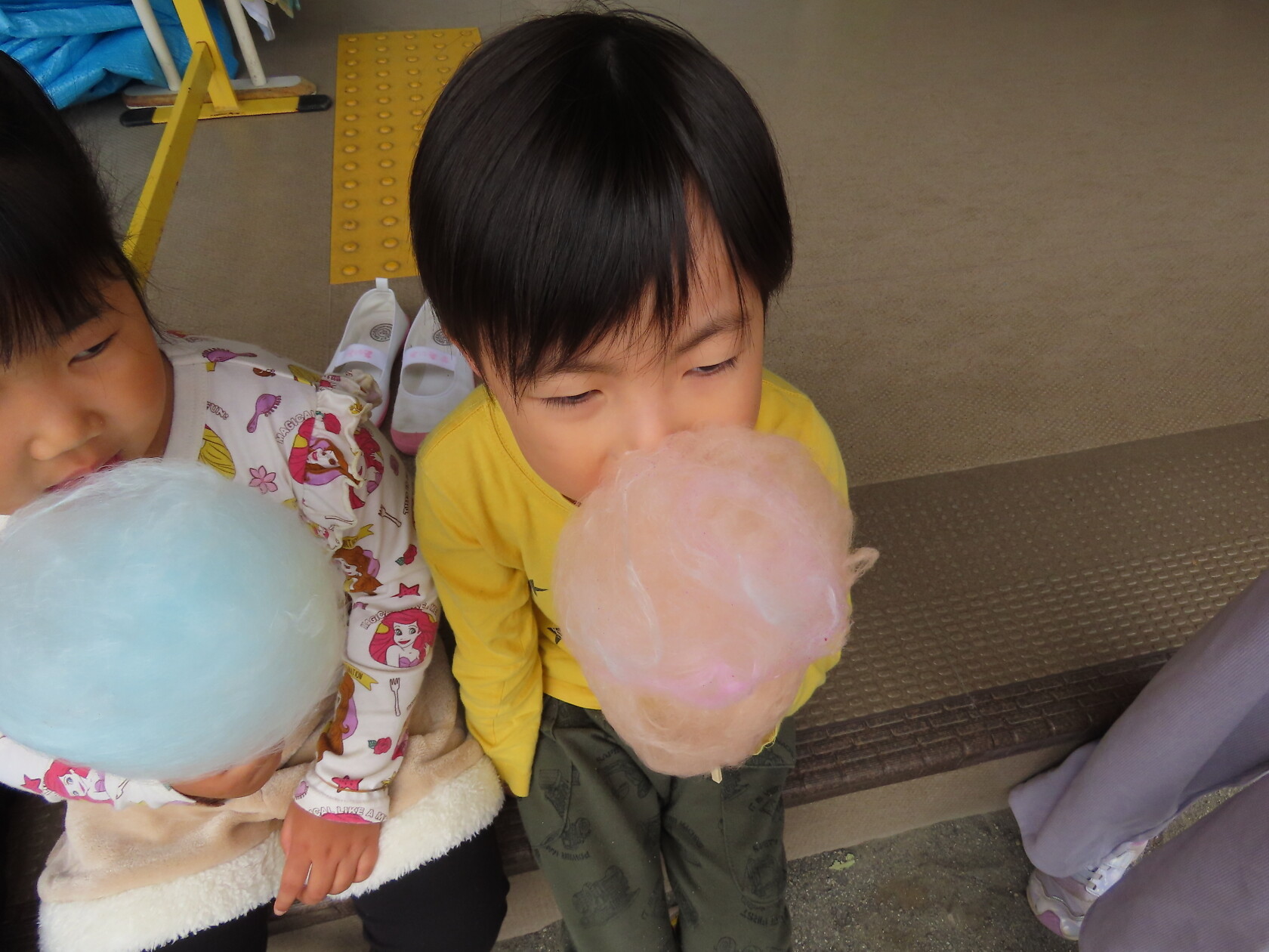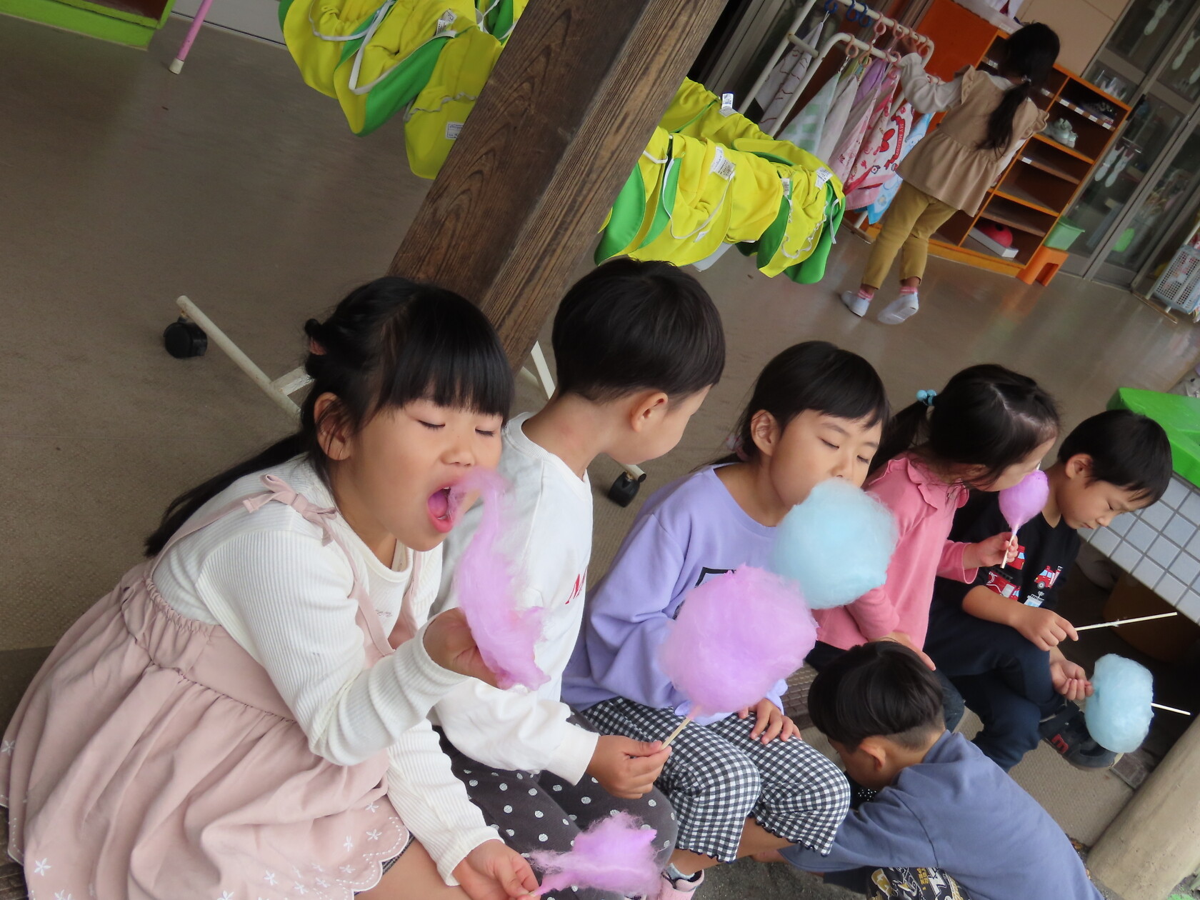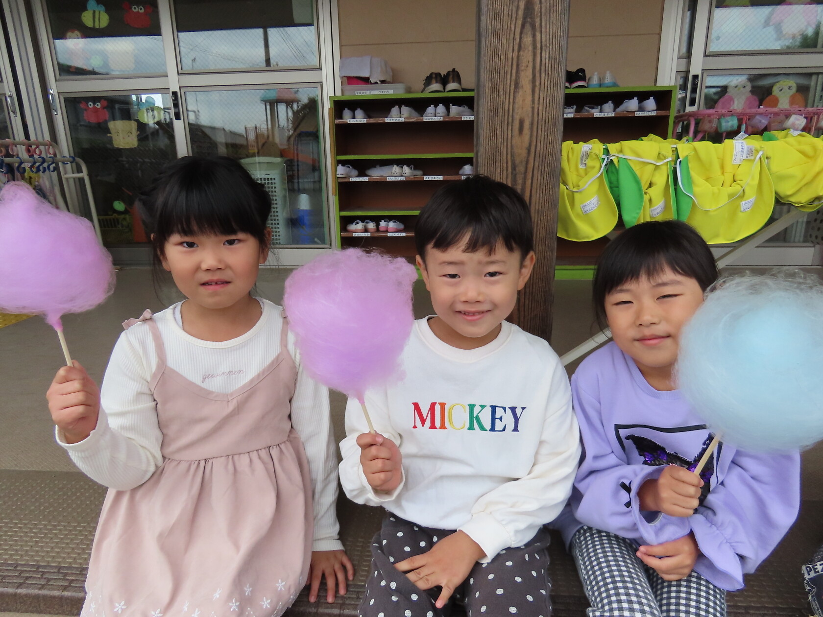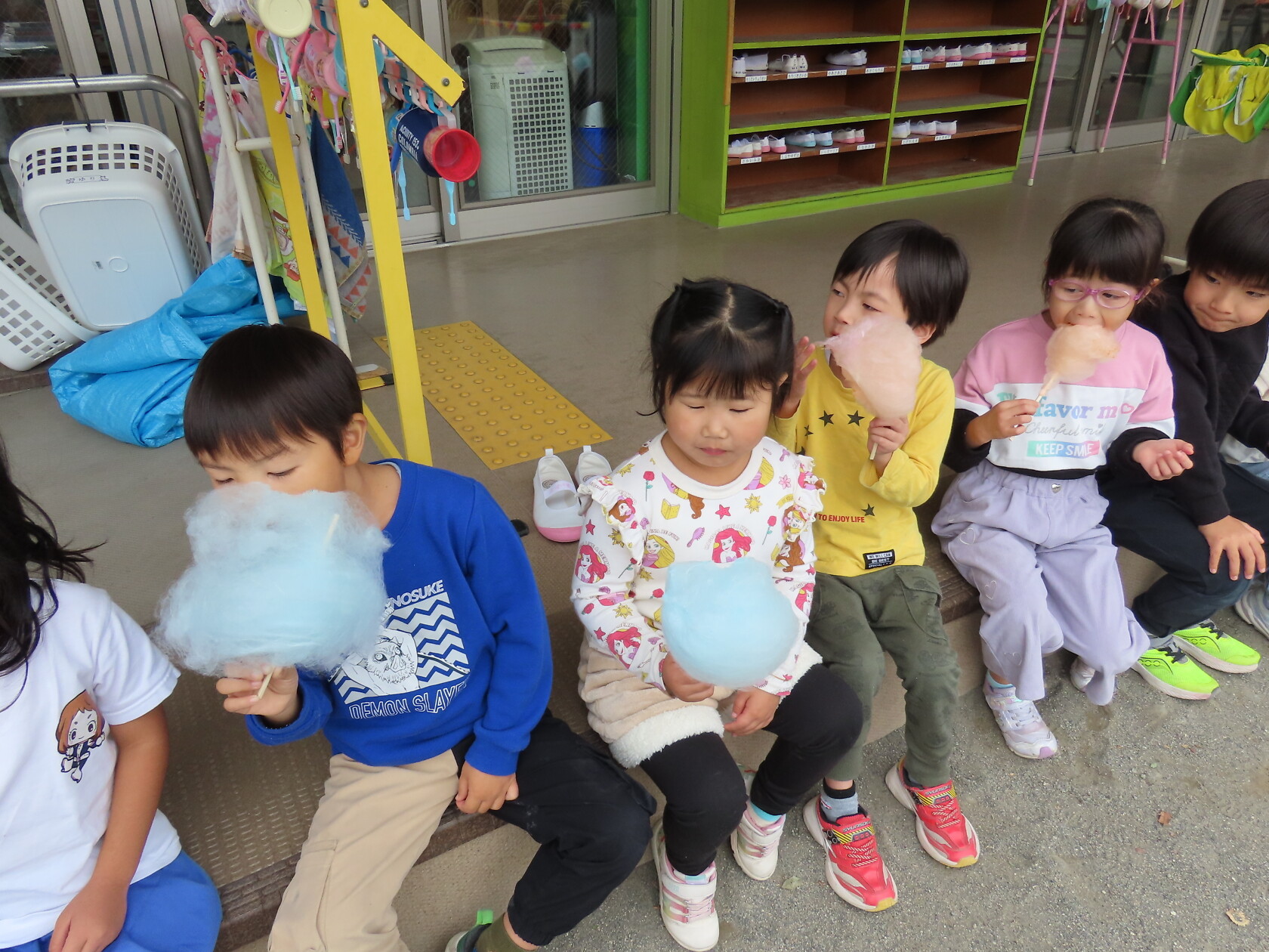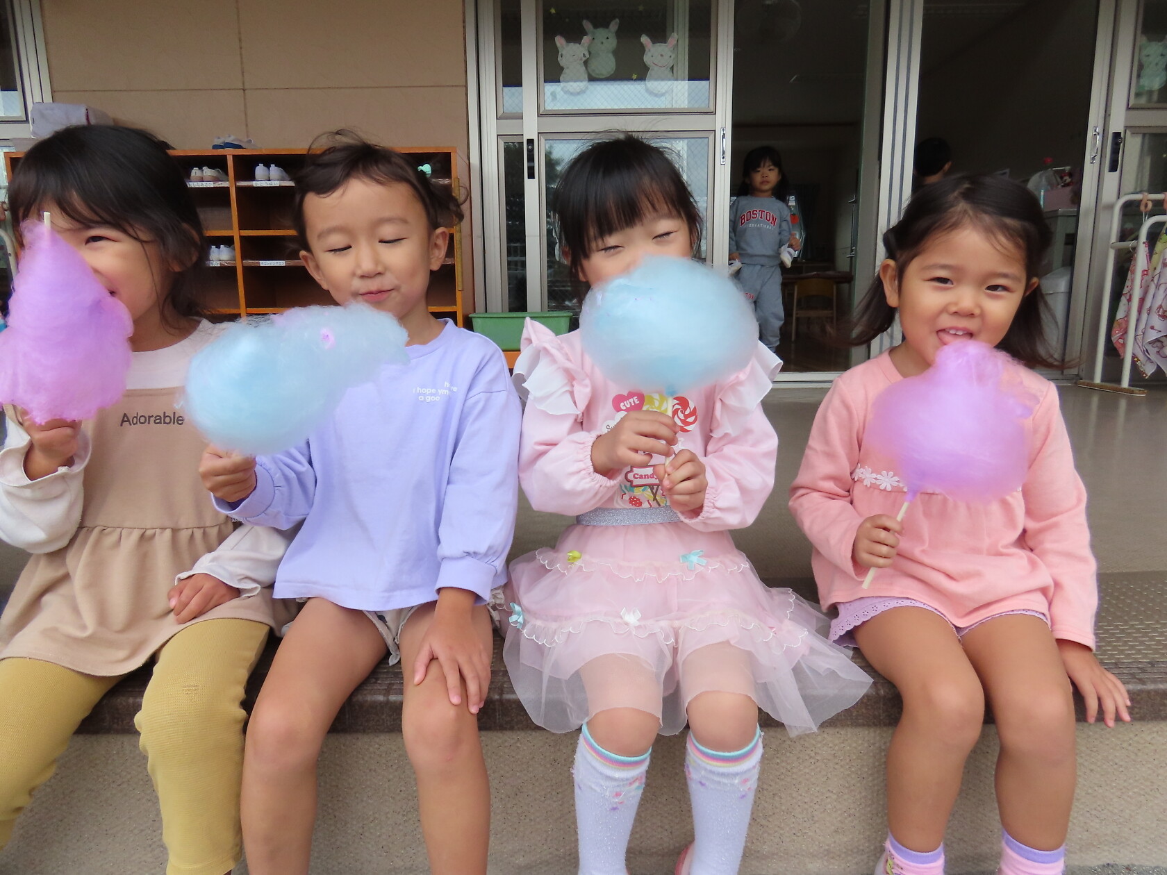 運動会頑張りました!! 公開済み: 2024年10月21日更新: 2024年10月21日 今日は運動会お疲れ様ということでわたあめ大会をやりました!! 自分の好きな色を選んでわたあめを楽しんでいました😁 保育園にはプロがいるので写真のようにとてもおおきなわたあめがつくれます!!
