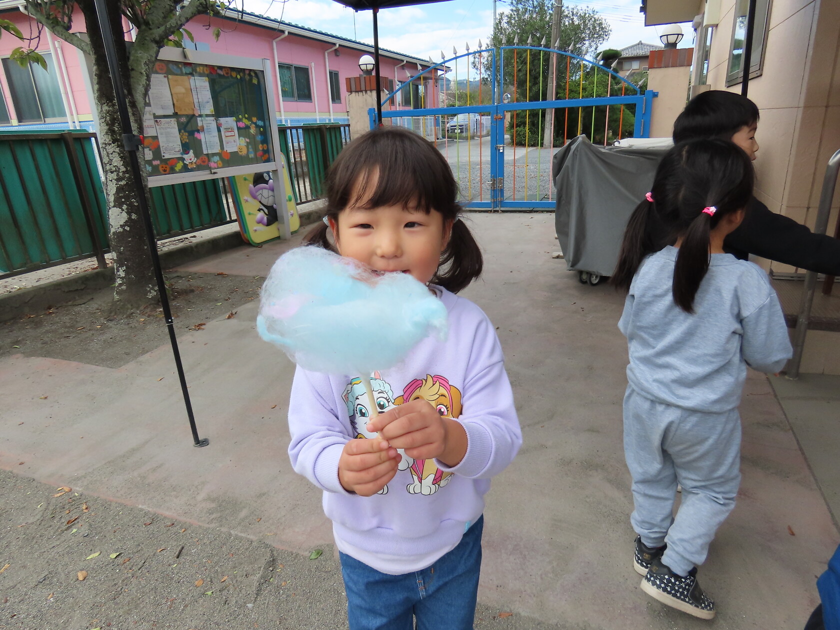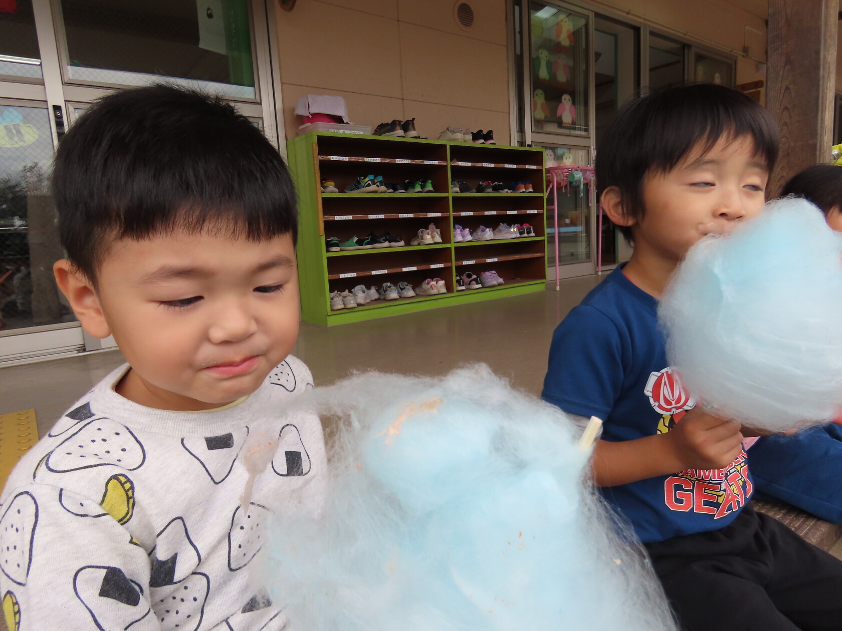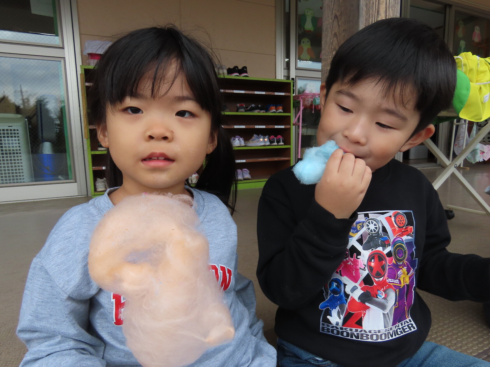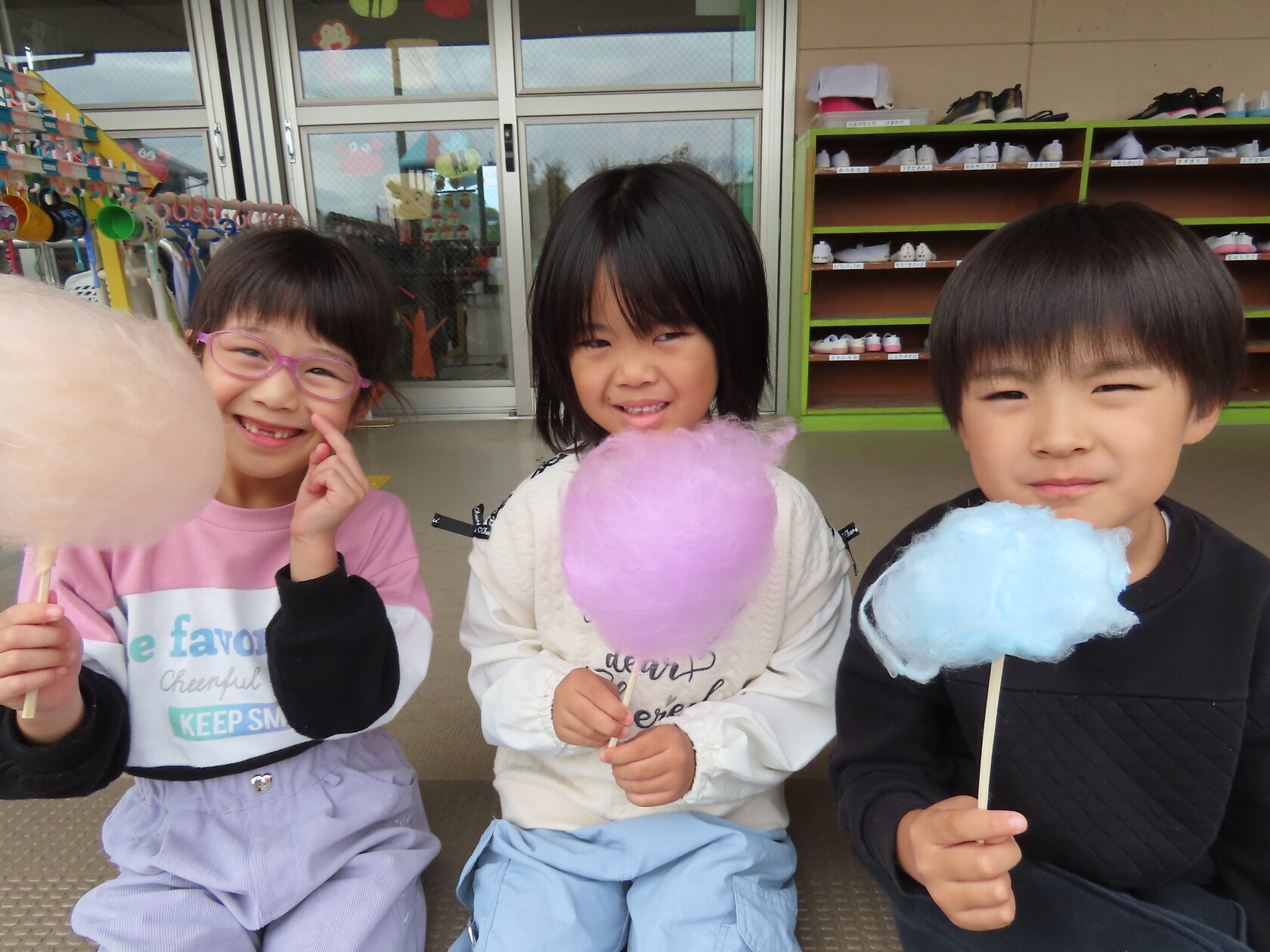 運動会頑張りました!! 公開済み: 2024年10月21日更新: 2024年10月21日 今日は運動会お疲れ様ということでわたあめ大会をやりました!! 自分の好きな色を選んでわたあめを楽しんでいました😁 保育園にはプロがいるので写真のようにとてもおおきなわたあめがつくれます!!