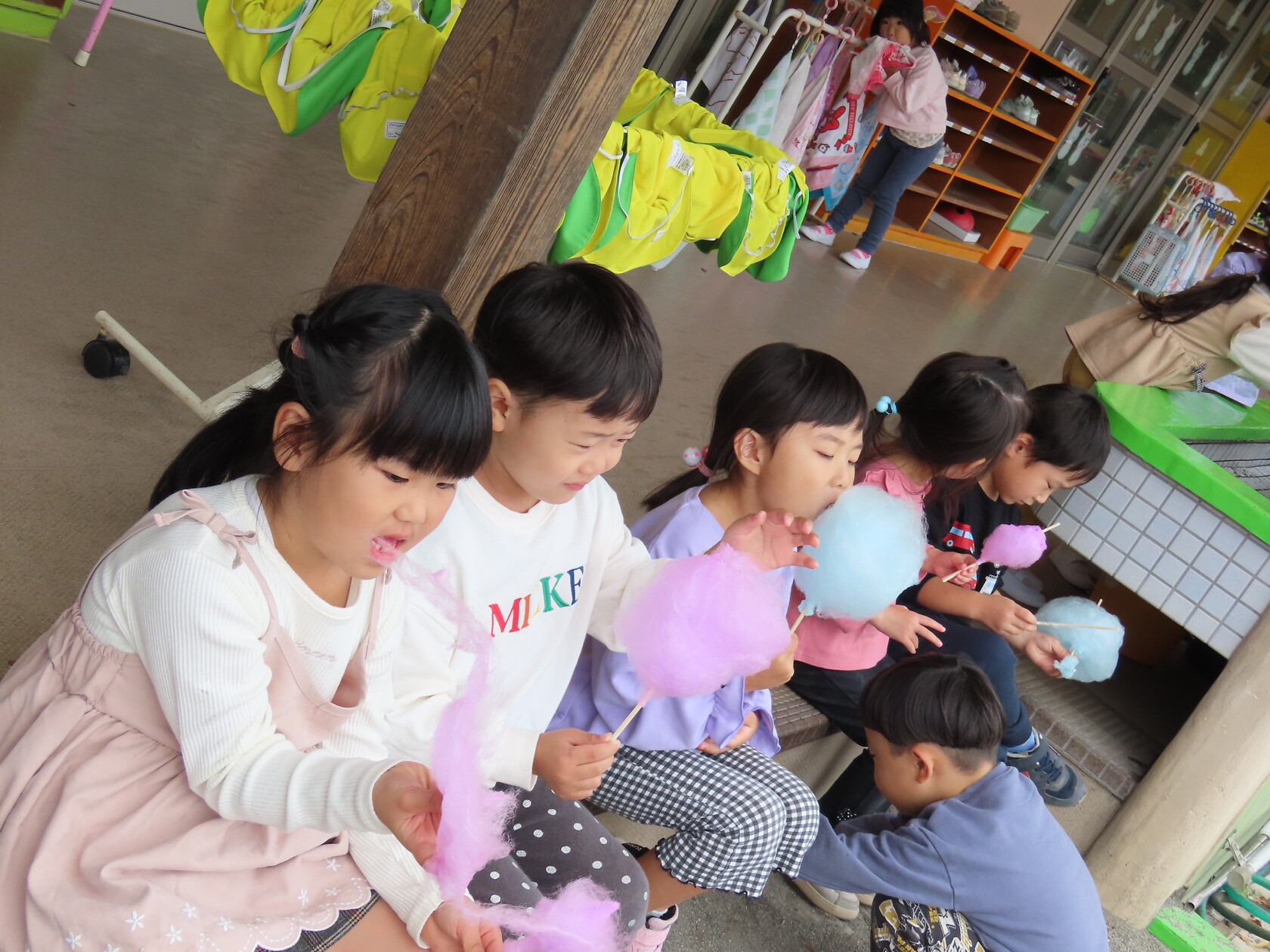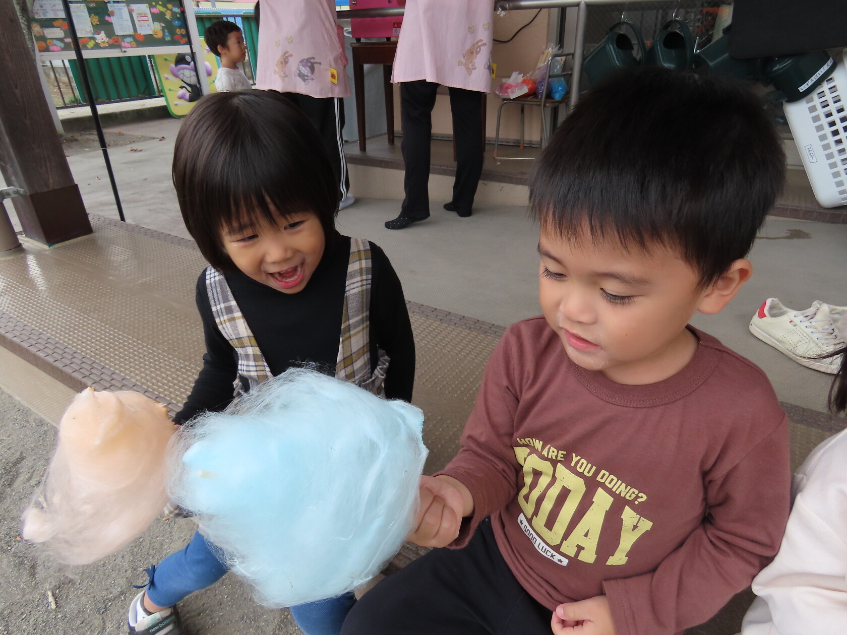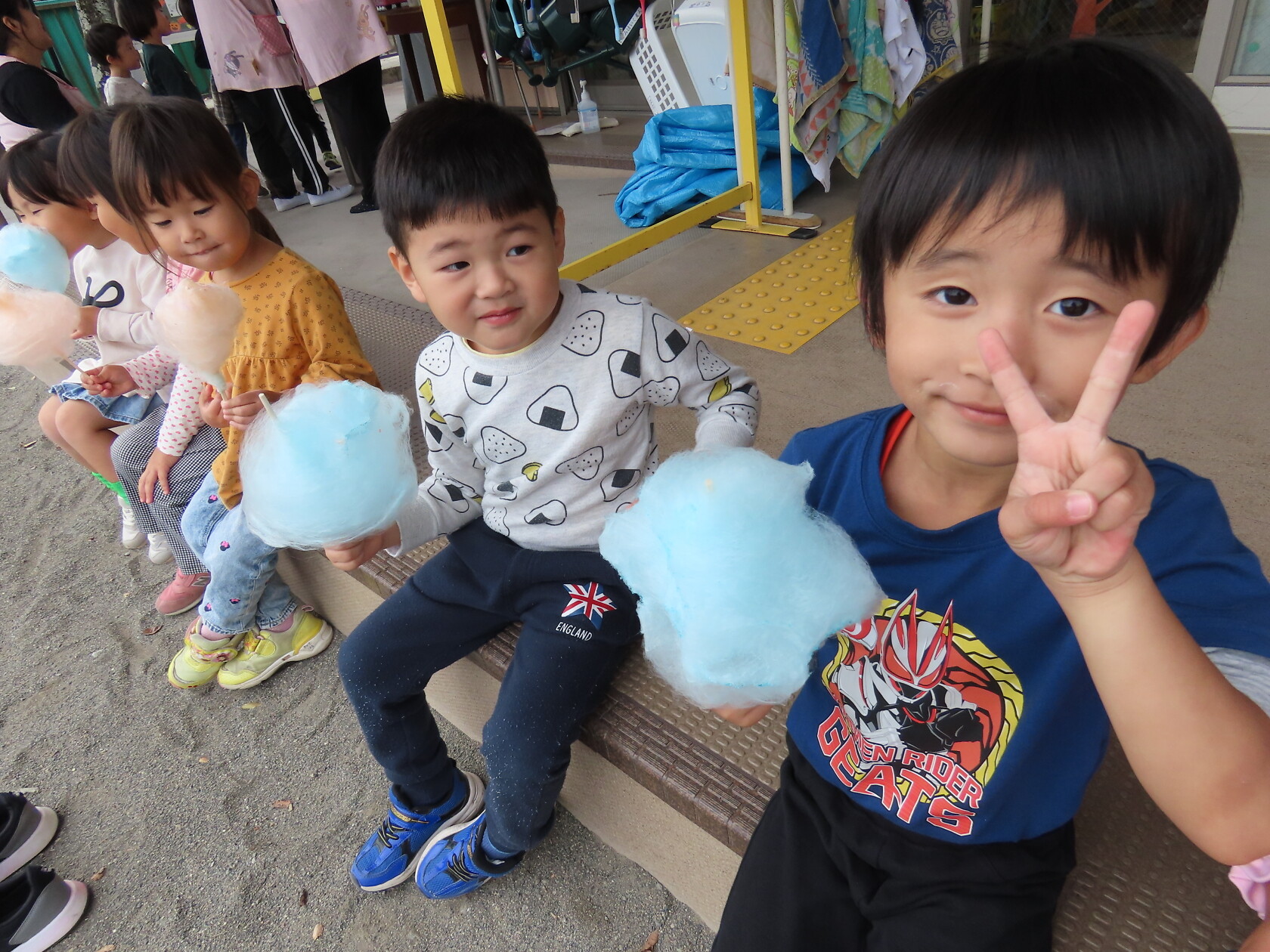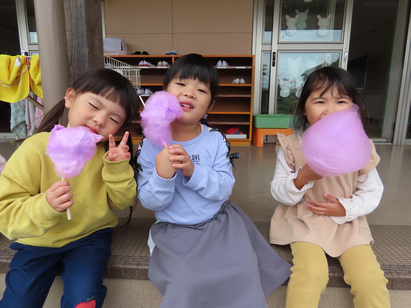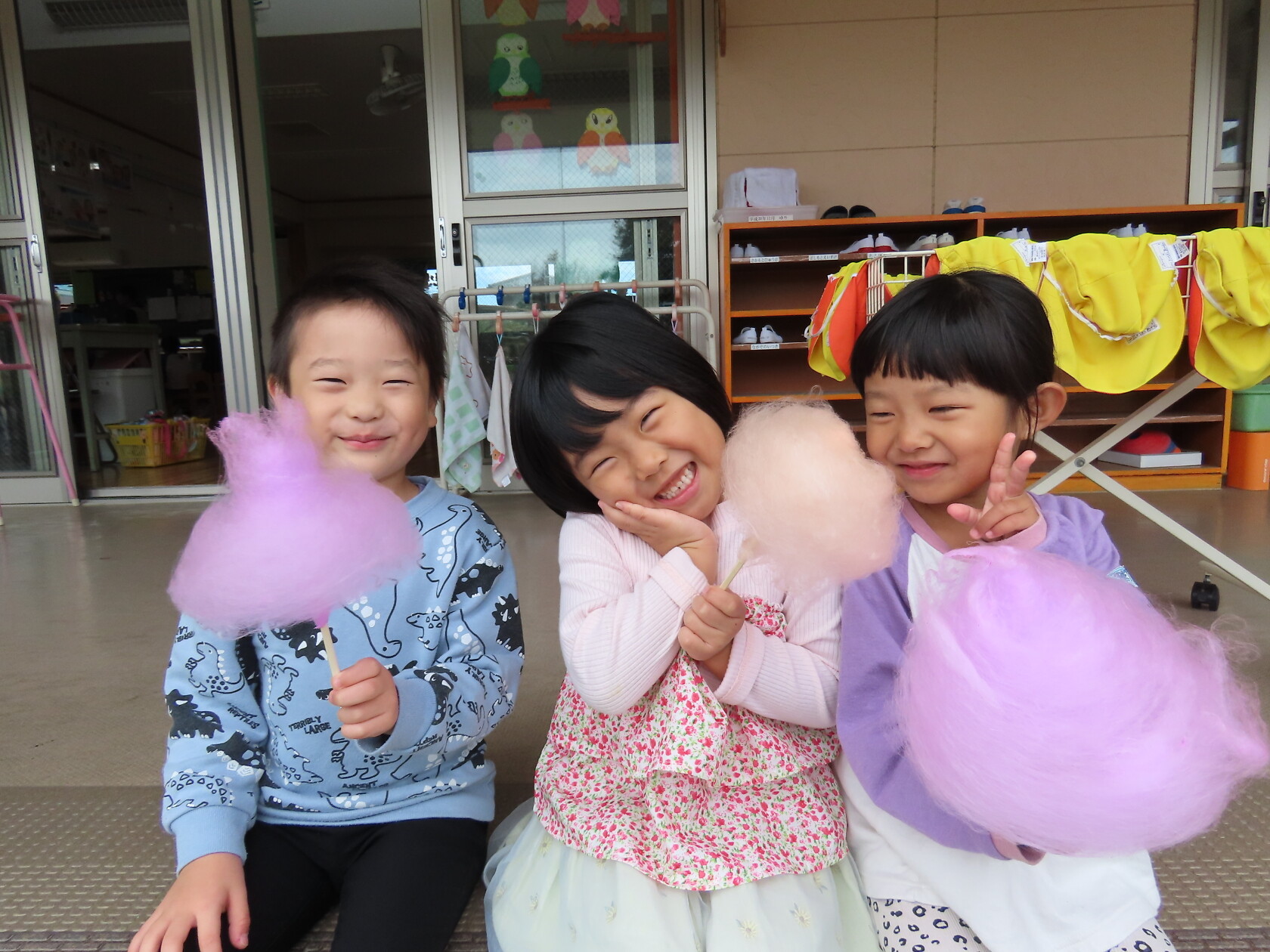 運動会頑張りました!! 公開済み: 2024年10月21日更新: 2024年10月21日 今日は運動会お疲れ様ということでわたあめ大会をやりました!! 自分の好きな色を選んでわたあめを楽しんでいました😁 保育園にはプロがいるので写真のようにとてもおおきなわたあめがつくれます!!