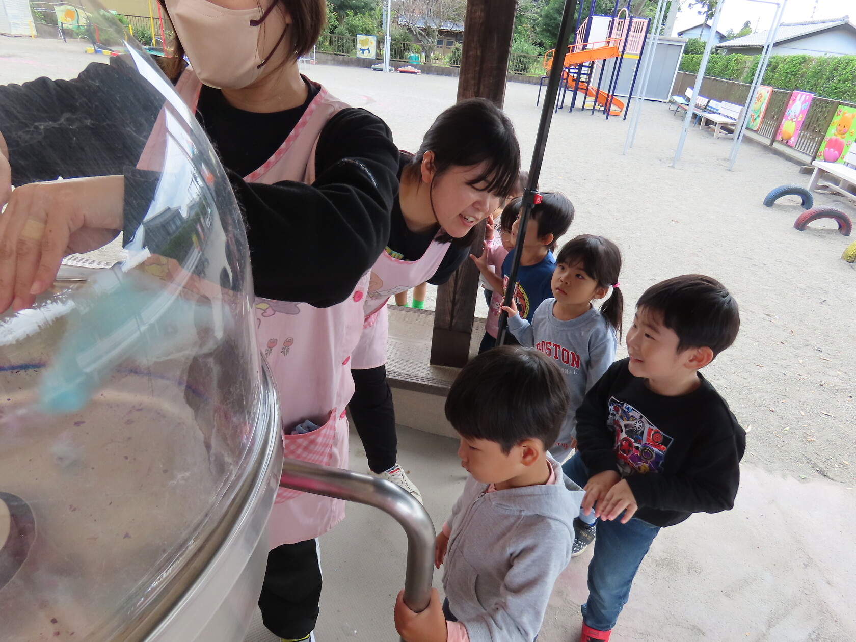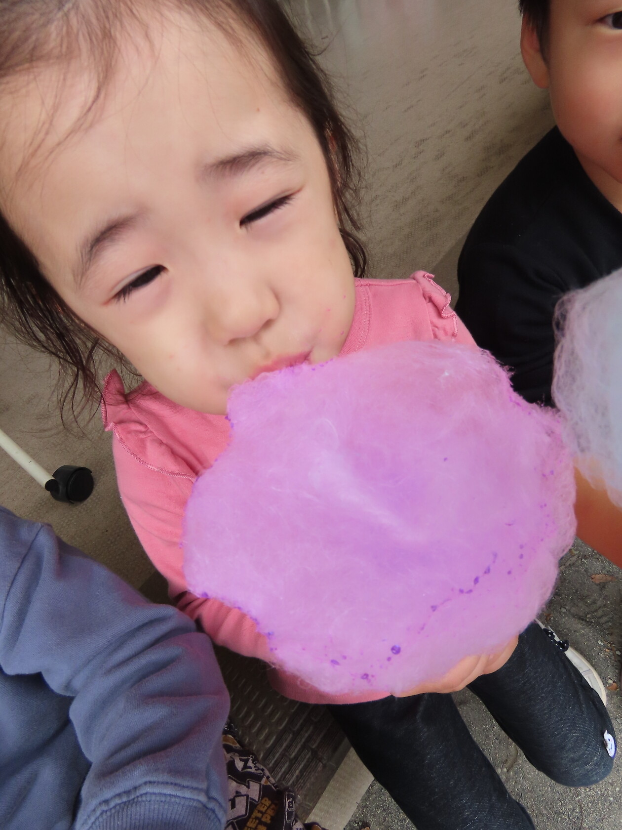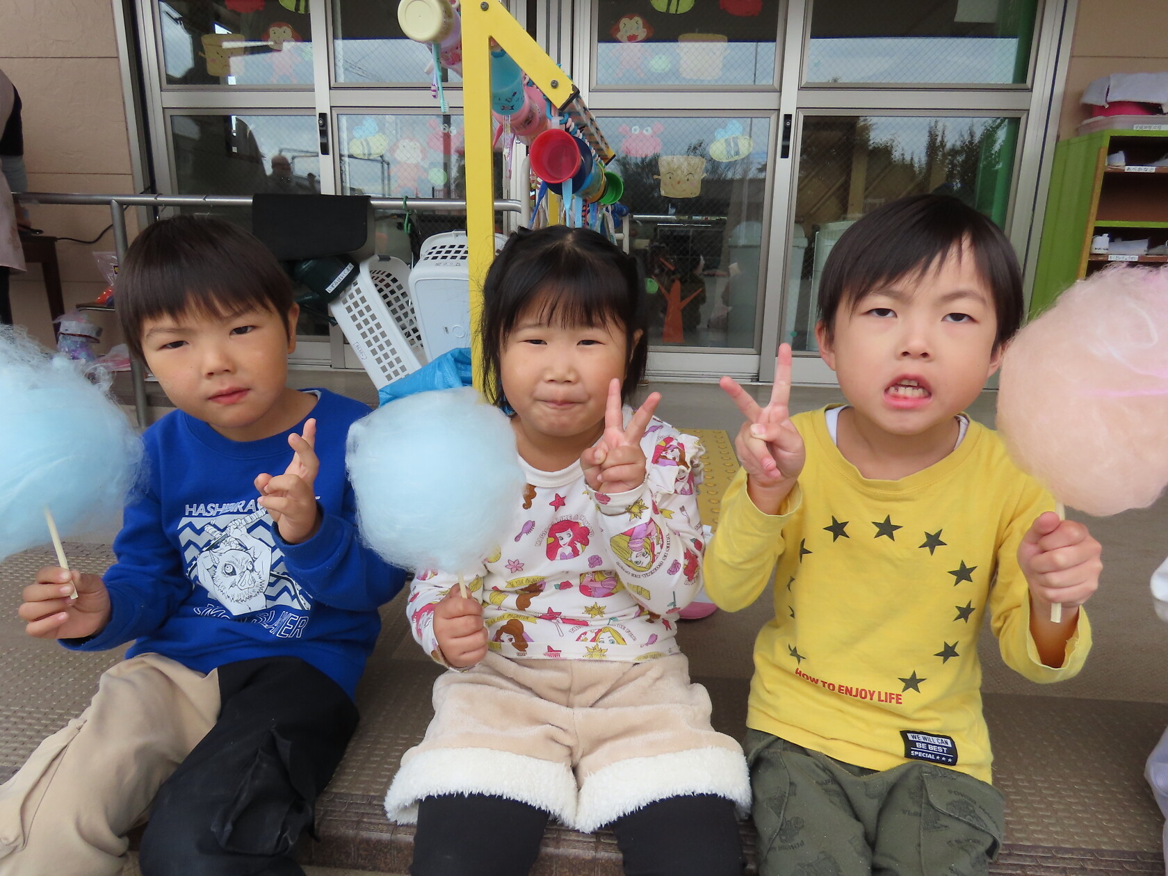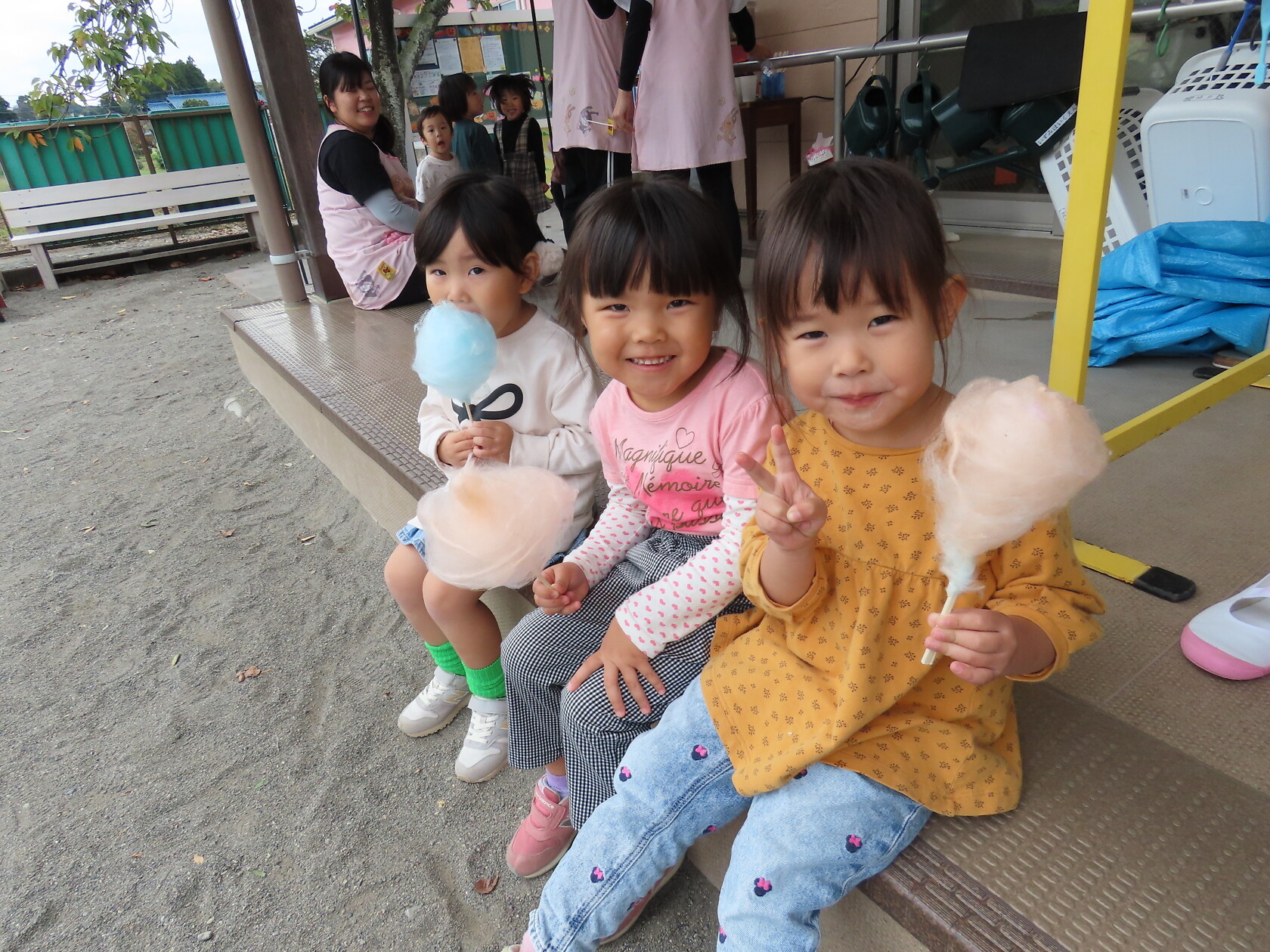 運動会頑張りました!! 公開済み: 2024年10月21日更新: 2024年10月21日 今日は運動会お疲れ様ということでわたあめ大会をやりました!! 自分の好きな色を選んでわたあめを楽しんでいました😁 保育園にはプロがいるので写真のようにとてもおおきなわたあめがつくれます!!