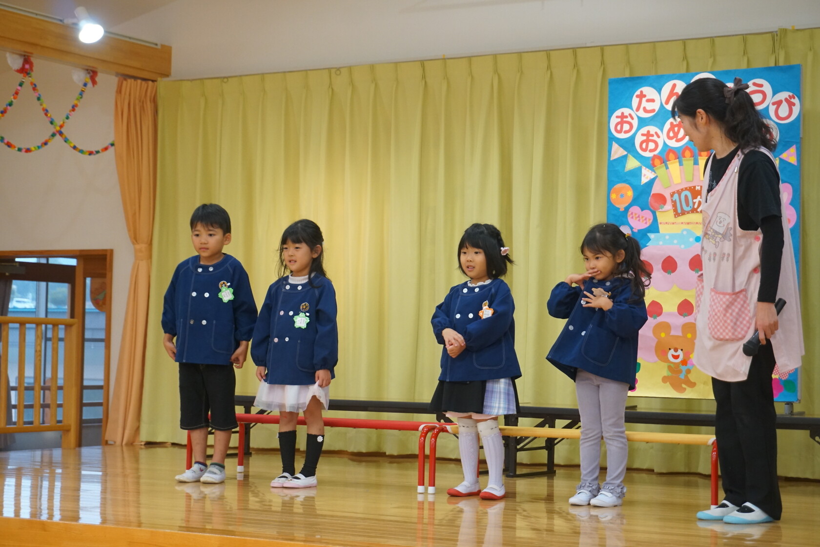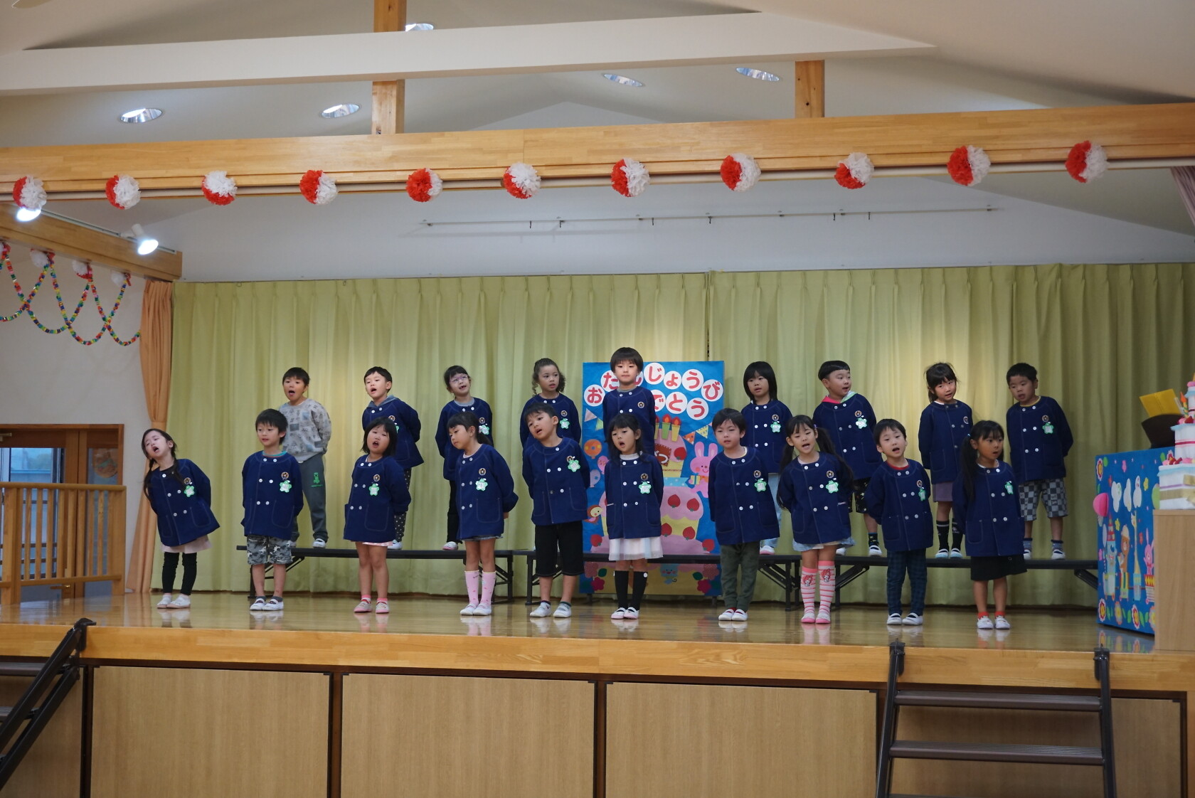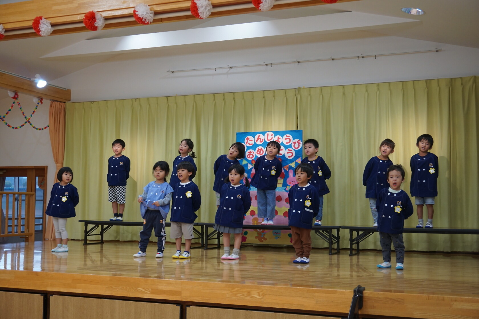お誕生会(以上児) 公開済み: 2024年10月23日更新: 2024年10月23日 今日は10月うまれのお友だちのお誕生会でした✨ 今月は4名のお友達をお祝いしました😊 お歌🎵のプレゼントは すみれ組 「シンデレラのスープ」「しょじょう寺のたぬきばやし」 ゆり組 「山のワルツ」「森のファミリーレストラン」 ひまわり組「ドラキュラの歌」「ありがとうの花」 でした 10月うまれのお友だちお誕生日おめでとうございます🎉👏