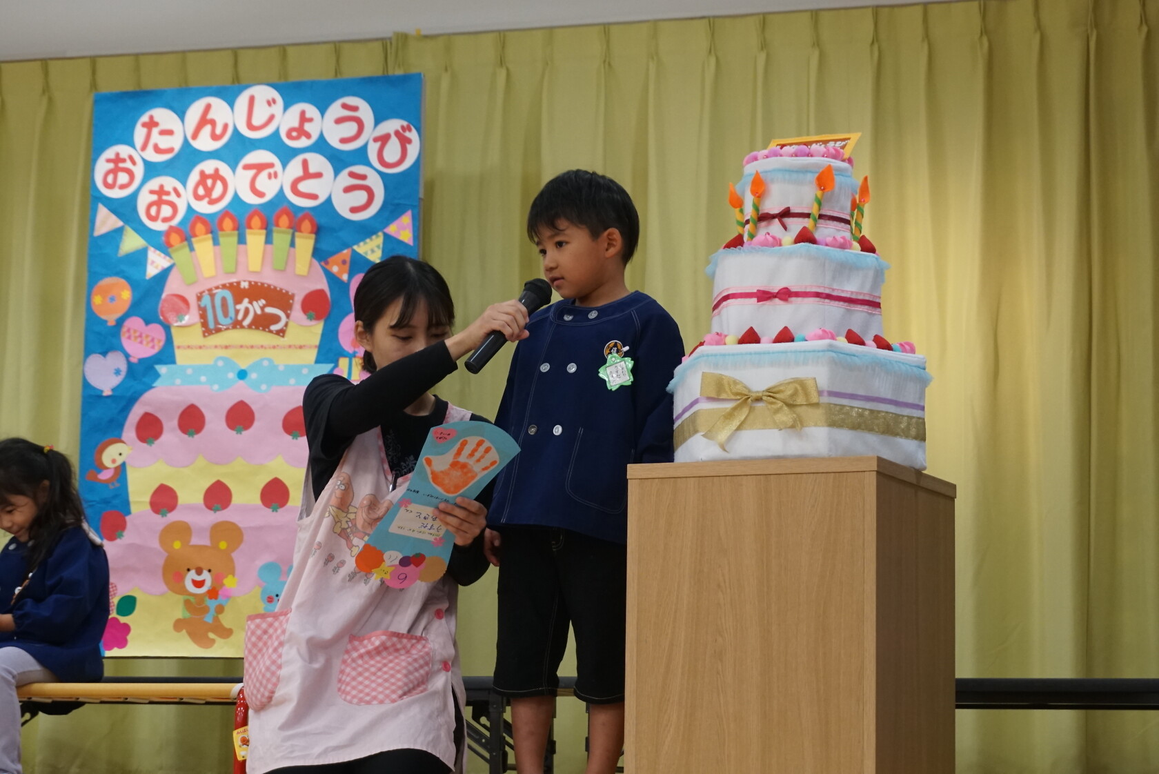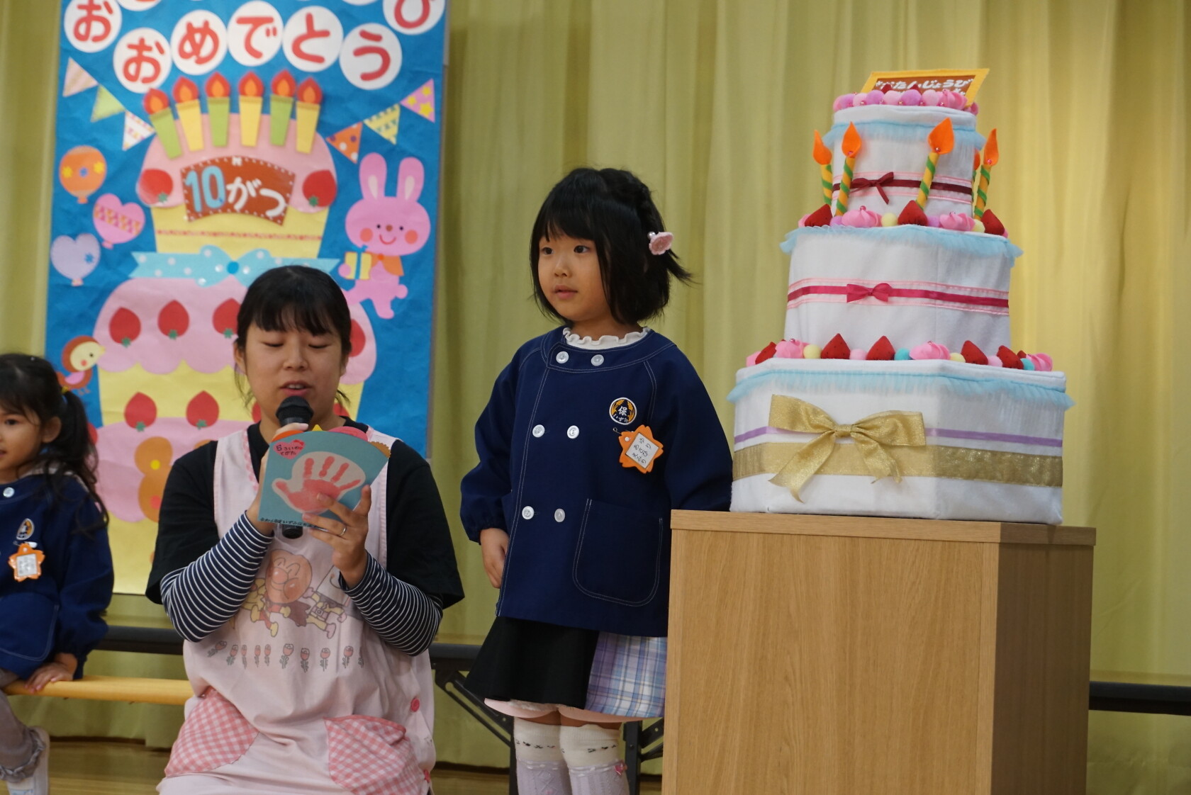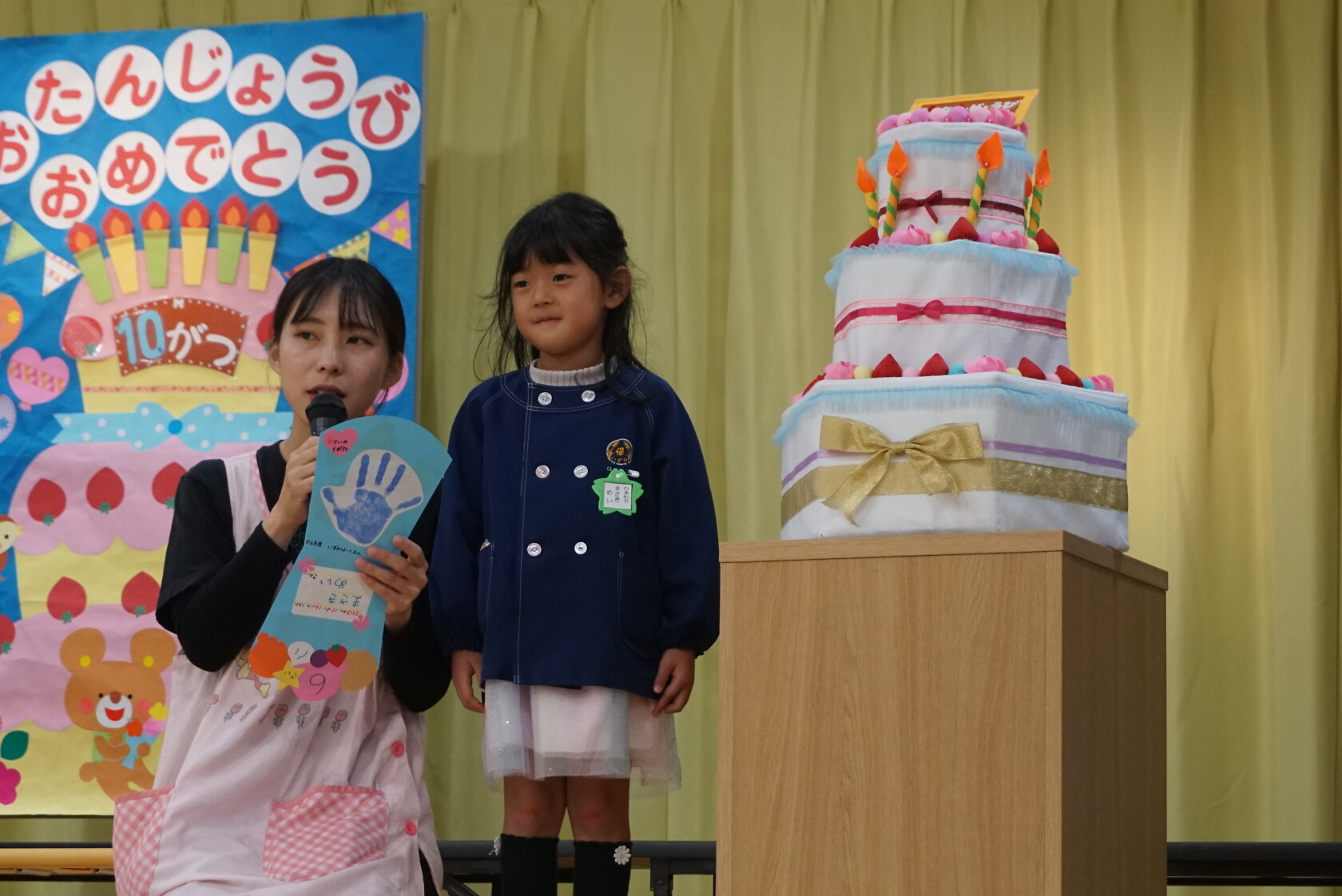 お誕生会(以上児) 公開済み: 2024年10月23日更新: 2024年10月23日 今日は10月うまれのお友だちのお誕生会でした✨ 今月は4名のお友達をお祝いしました😊 お歌🎵のプレゼントは すみれ組 「シンデレラのスープ」「しょじょう寺のたぬきばやし」 ゆり組 「山のワルツ」「森のファミリーレストラン」 ひまわり組「ドラキュラの歌」「ありがとうの花」 でした 10月うまれのお友だちお誕生日おめでとうございます🎉👏