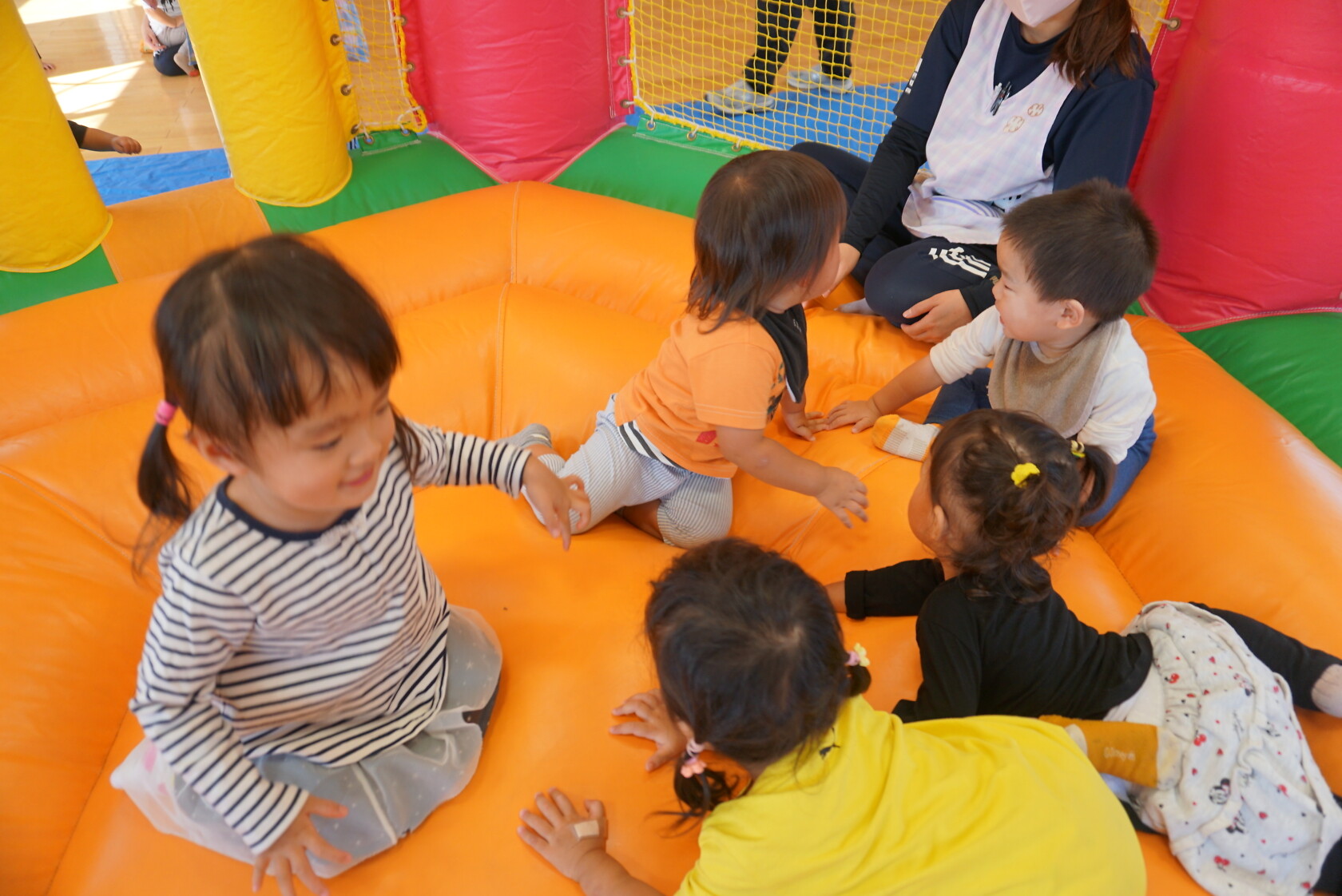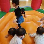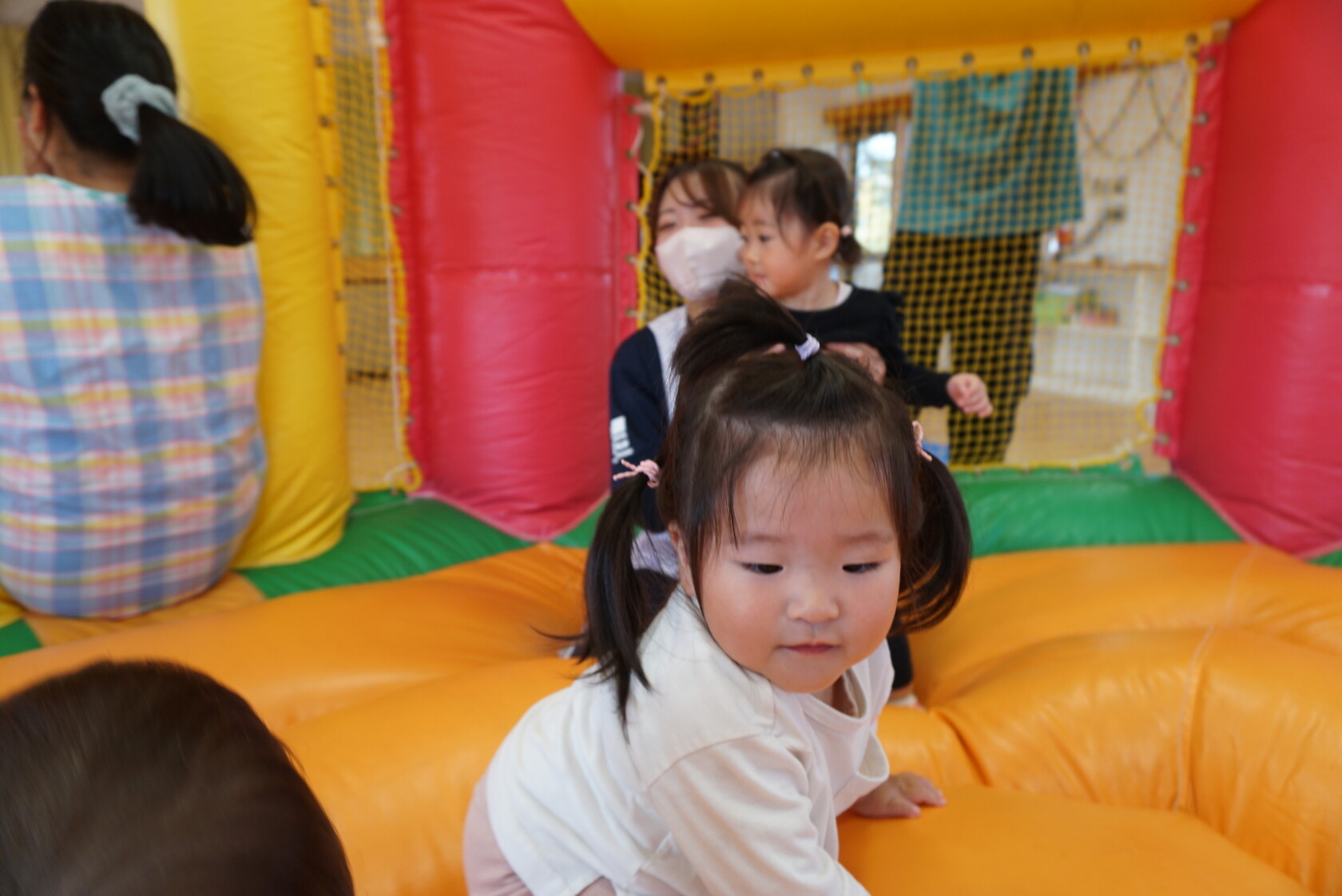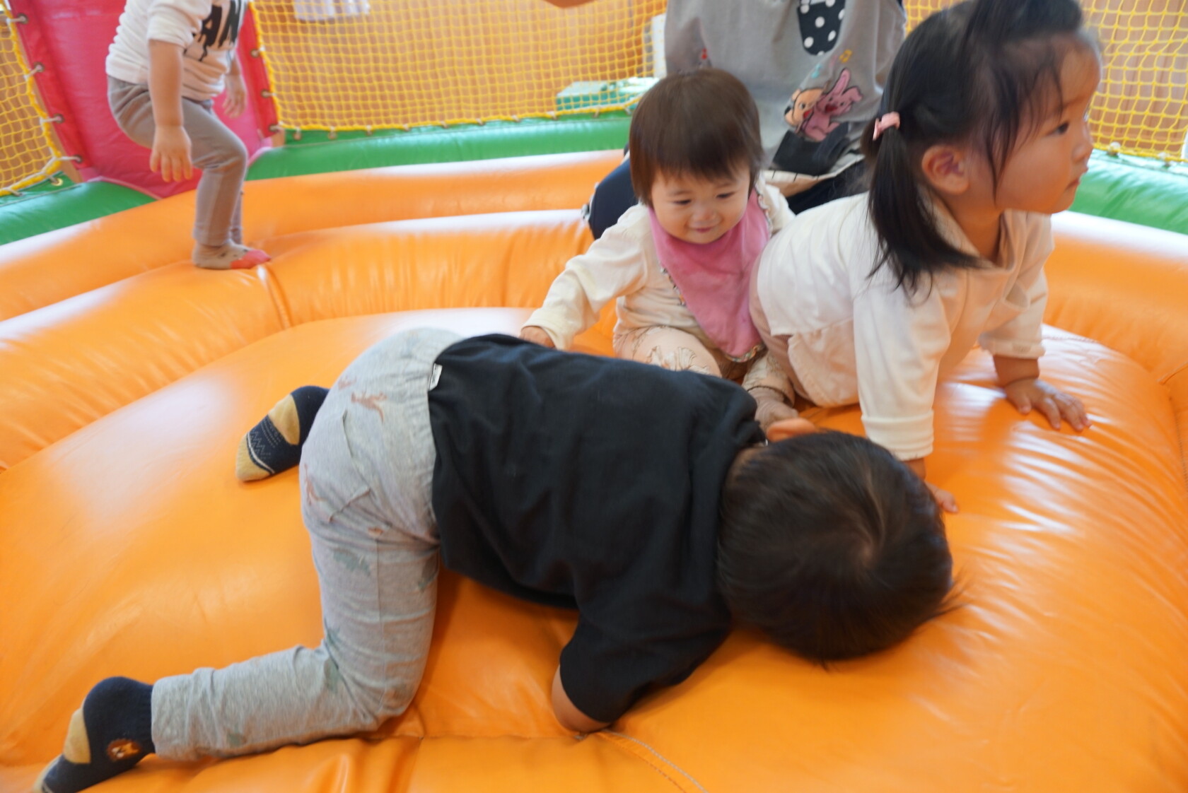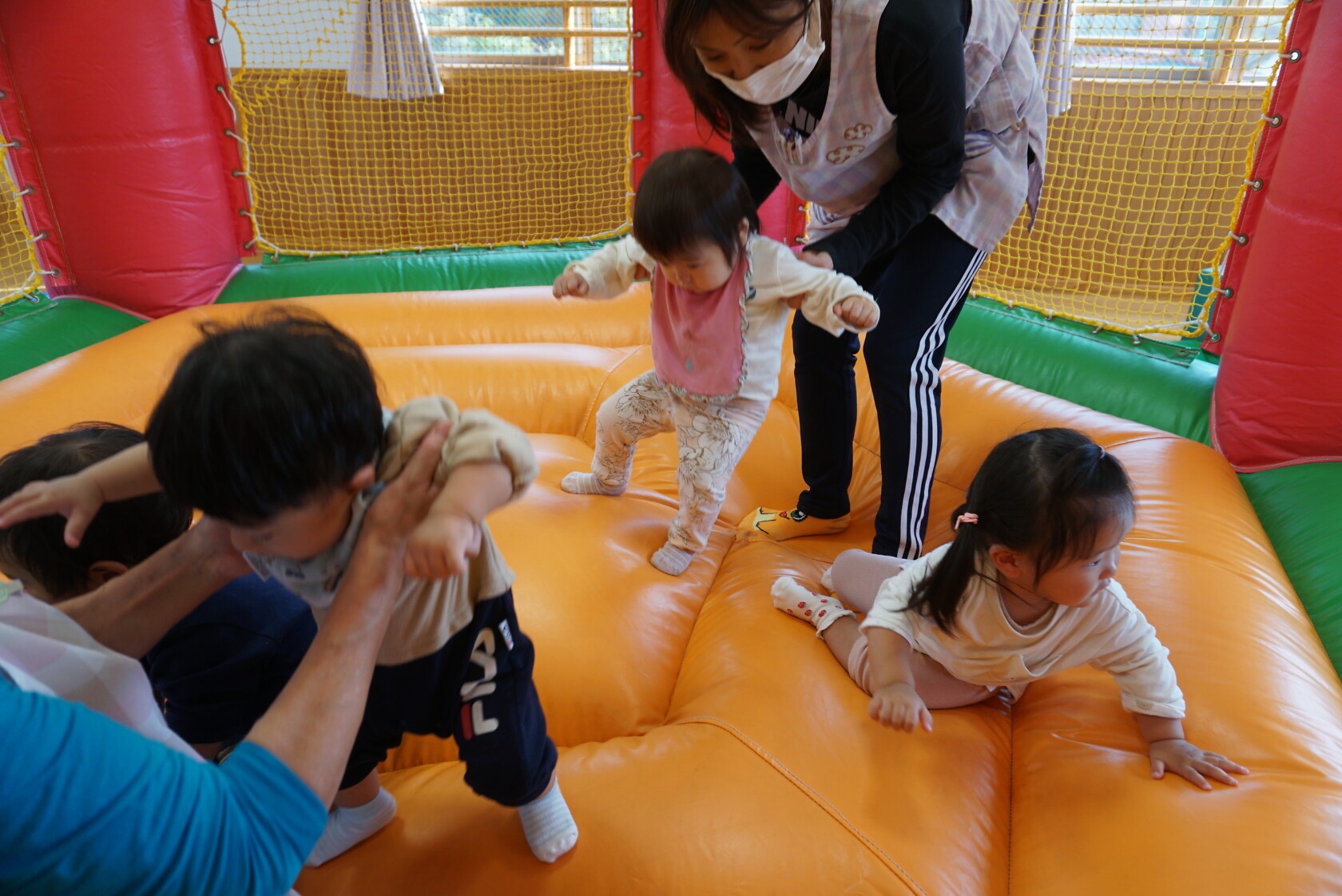 今日のできごと(さくら・小規模さくら) 公開済み: 2024年10月24日更新: 2024年10月24日 今日は、お外で遊んだ後、2階のホールに行き、エアーランドで遊びました😊 エアーランドの中に入るとぴょんぴょんと跳びはねて楽しむ子や初めてのことにびっくりして泣いてしまう子もいました🌟 沢山動いたら疲れたようでみんな、寝付きが早かったです💤また、エアーランドで遊びましょうね😊
