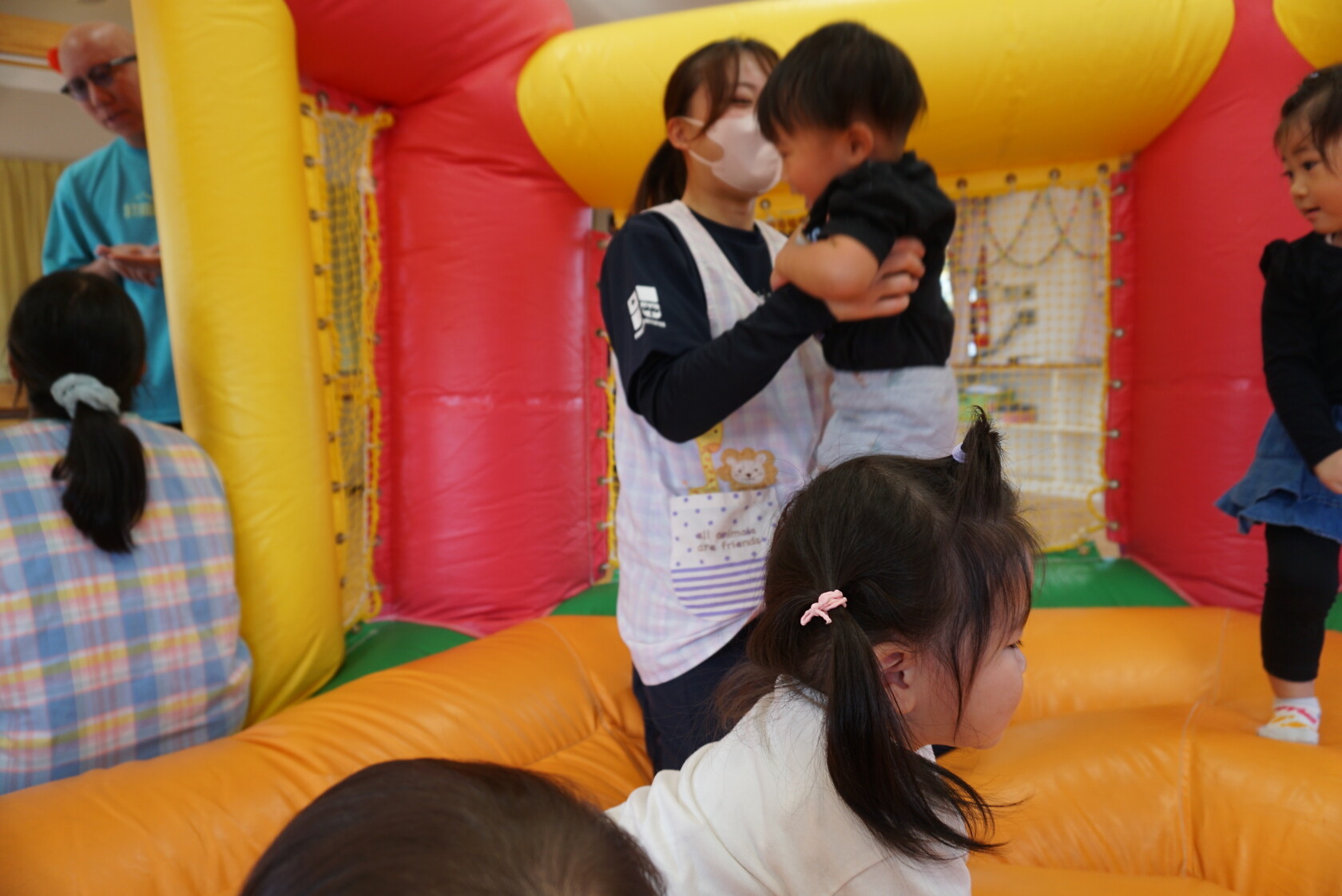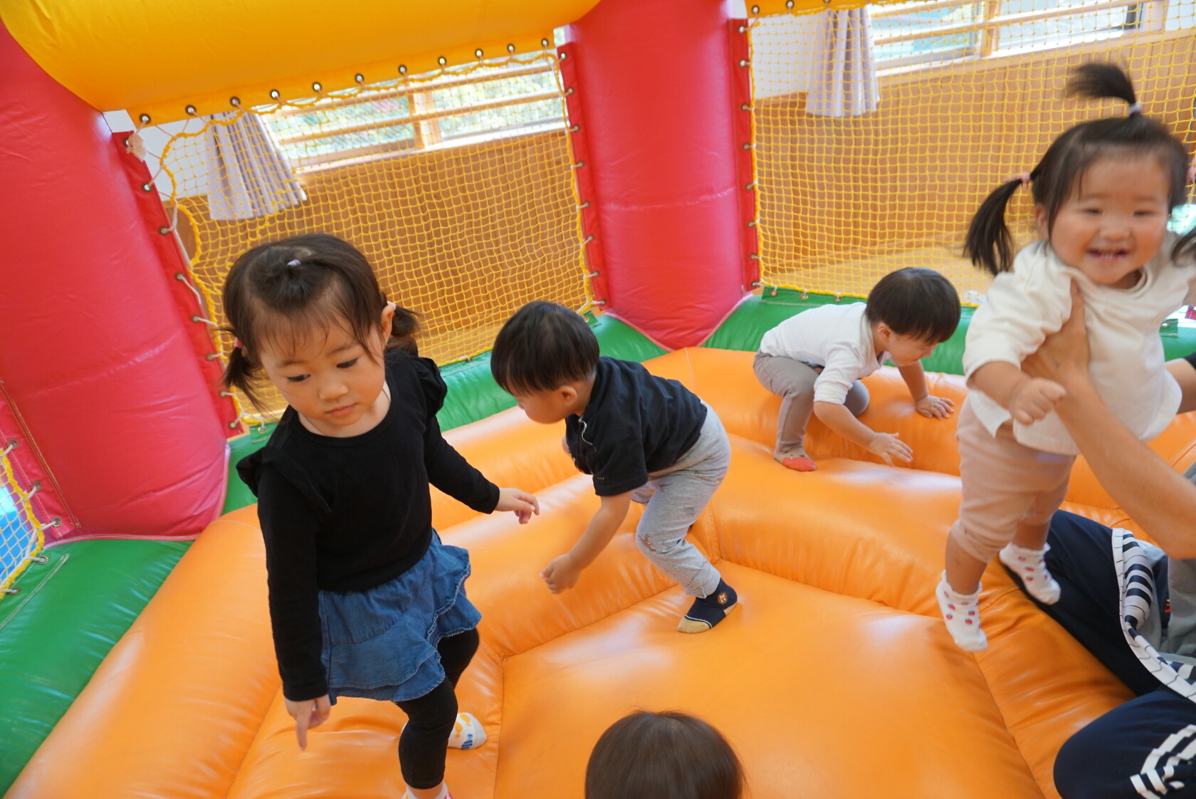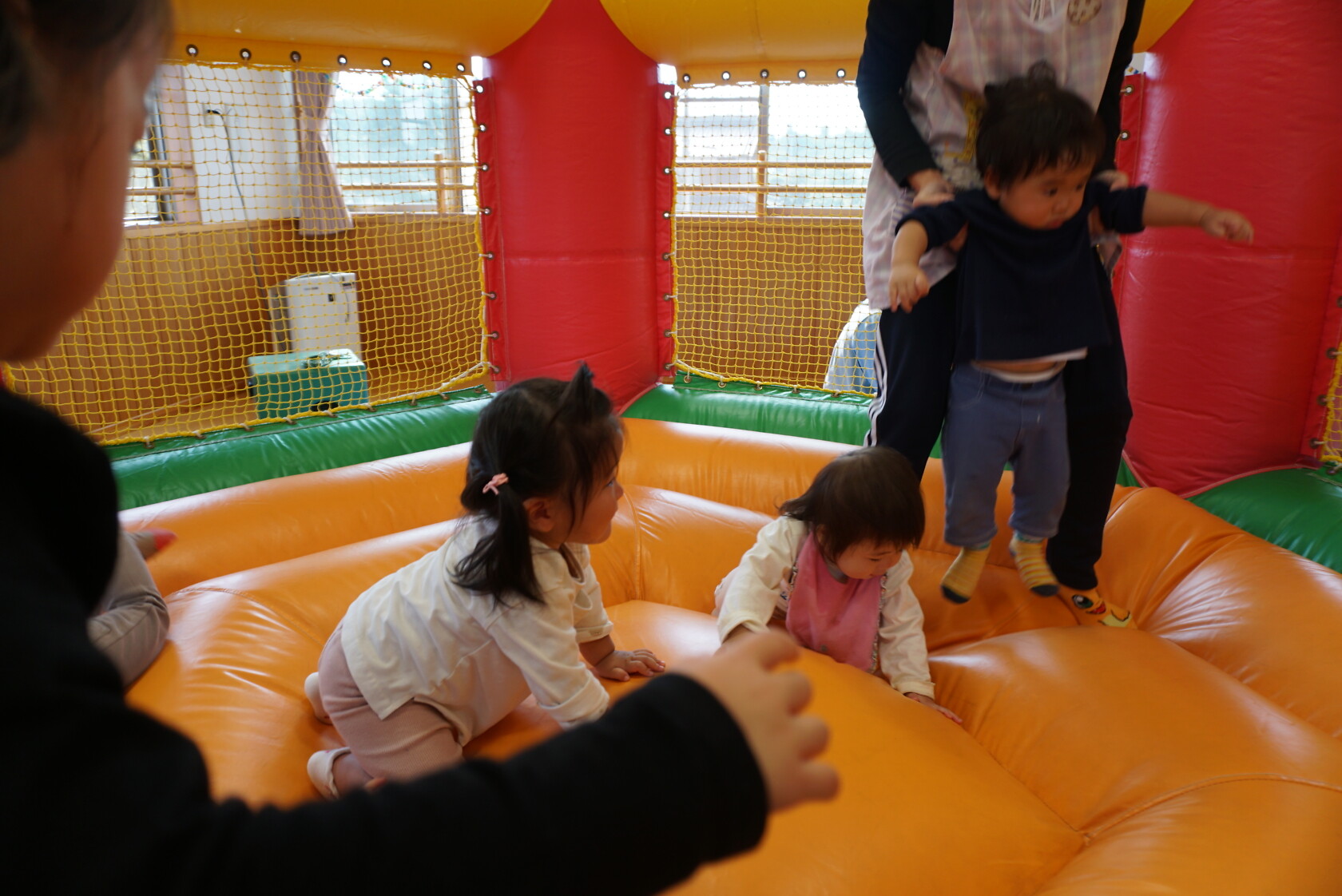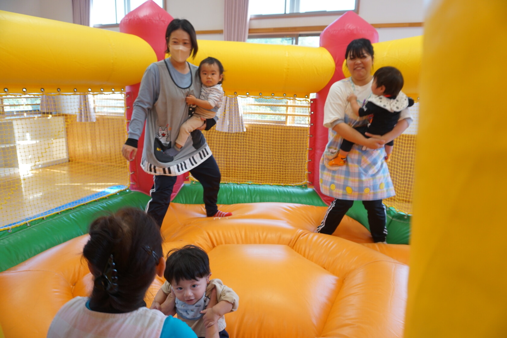 今日のできごと(さくら・小規模さくら) 公開済み: 2024年10月24日更新: 2024年10月24日 今日は、お外で遊んだ後、2階のホールに行き、エアーランドで遊びました😊 エアーランドの中に入るとぴょんぴょんと跳びはねて楽しむ子や初めてのことにびっくりして泣いてしまう子もいました🌟 沢山動いたら疲れたようでみんな、寝付きが早かったです💤また、エアーランドで遊びましょうね😊