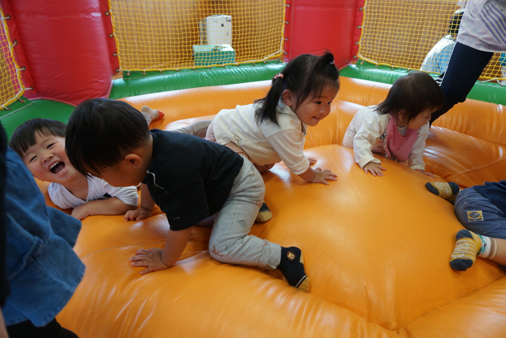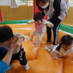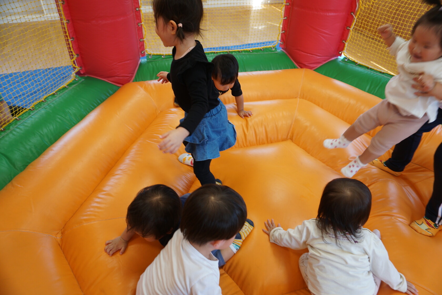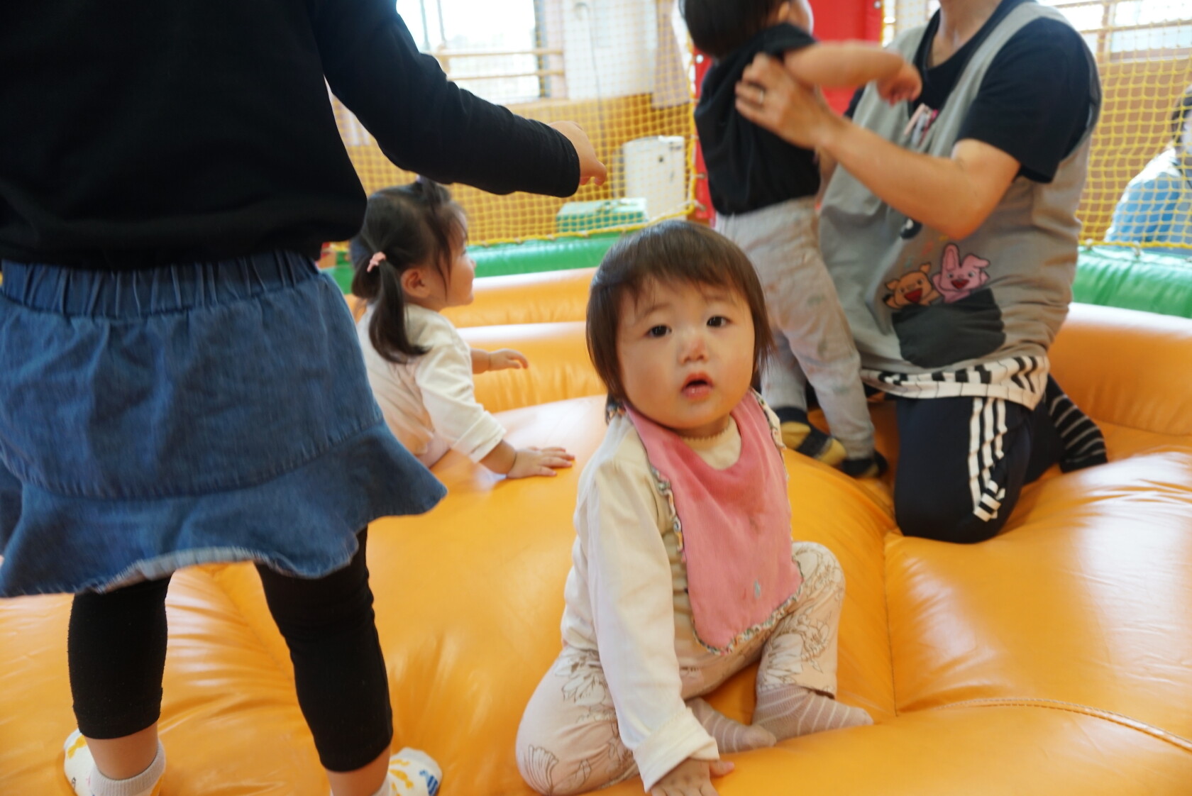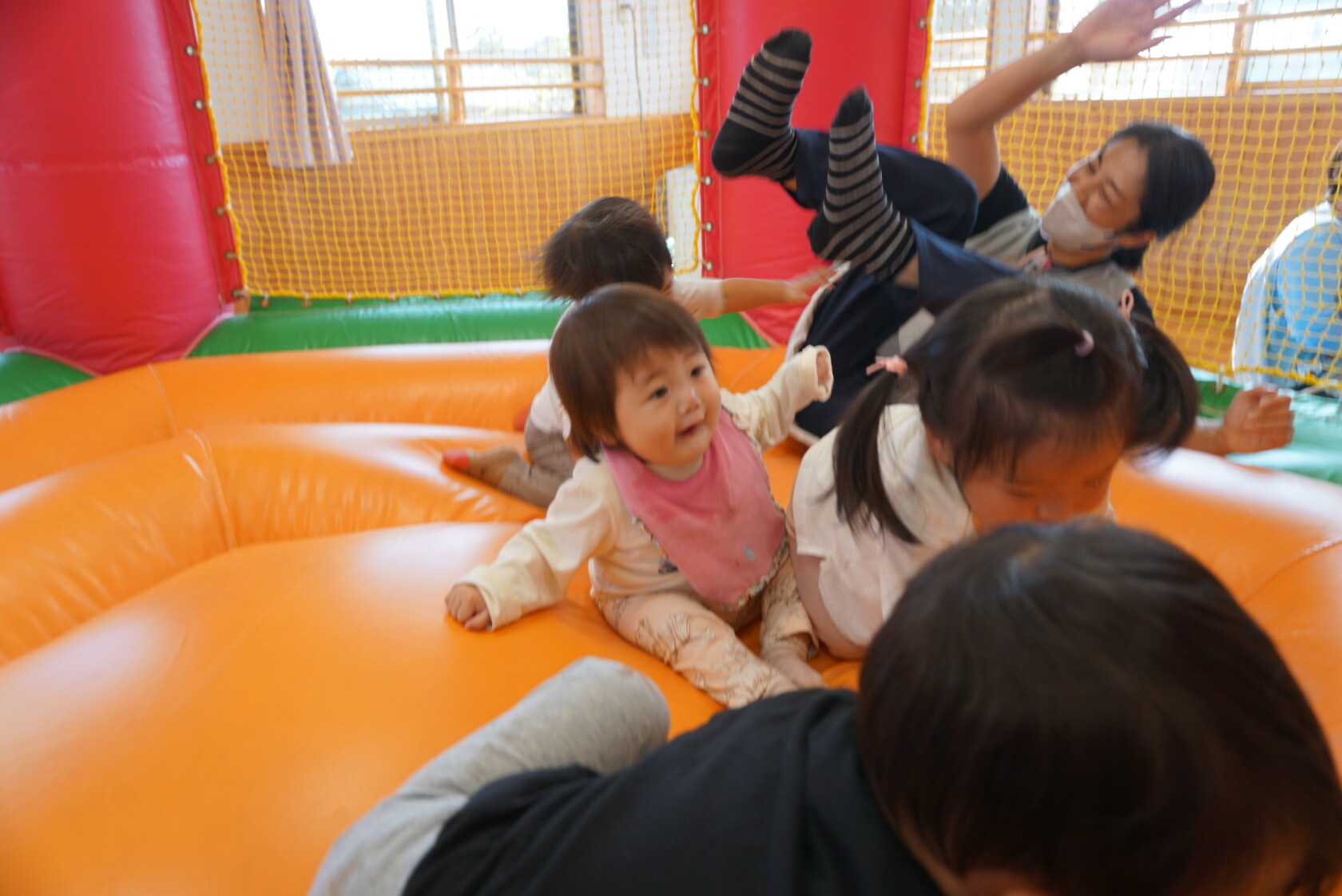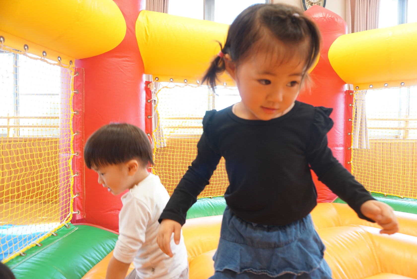 今日のできごと(さくら・小規模さくら) 公開済み: 2024年10月24日更新: 2024年10月24日 今日は、お外で遊んだ後、2階のホールに行き、エアーランドで遊びました😊 エアーランドの中に入るとぴょんぴょんと跳びはねて楽しむ子や初めてのことにびっくりして泣いてしまう子もいました🌟 沢山動いたら疲れたようでみんな、寝付きが早かったです💤また、エアーランドで遊びましょうね😊