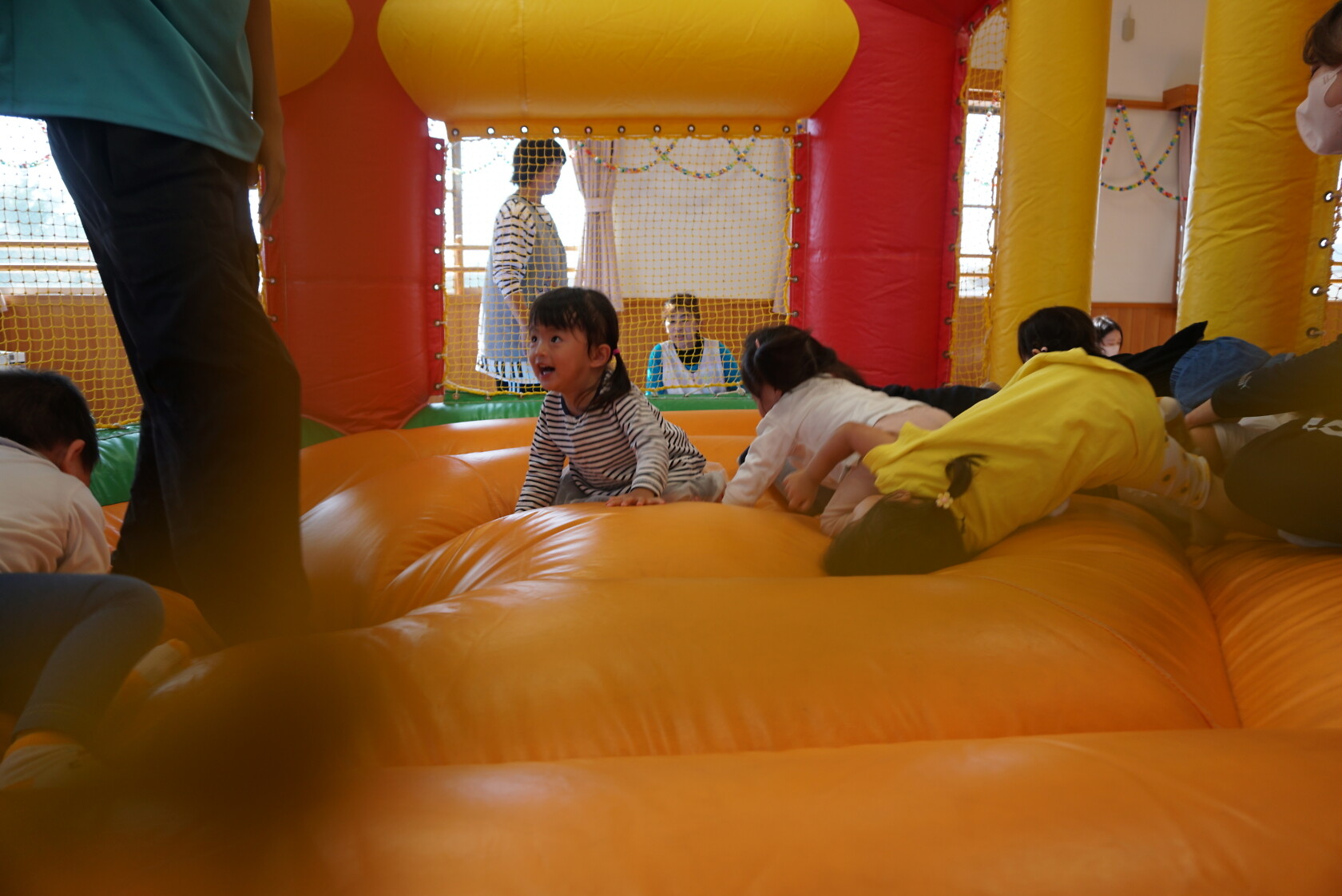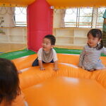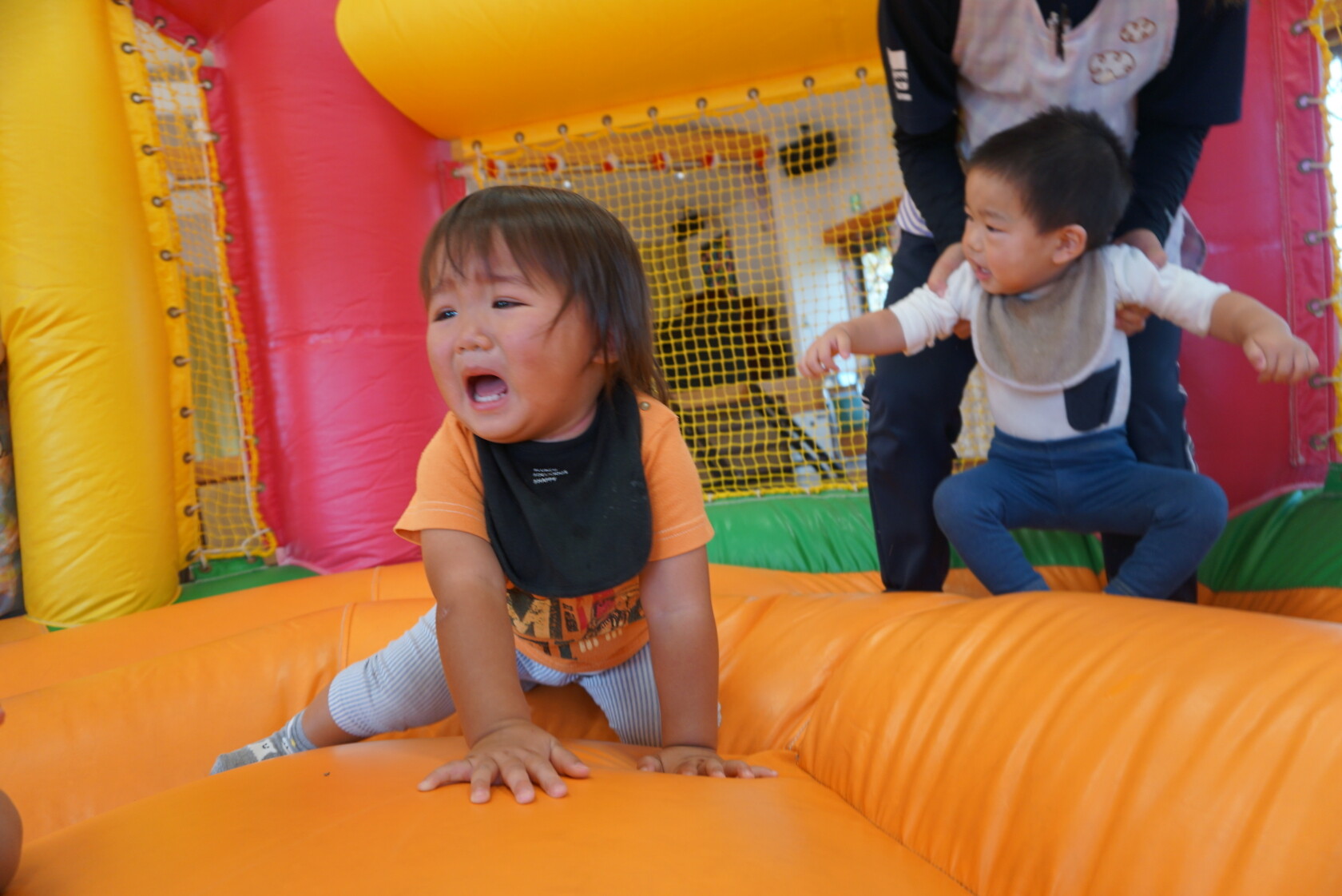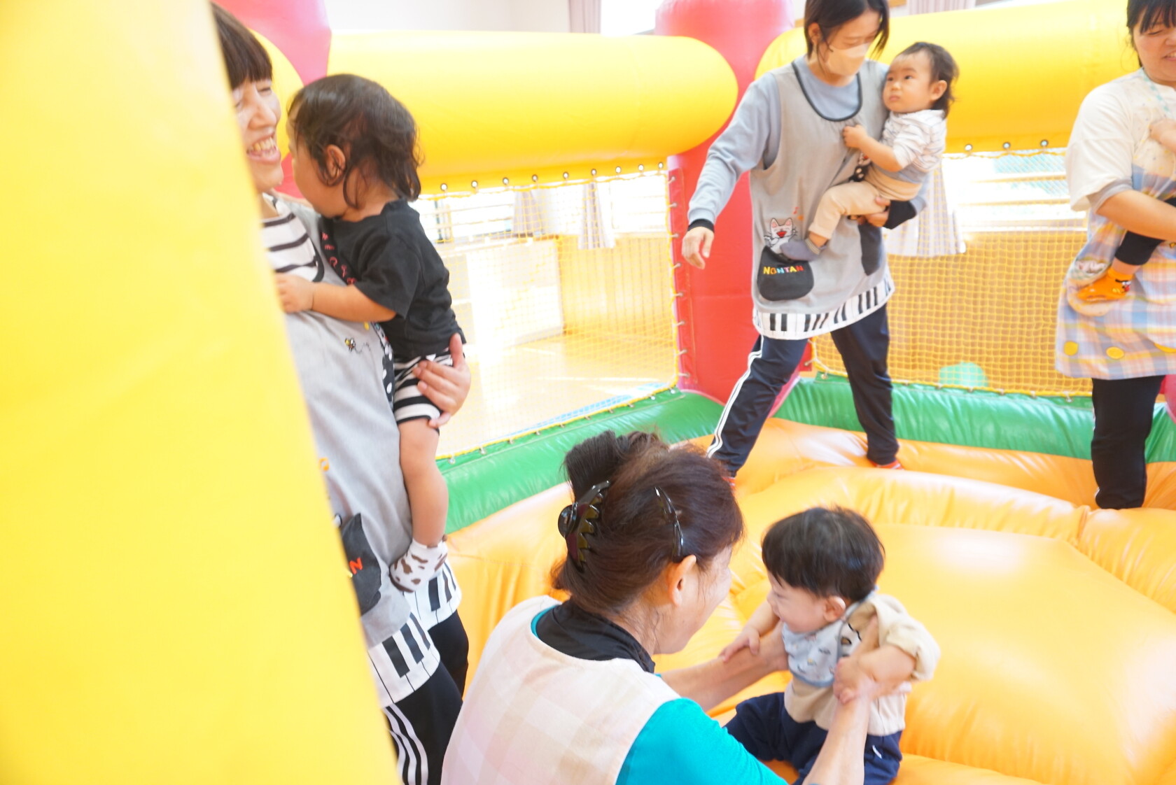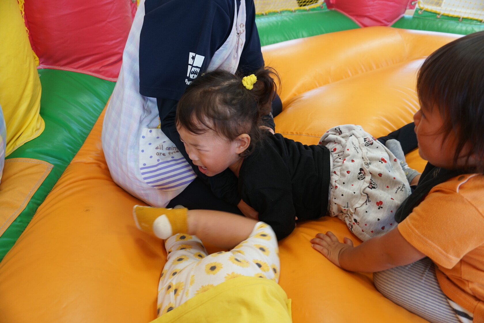 今日のできごと(さくら・小規模さくら) 公開済み: 2024年10月24日更新: 2024年10月24日 今日は、お外で遊んだ後、2階のホールに行き、エアーランドで遊びました😊 エアーランドの中に入るとぴょんぴょんと跳びはねて楽しむ子や初めてのことにびっくりして泣いてしまう子もいました🌟 沢山動いたら疲れたようでみんな、寝付きが早かったです💤また、エアーランドで遊びましょうね😊