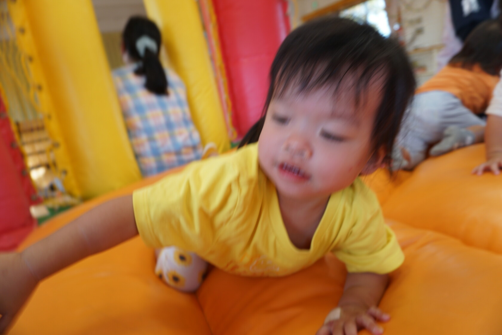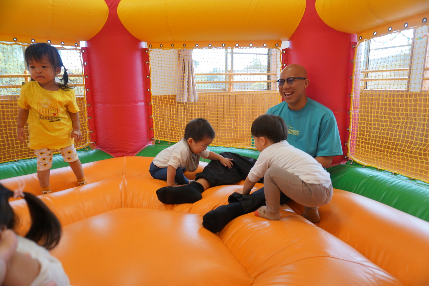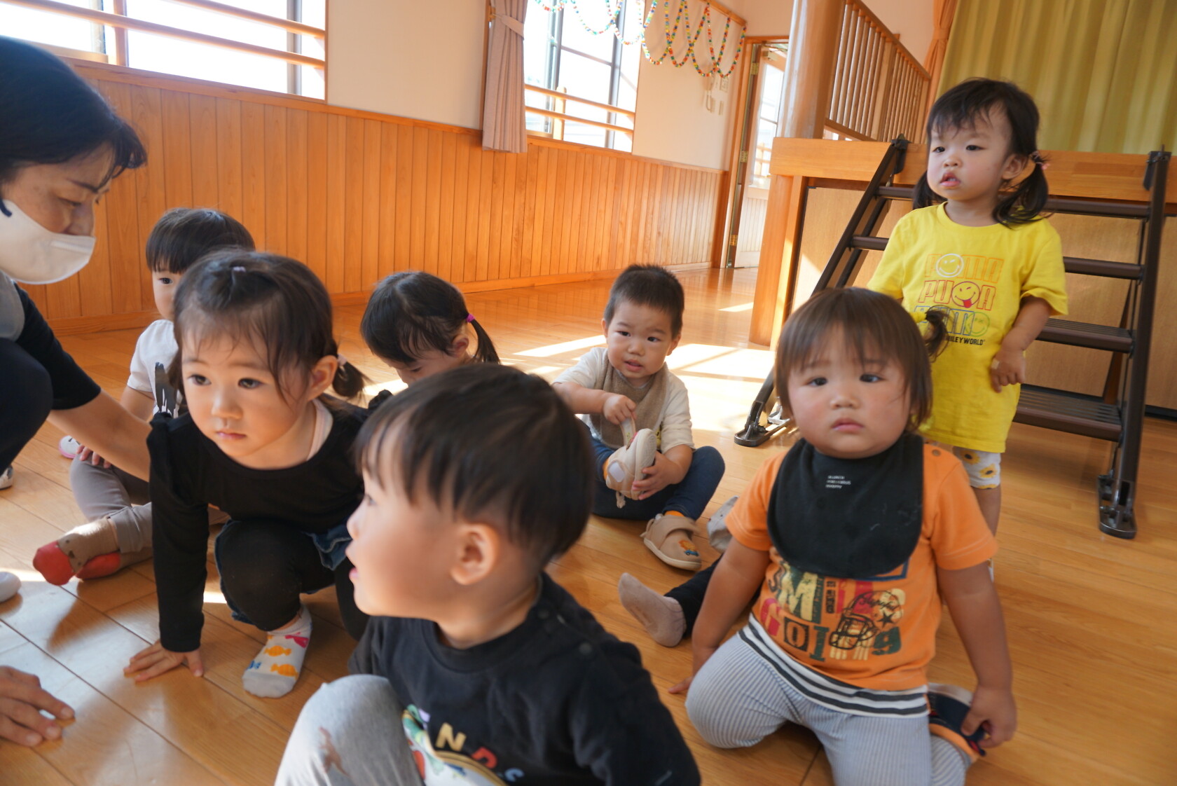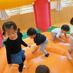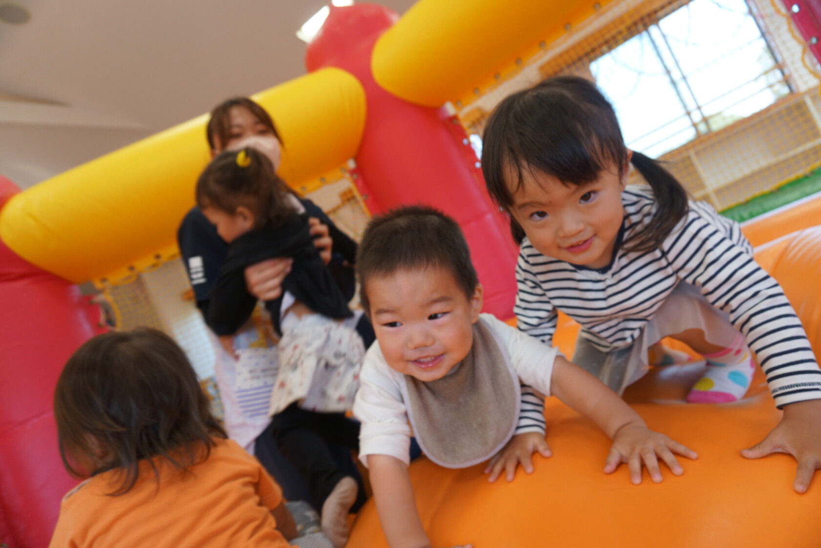 今日のできごと(さくら・小規模さくら) 公開済み: 2024年10月24日更新: 2024年10月24日 今日は、お外で遊んだ後、2階のホールに行き、エアーランドで遊びました😊 エアーランドの中に入るとぴょんぴょんと跳びはねて楽しむ子や初めてのことにびっくりして泣いてしまう子もいました🌟 沢山動いたら疲れたようでみんな、寝付きが早かったです💤また、エアーランドで遊びましょうね😊