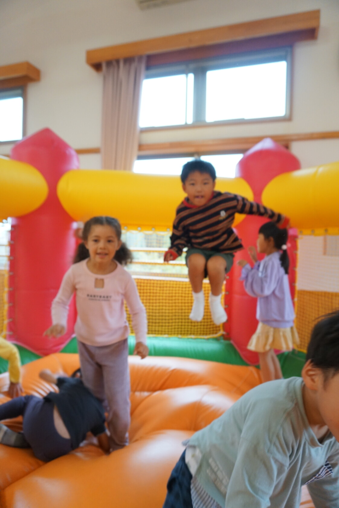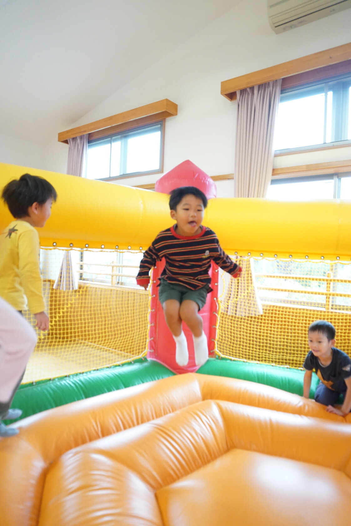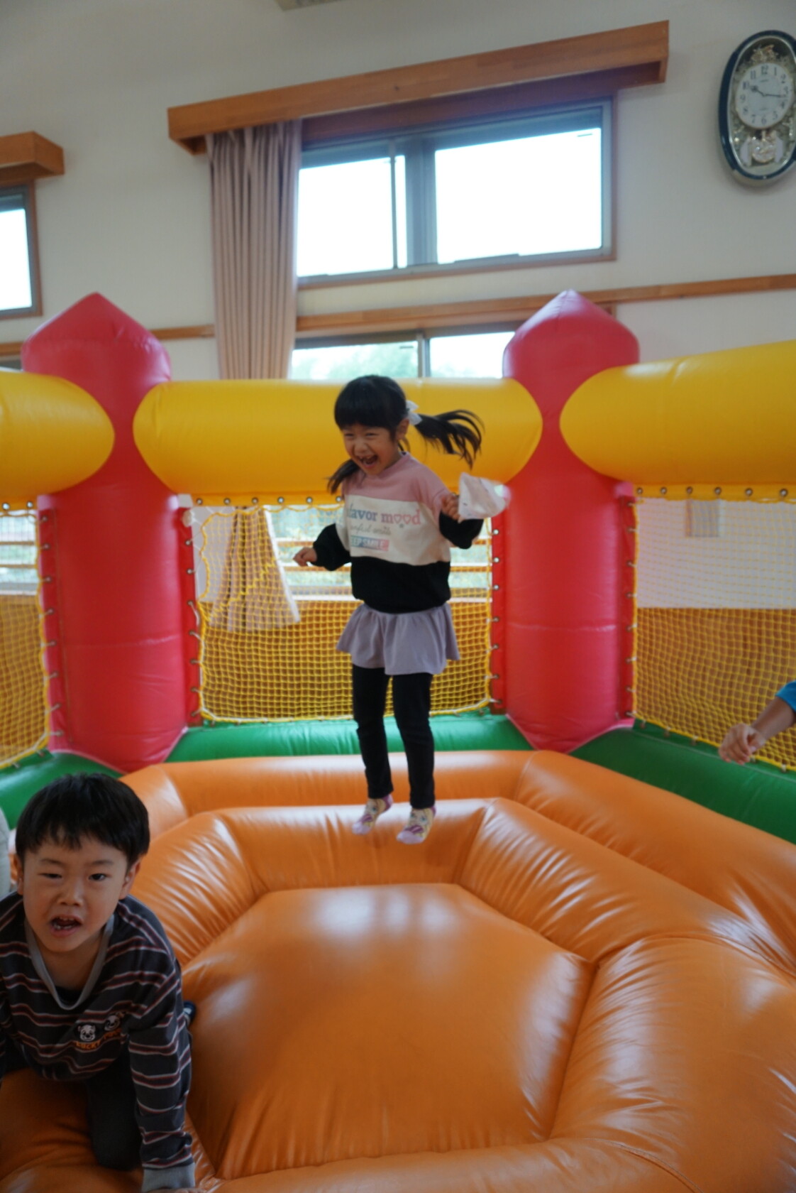 今日のできごと(ひまわり) 公開済み: 2024年10月28日更新: 2024年10月28日 今日はエアーランドで遊びました😆 自分の番が来るのを楽しみに待ち、跳びはねたり寝転んだりして遊んでいました☺