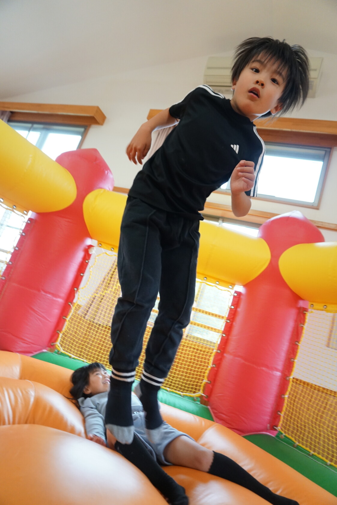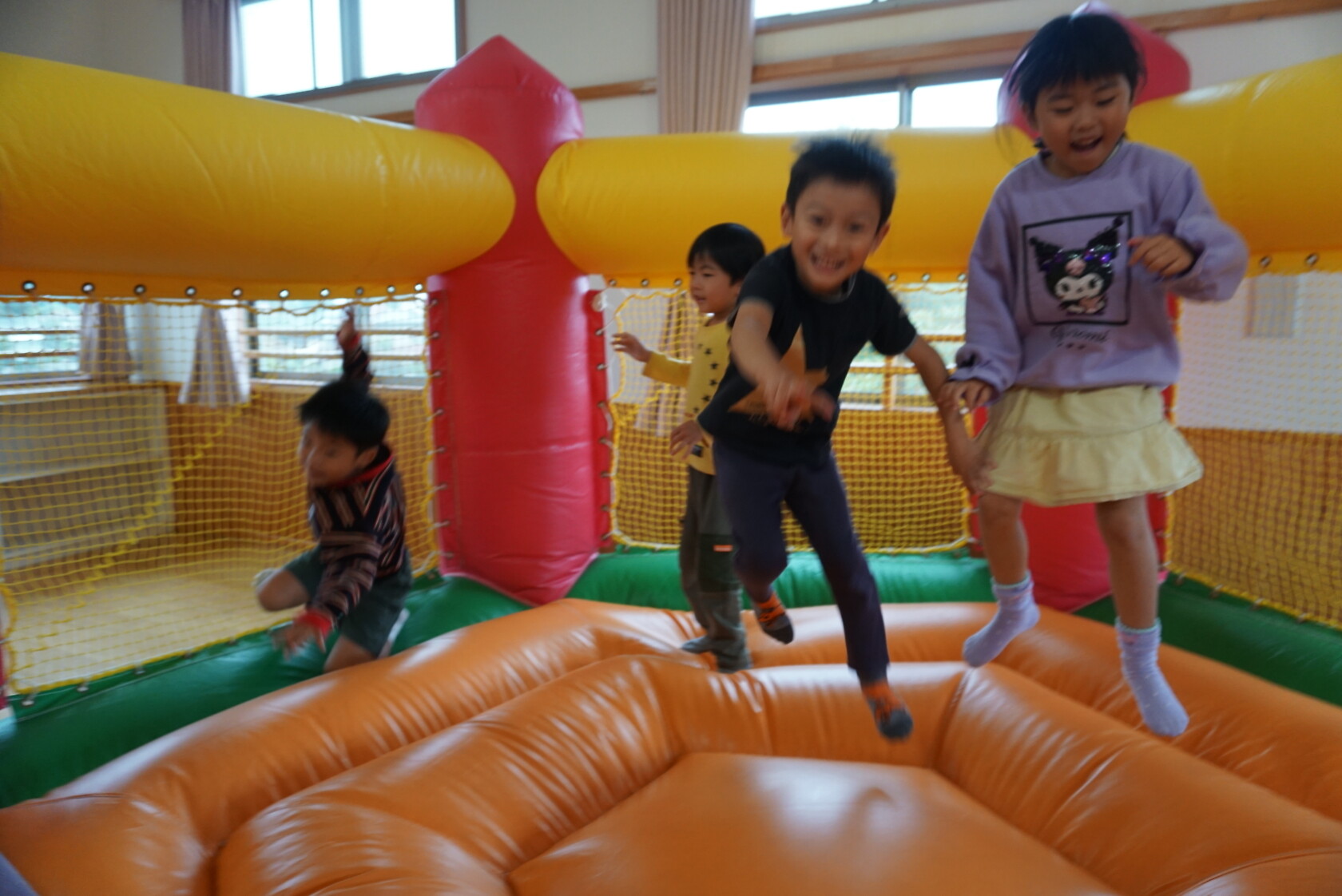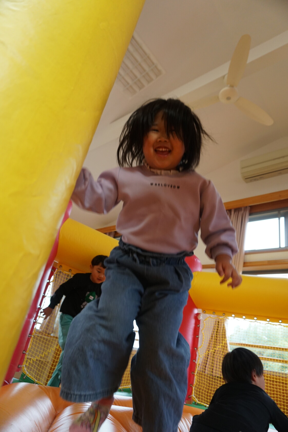 今日のできごと(ひまわり) 公開済み: 2024年10月28日更新: 2024年10月28日 今日はエアーランドで遊びました😆 自分の番が来るのを楽しみに待ち、跳びはねたり寝転んだりして遊んでいました☺