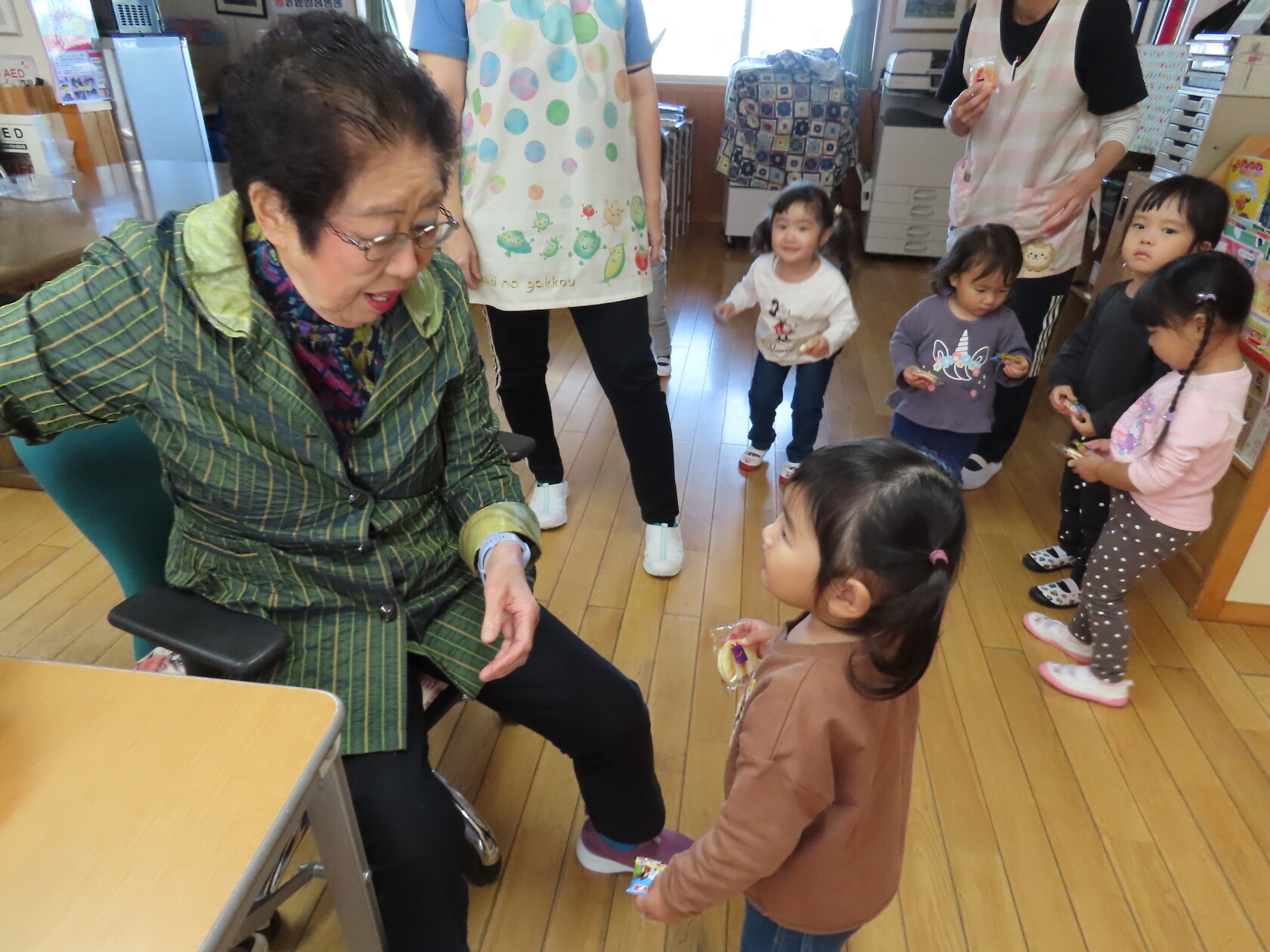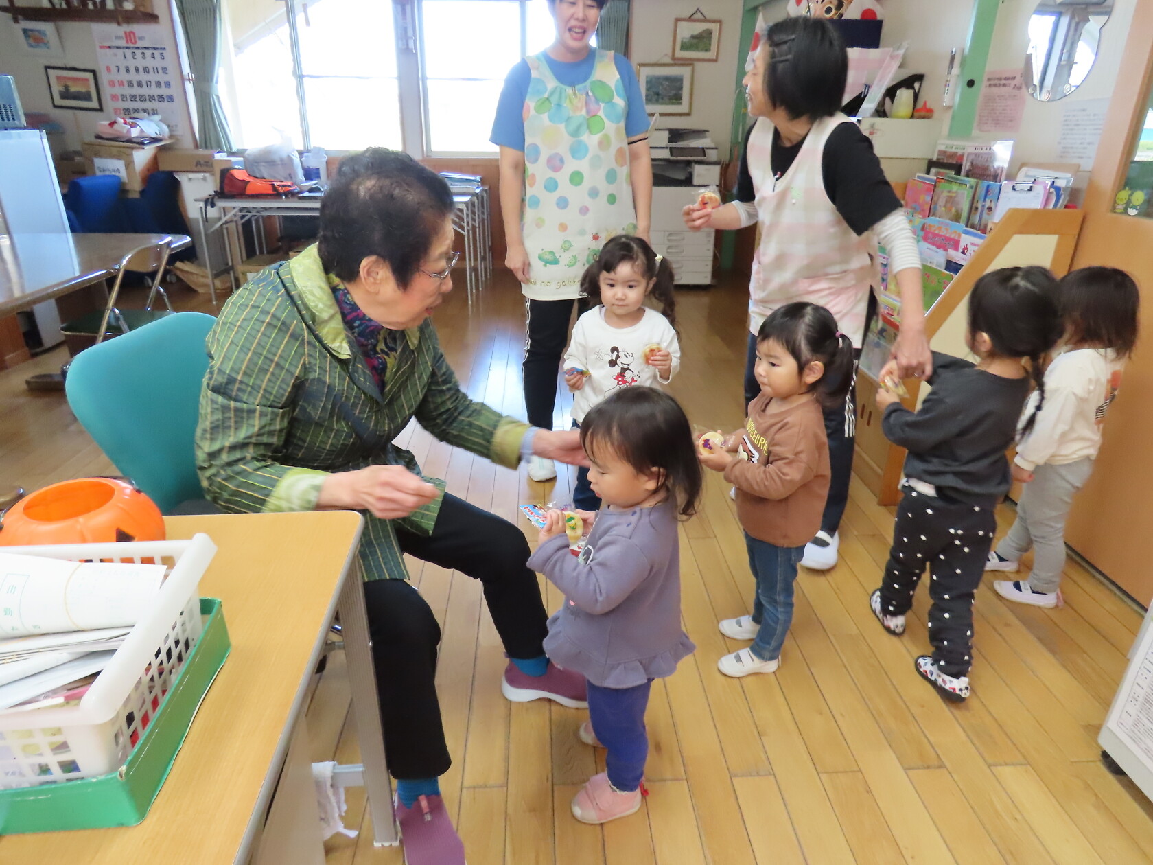 でも、お菓子をもらって大喜び!食べ終わると「もう1回!」と言っていました😁