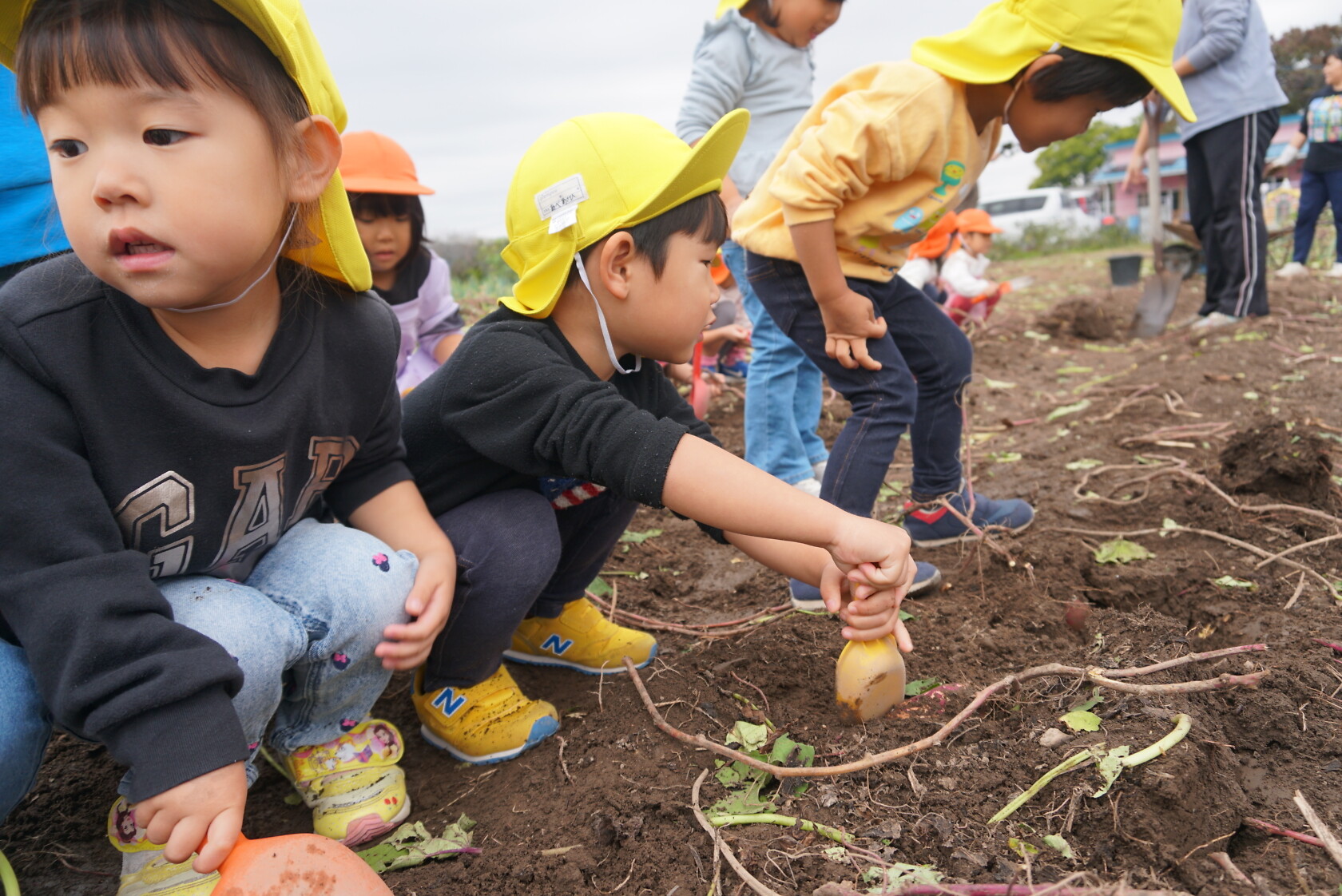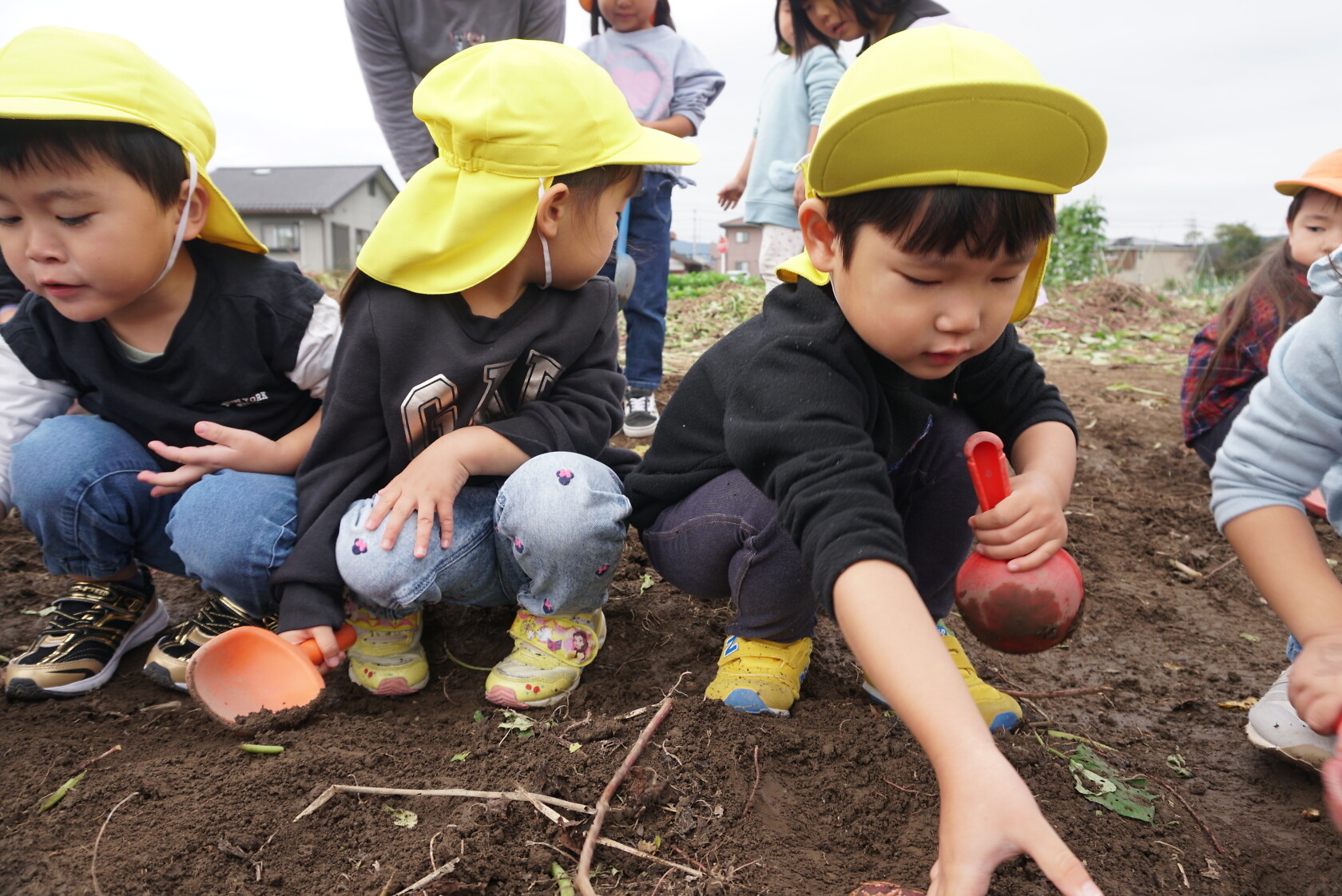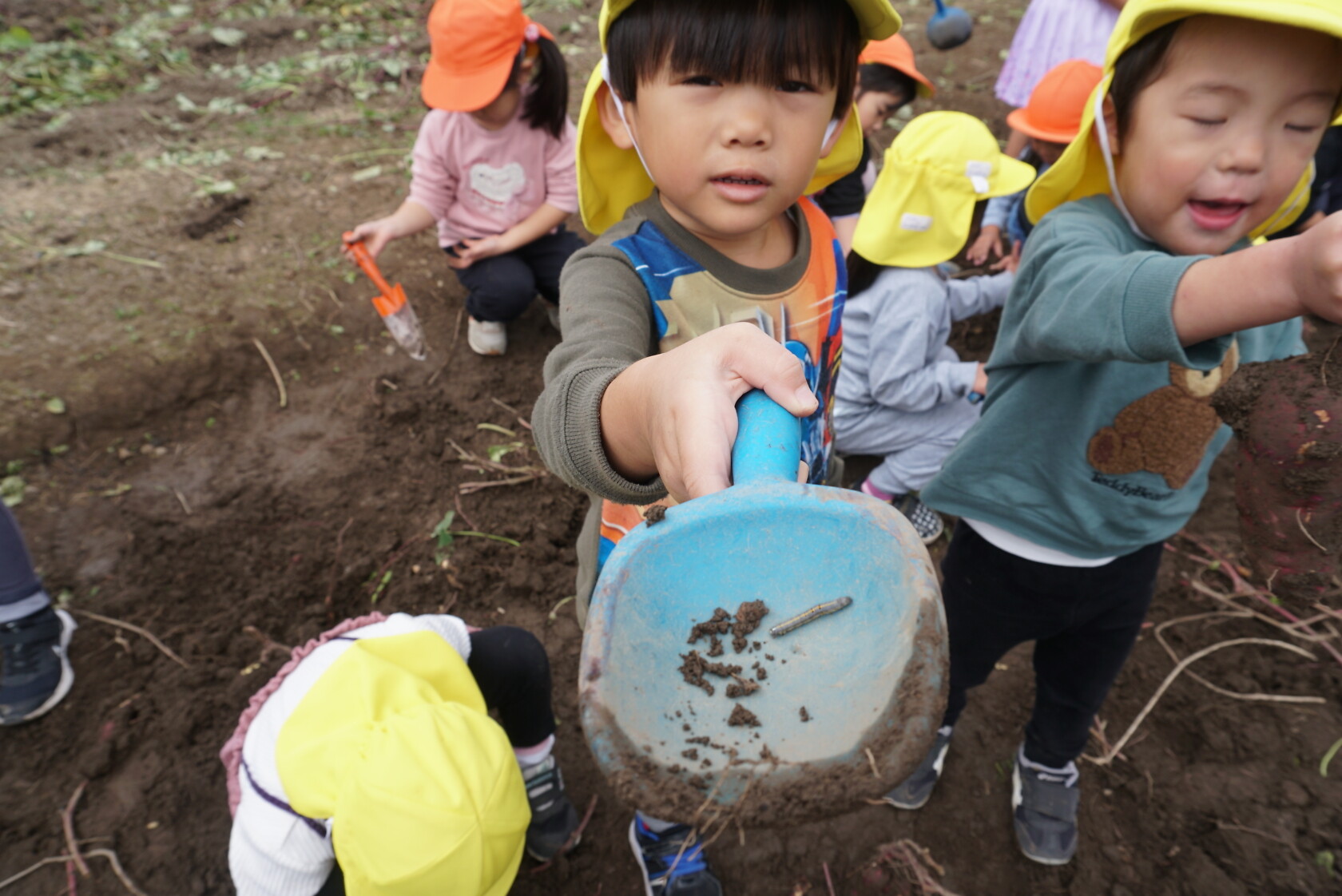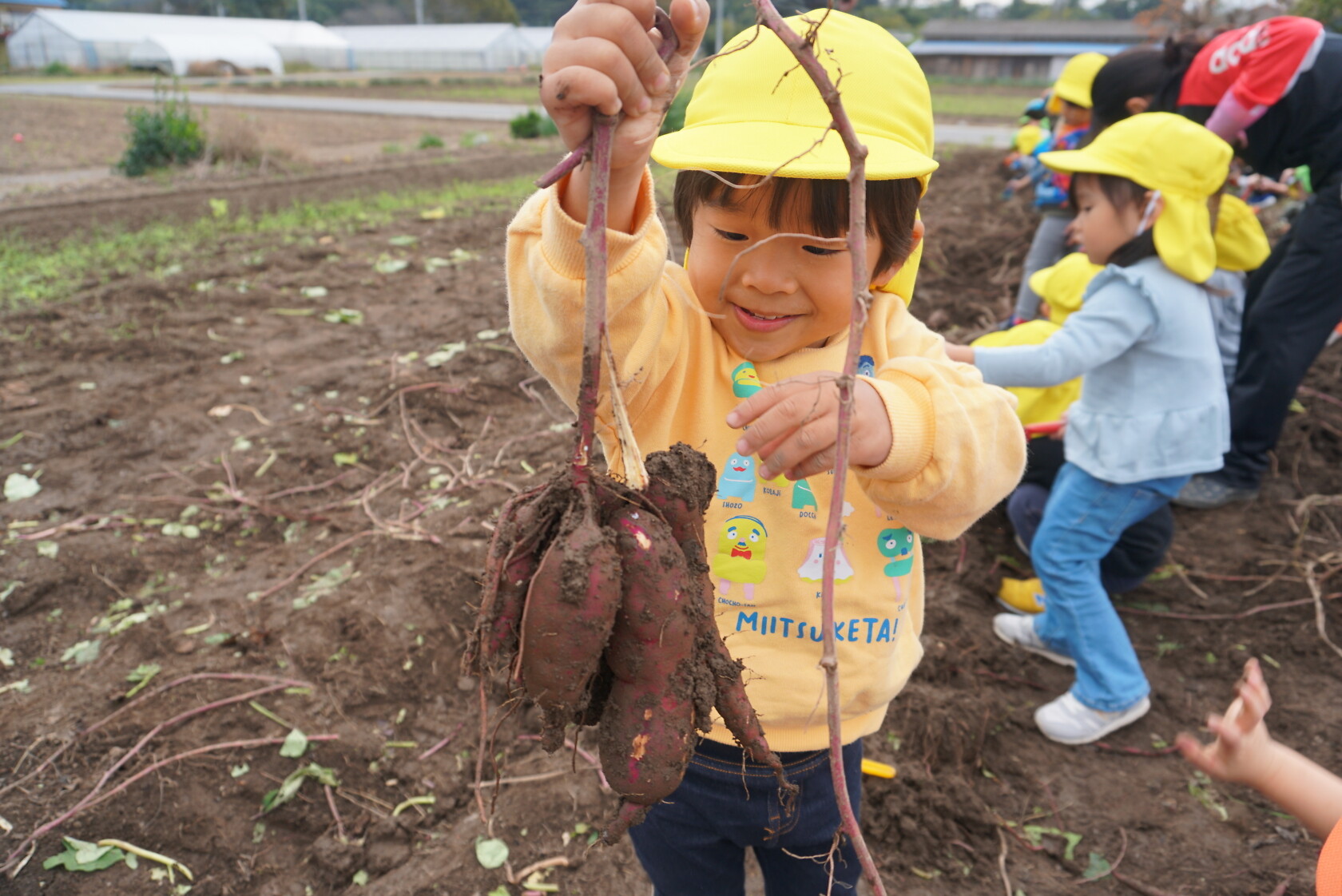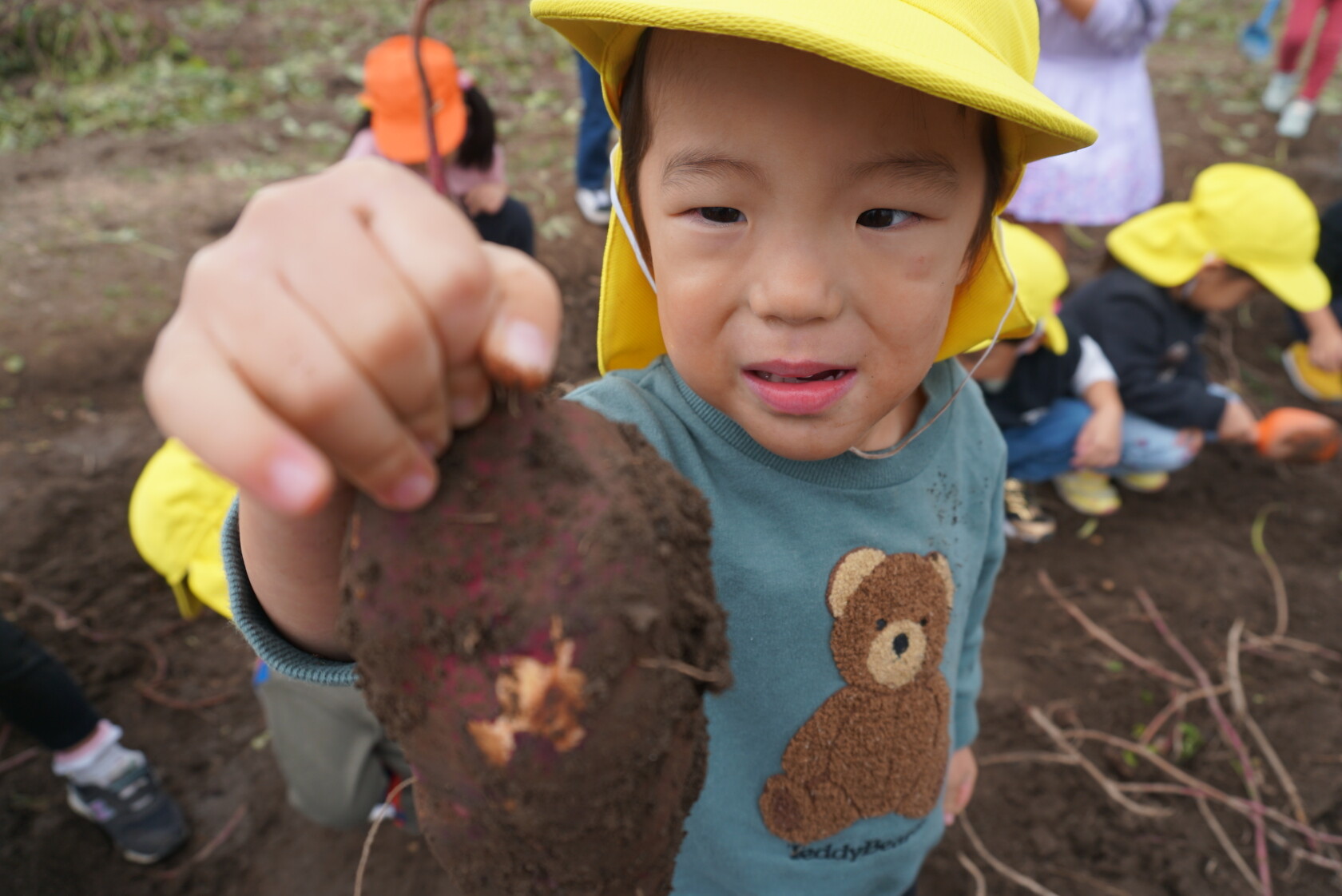 お芋が、土の中からお顔を出すと「わぁー!!」と大歓声😆🎵