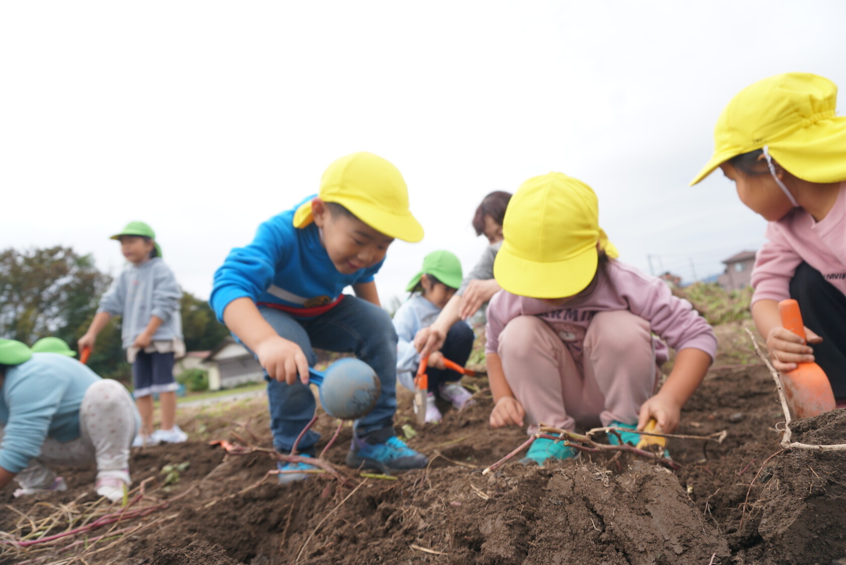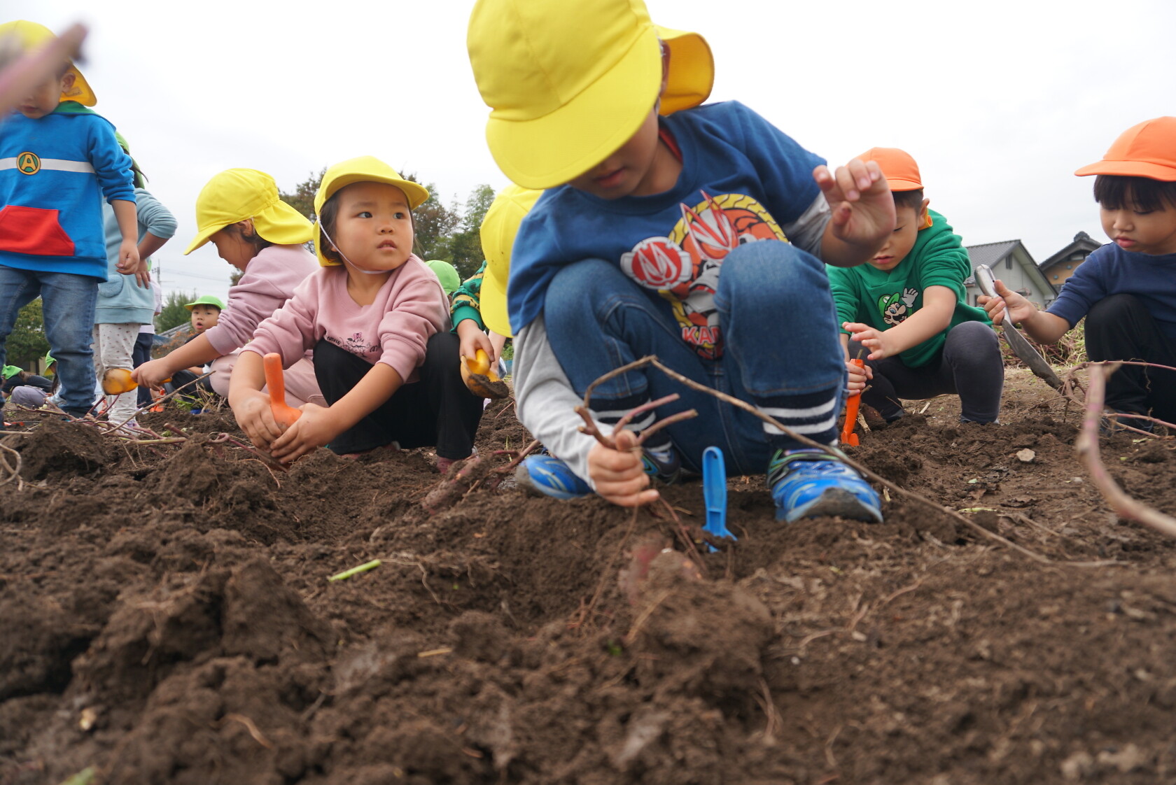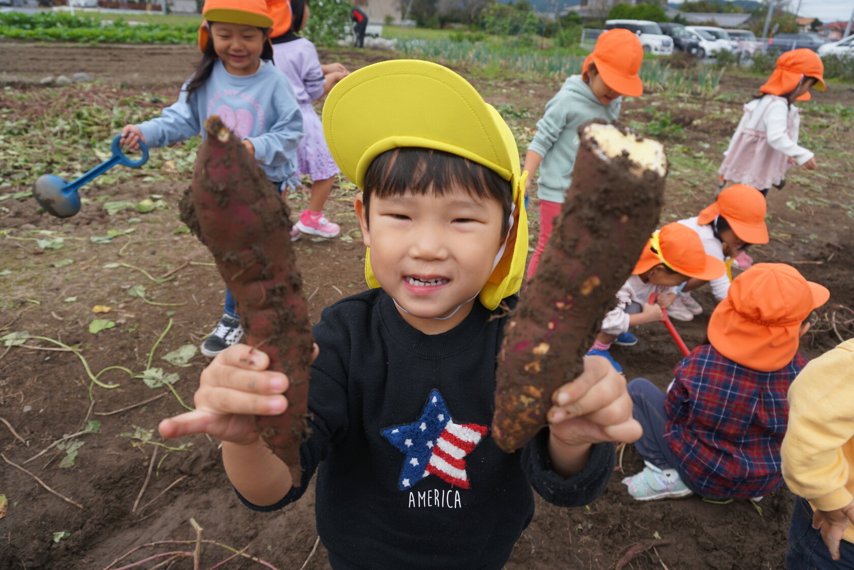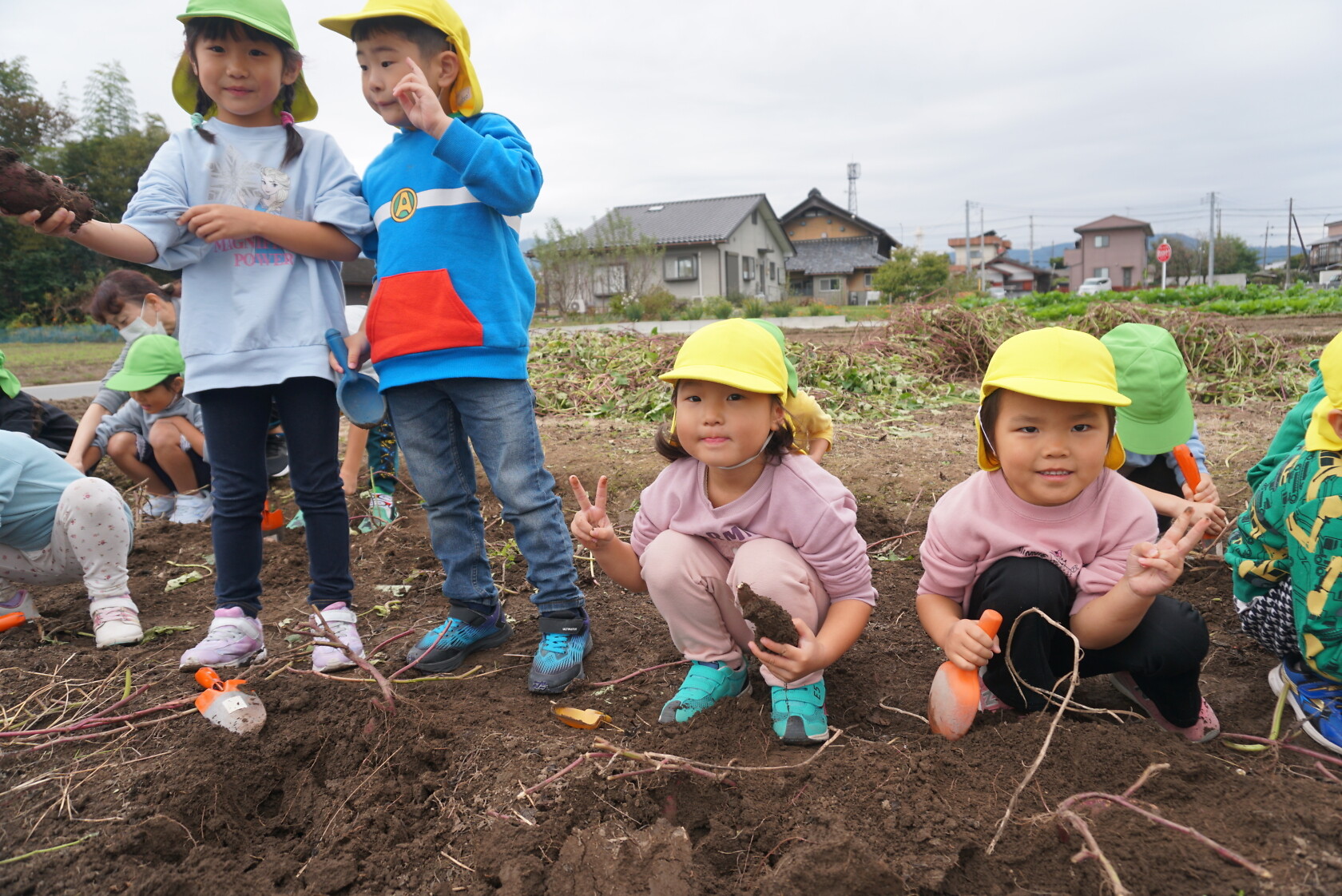 お芋が、土の中からお顔を出すと「わぁー!!」と大歓声😆🎵