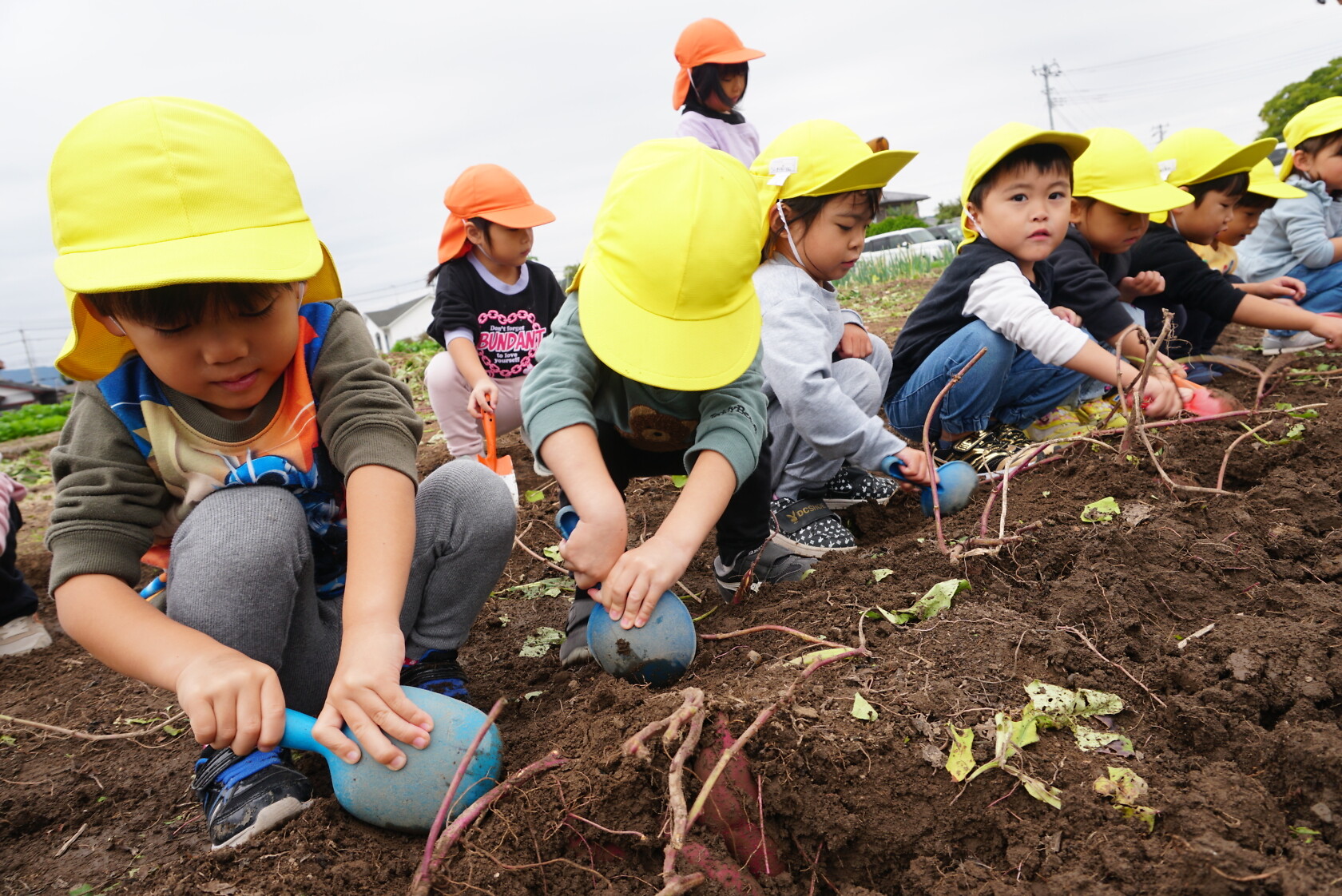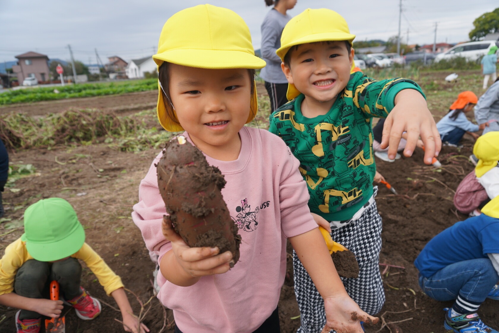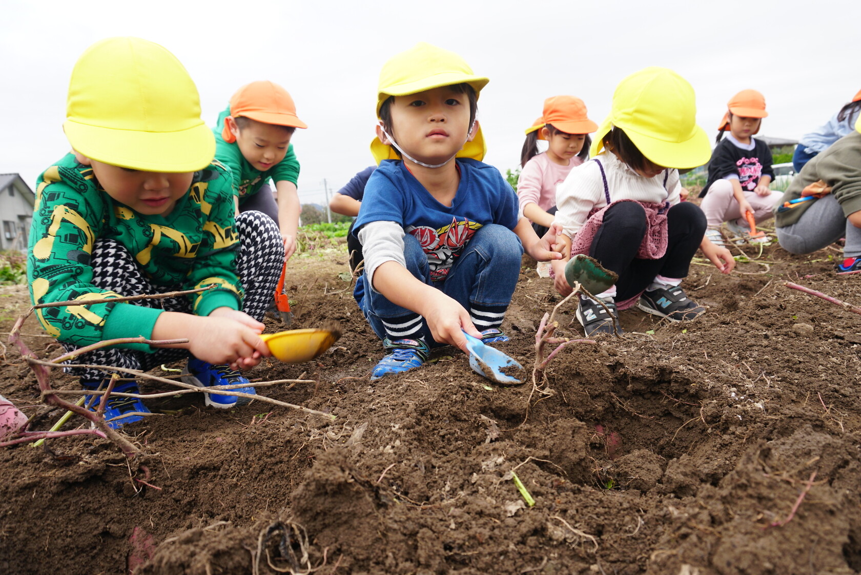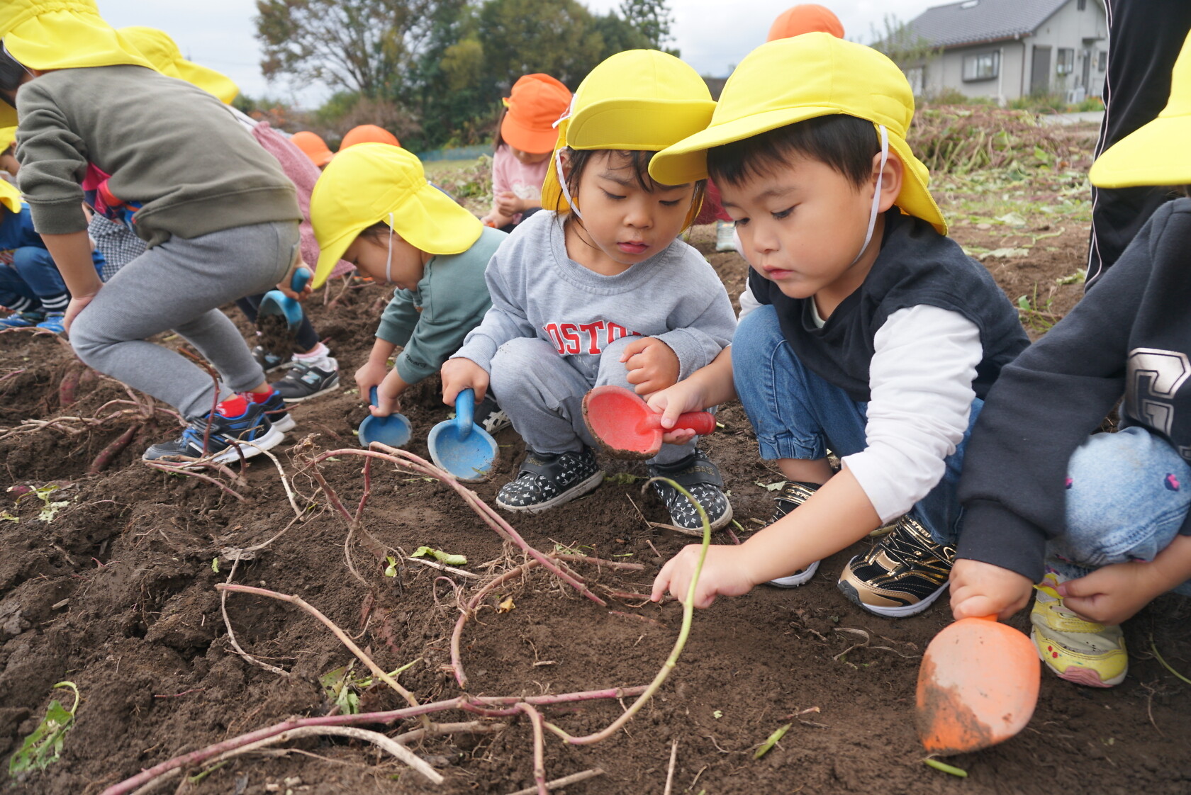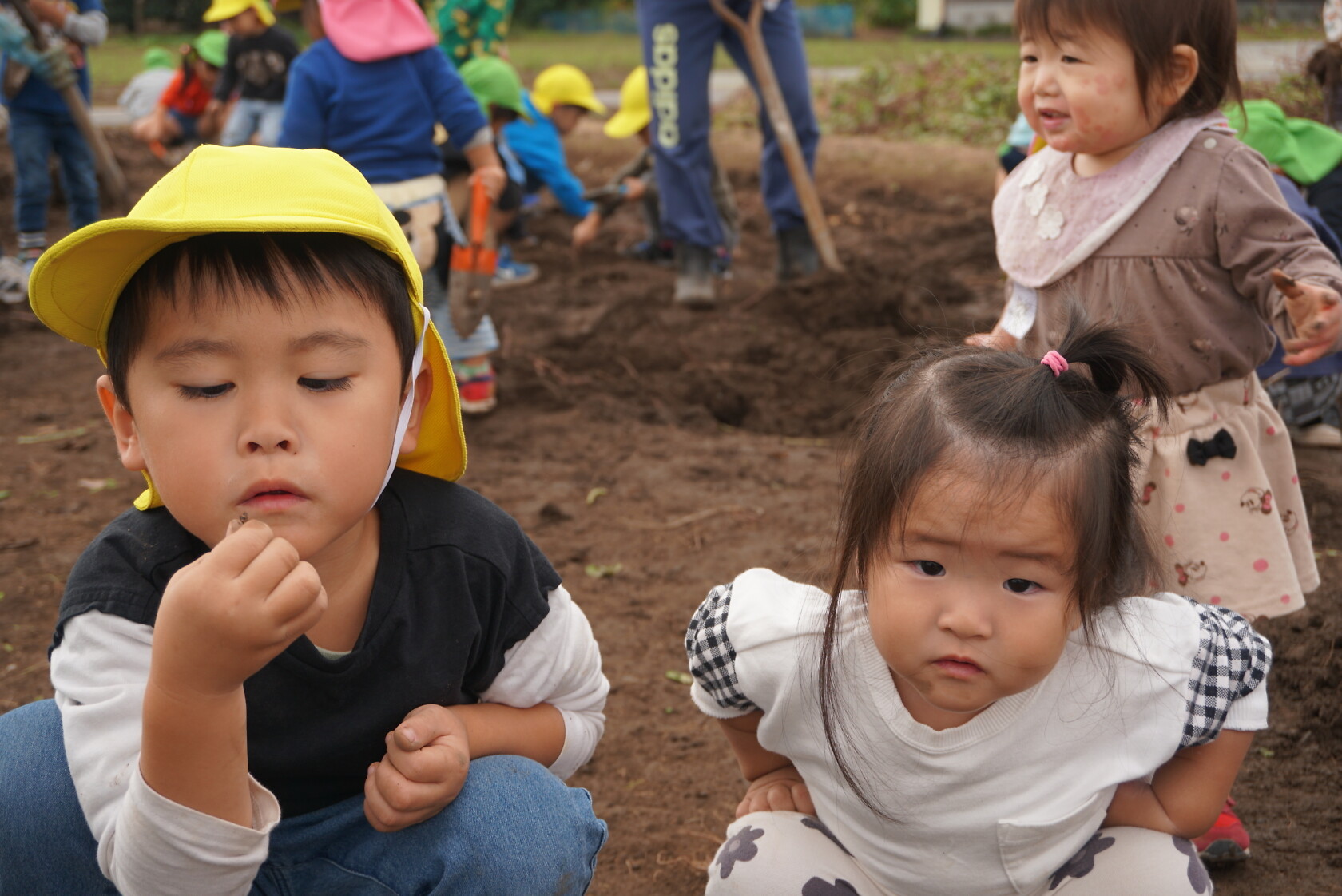 お芋が、土の中からお顔を出すと「わぁー!!」と大歓声😆🎵