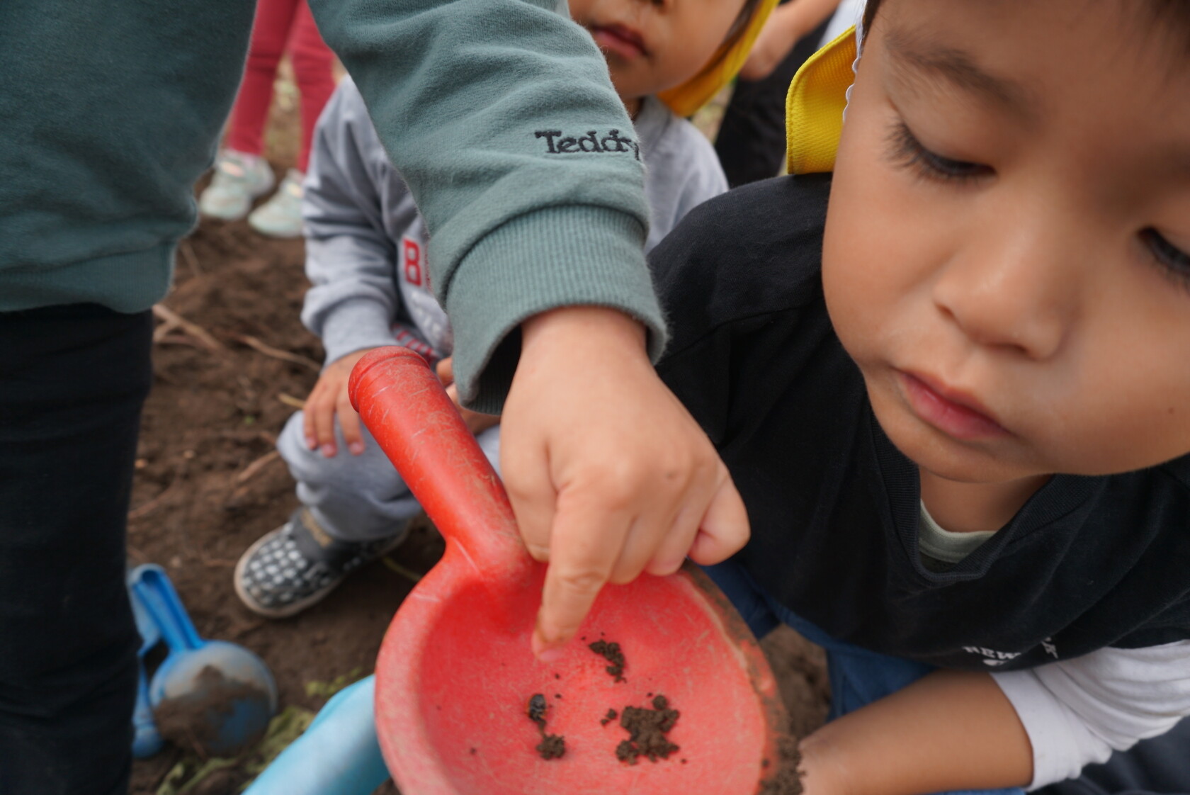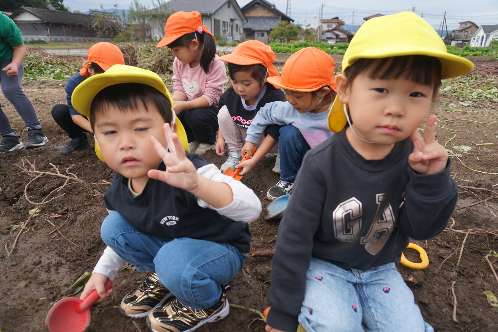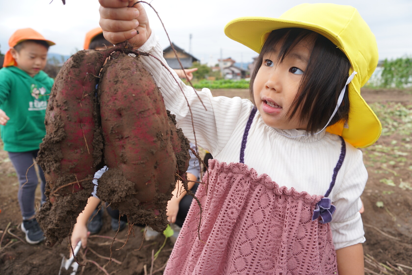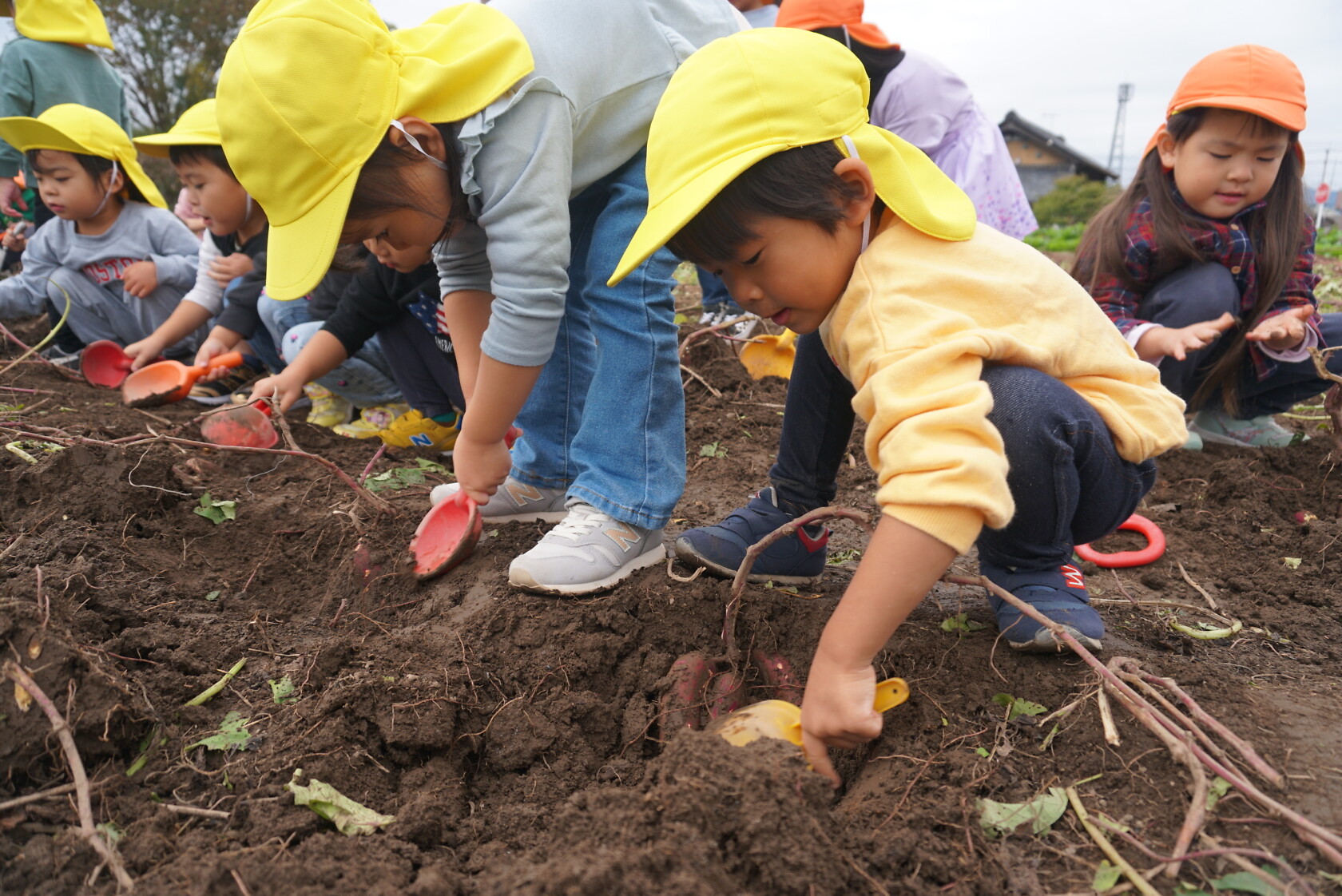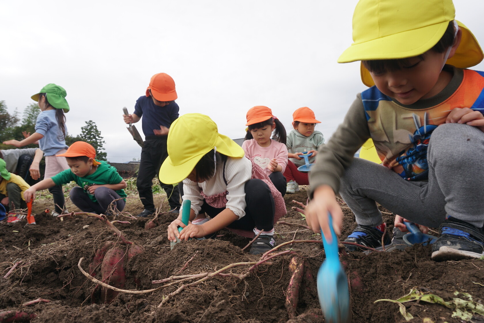 お芋が、土の中からお顔を出すと「わぁー!!」と大歓声😆🎵