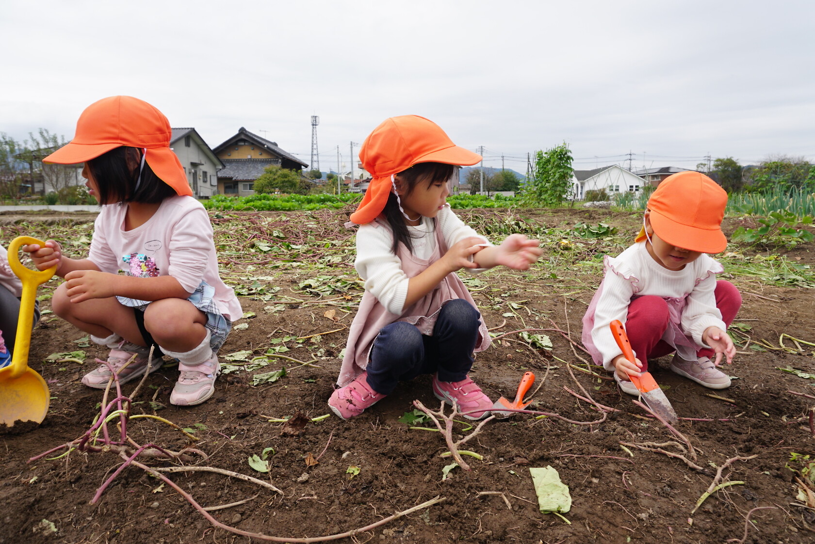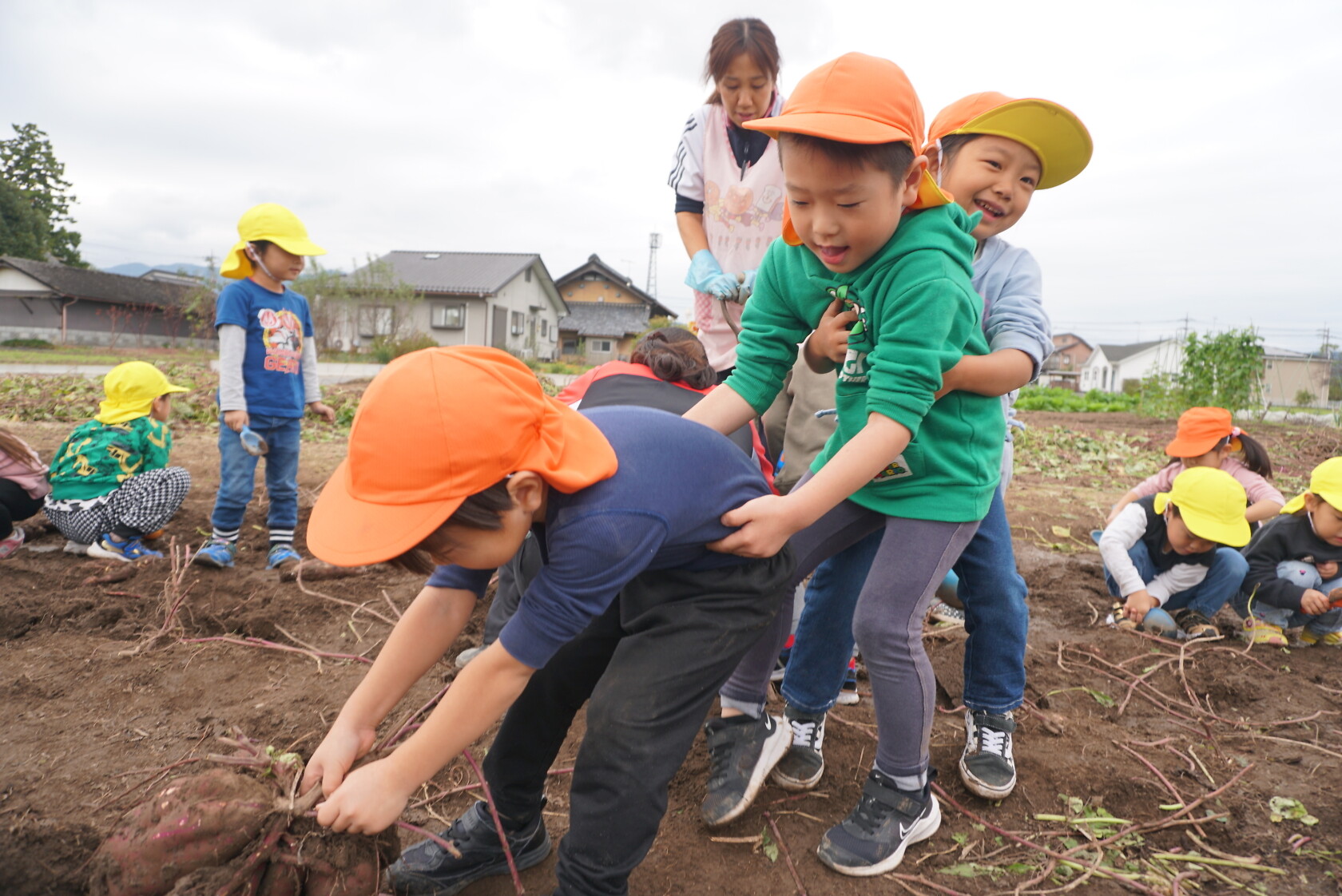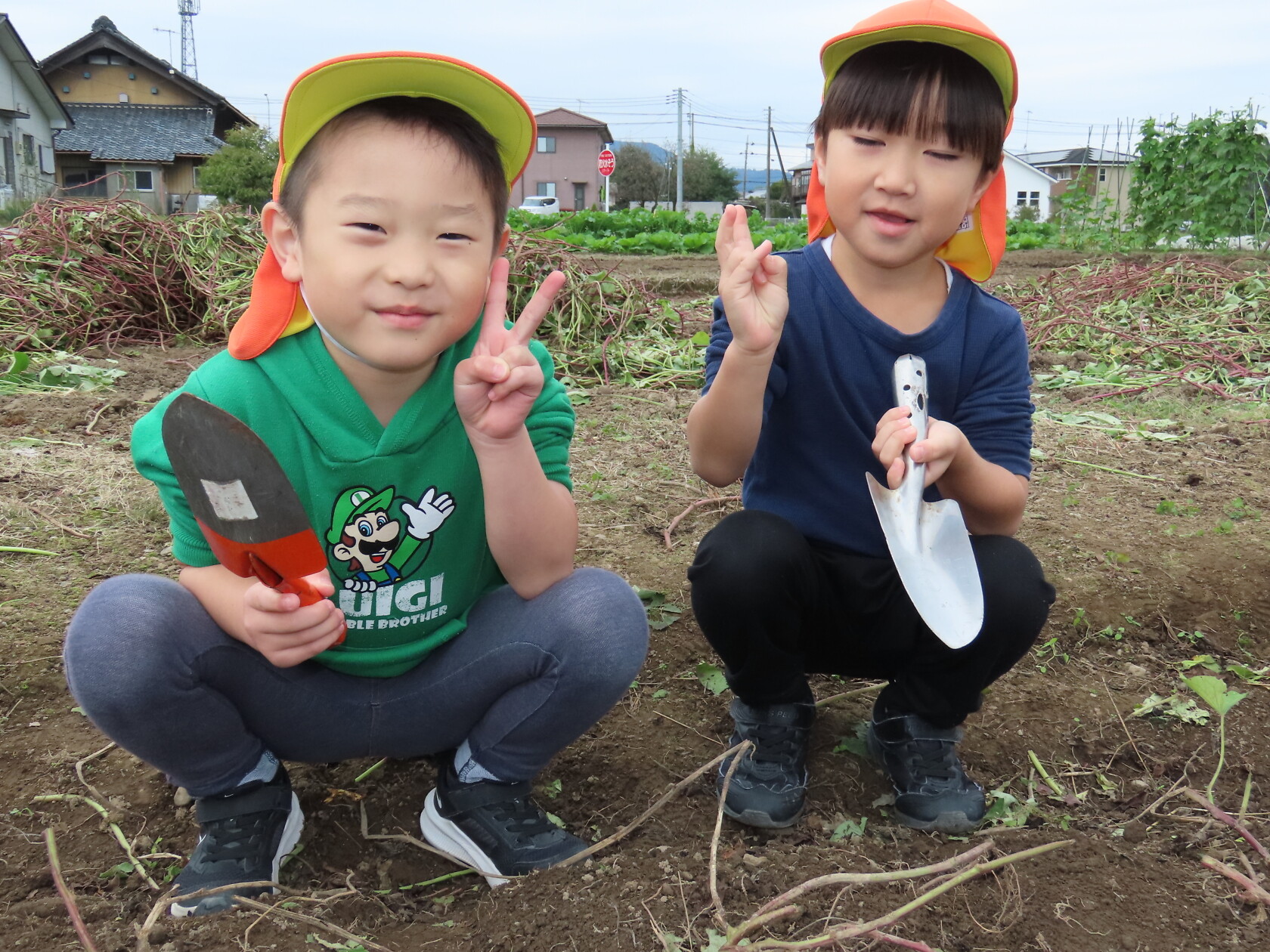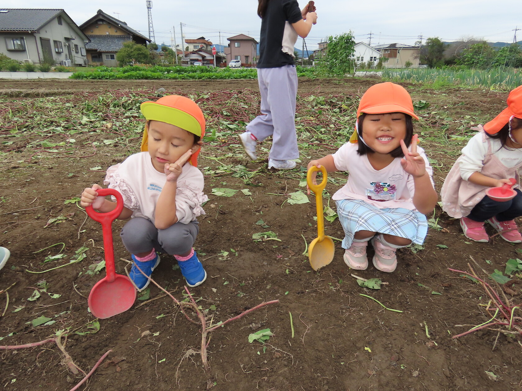 いもほり(ゆり) 公開済み: 2024年11月6日更新: 2024年11月6日 今日はいもほりをしました✨ 大きいいもが見つかると「手伝ってあげるよ!」「ぐらぐら揺らして取るんだよ!!」とお友だち同士協力をして とても楽しそうでした😆 これから給食やおやつでみんなの取ったおいもが出てくるので楽しみにしていて下さいね🍠