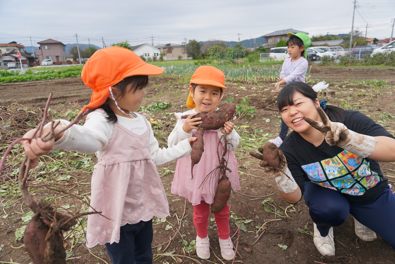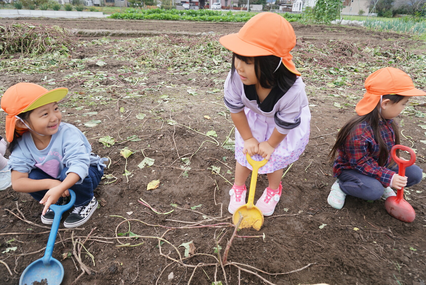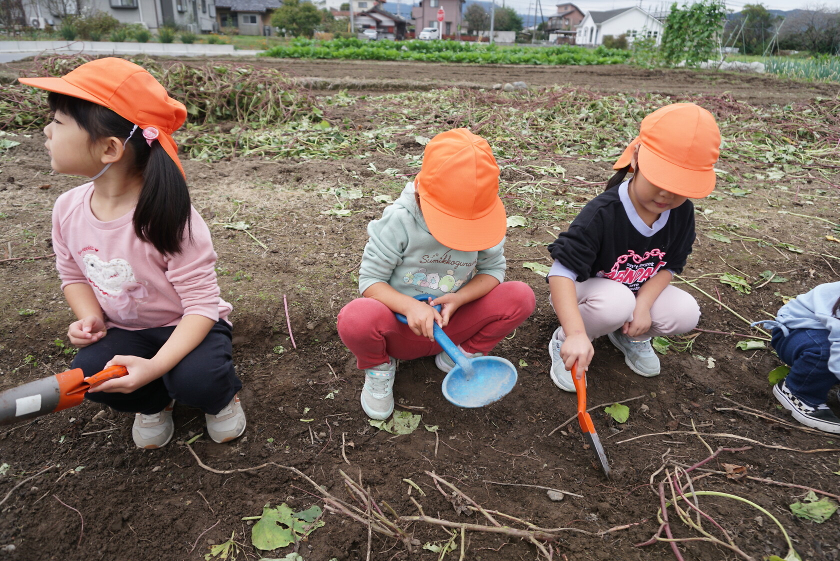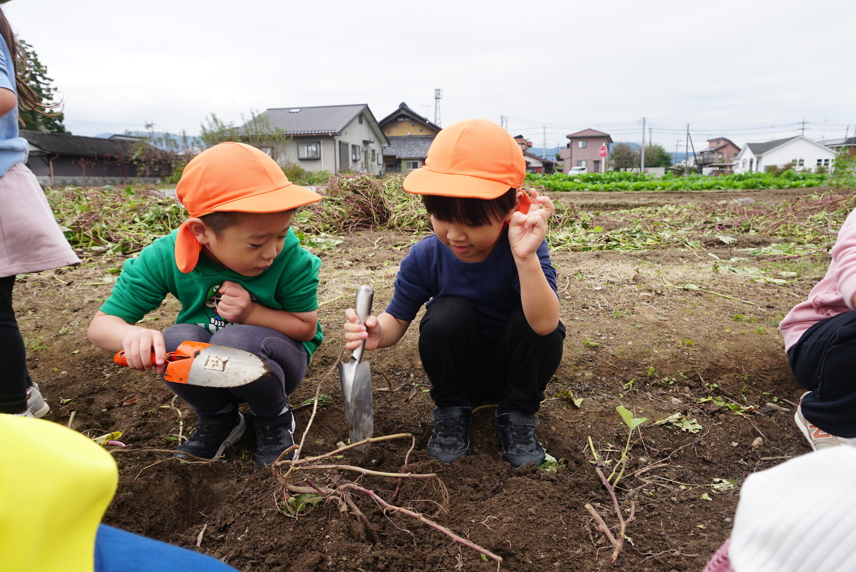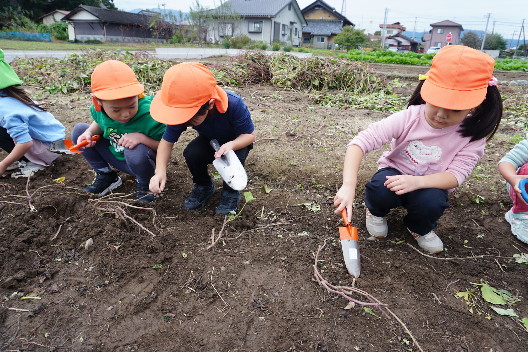 いもほり(ゆり) 公開済み: 2024年11月6日更新: 2024年11月6日 今日はいもほりをしました✨ 大きいいもが見つかると「手伝ってあげるよ!」「ぐらぐら揺らして取るんだよ!!」とお友だち同士協力をして とても楽しそうでした😆 これから給食やおやつでみんなの取ったおいもが出てくるので楽しみにしていて下さいね🍠