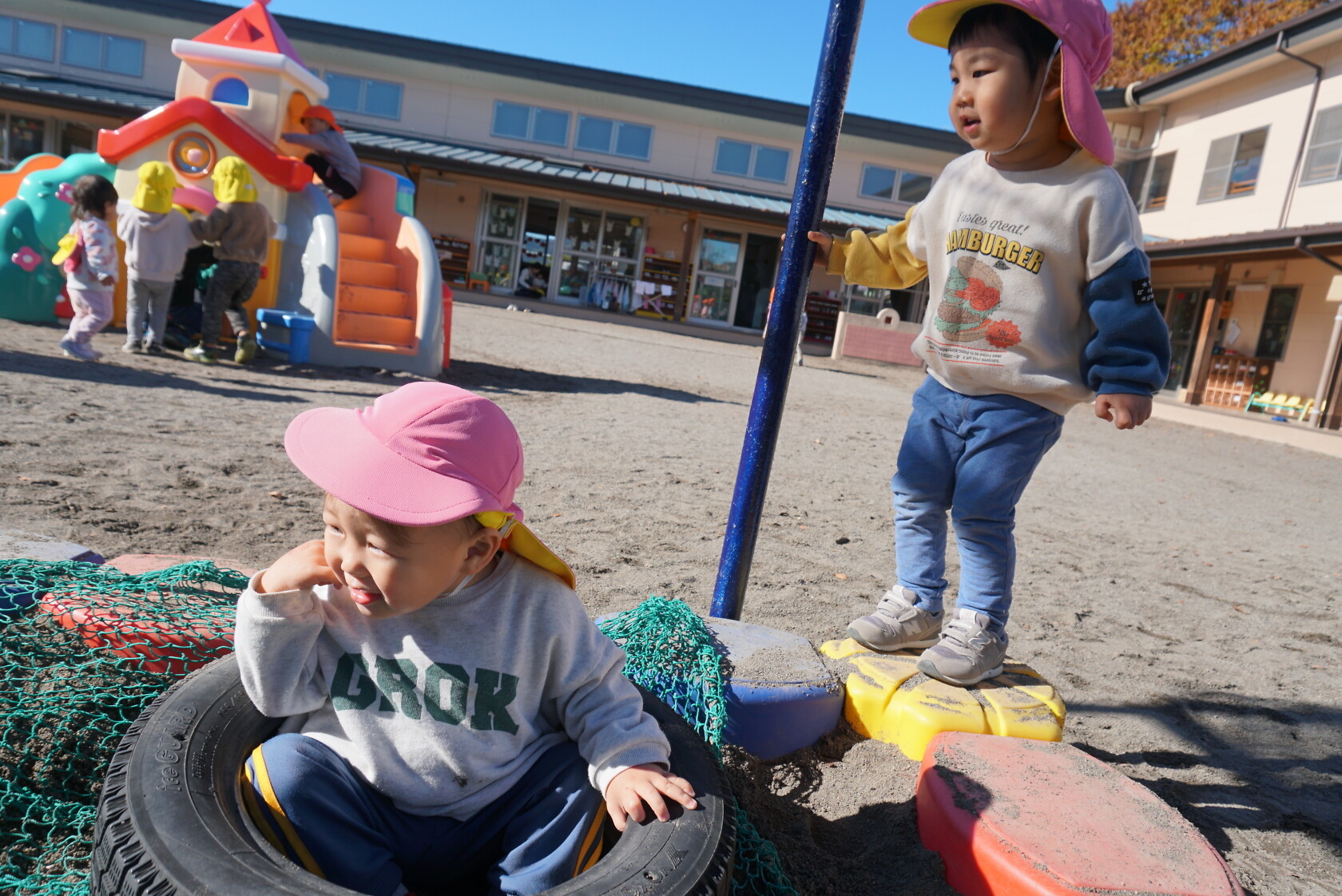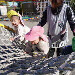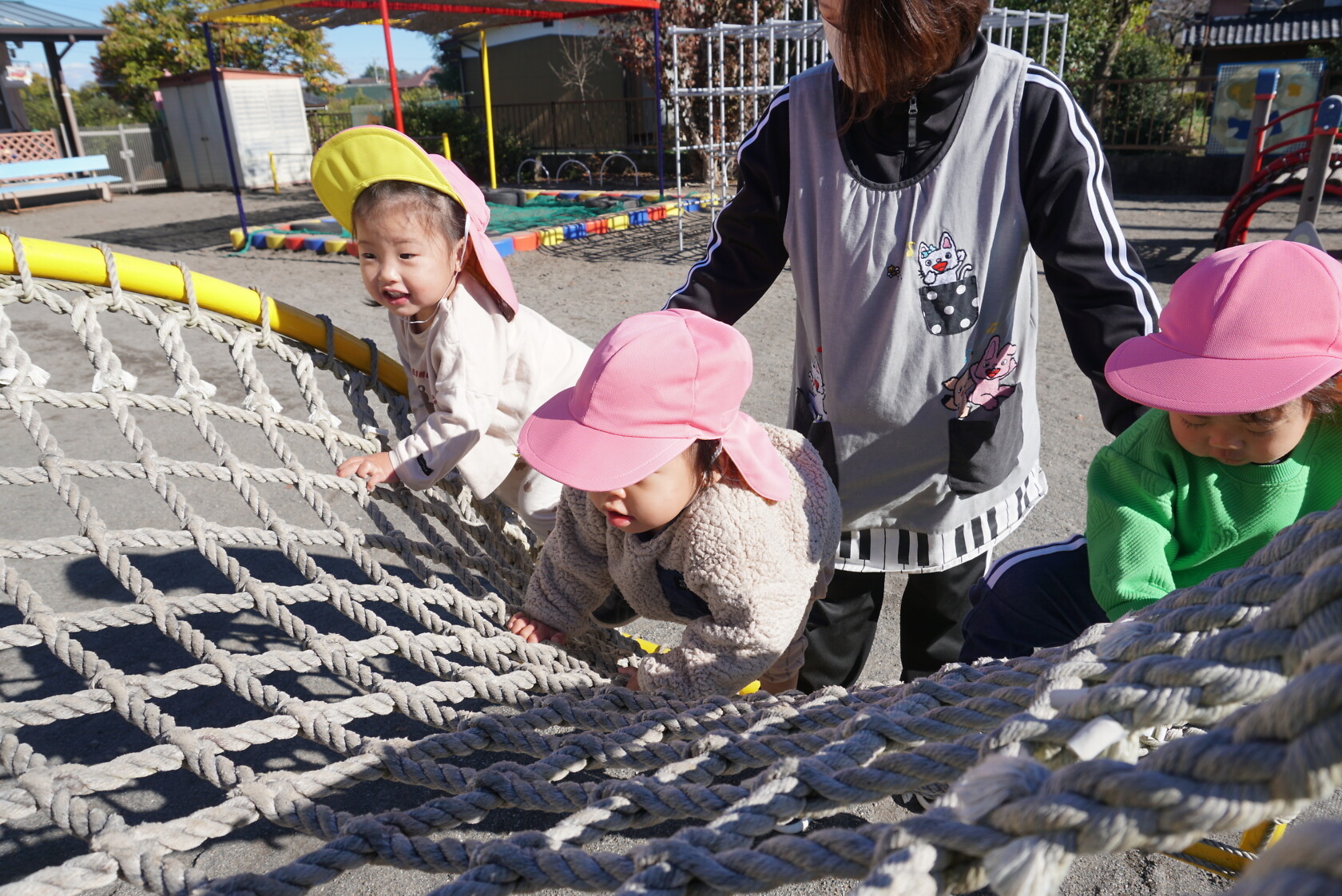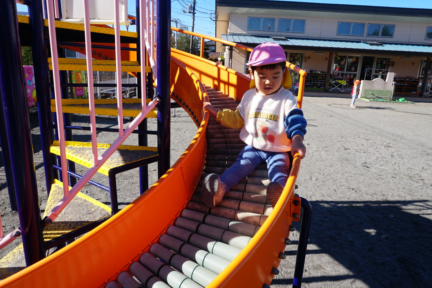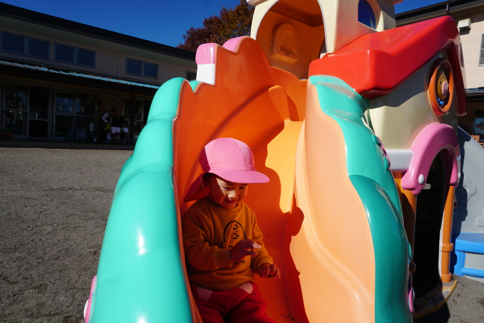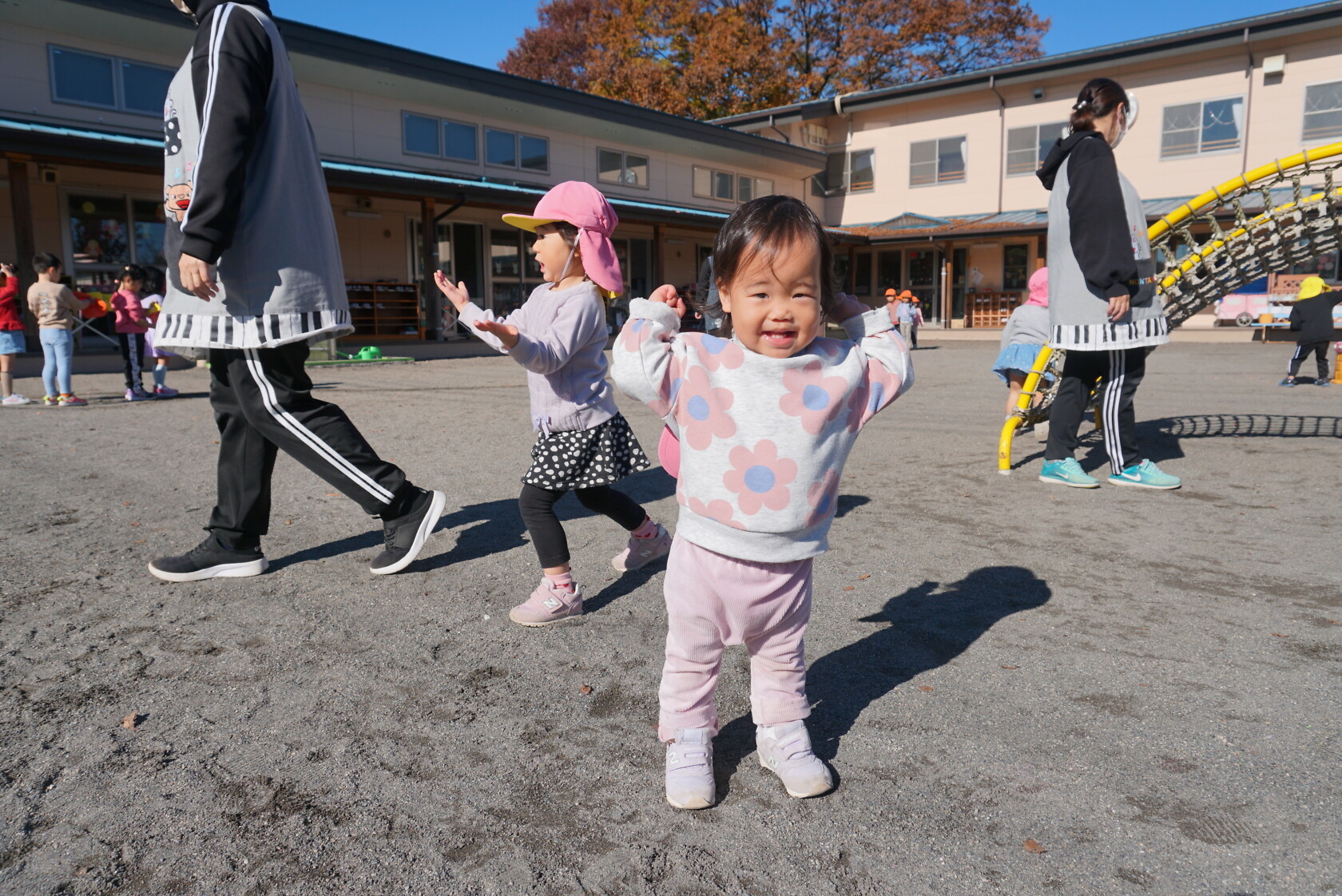 今日のできごと(さくら) 公開済み: 2024年11月28日更新: 2024年11月28日 今日は、とっても暖かい1日でした☀ そんな日は、外遊びを沢山して体を動かしました🎵 朝は、夜露で滑り台が濡れていたけれど、次に外に出た時は乾いていて「もう、ぬれてないね~」と、気づく子や、太鼓橋に登り「お~い!せんせい」と、呼んでくれる子など、お話上手にになった1歳児さん😁 色んな場所に興味を持って、トコトコ駆け出して行く0歳児さん😁 みんな元気いっぱいの、さくら組さんです💪