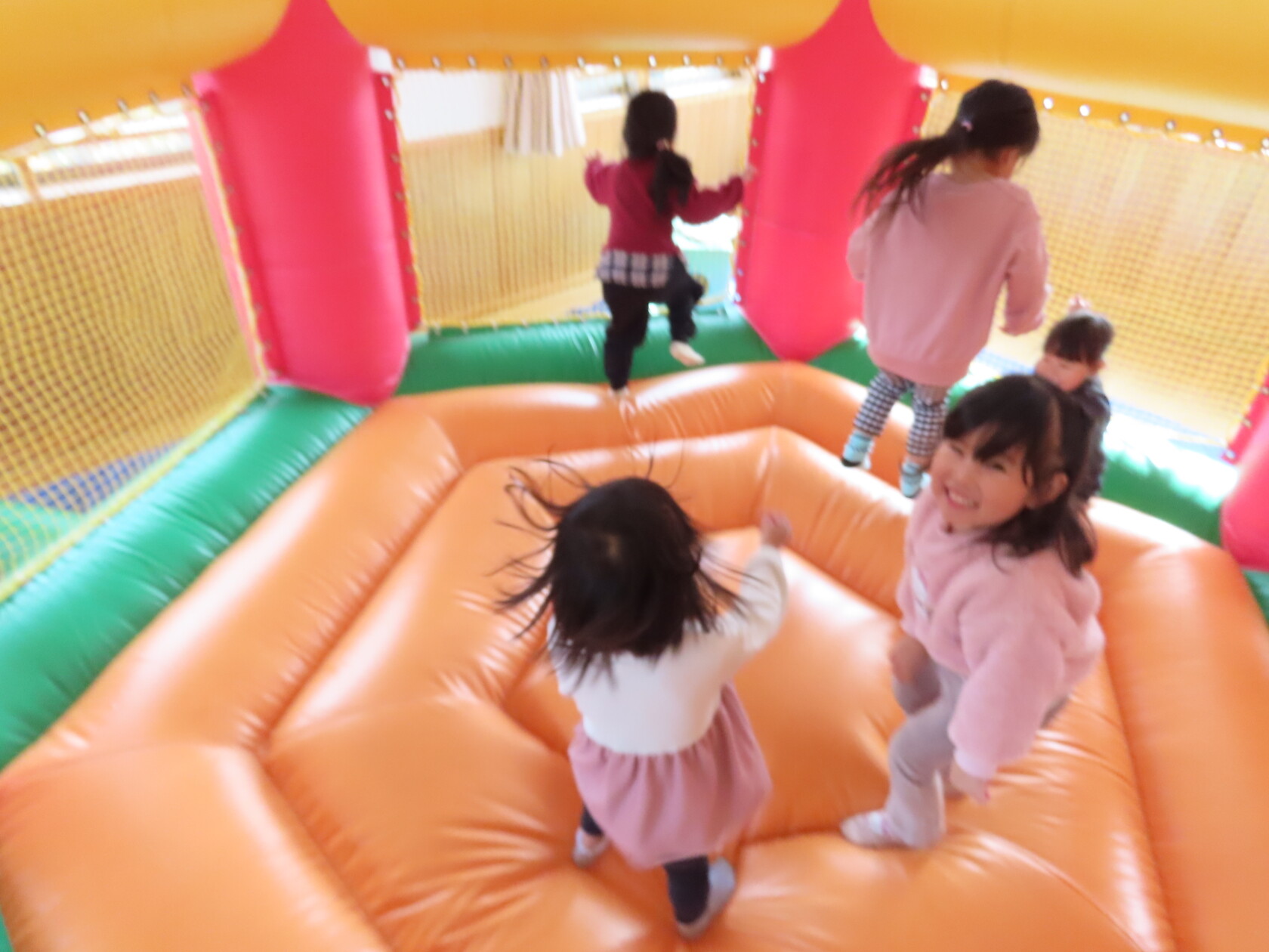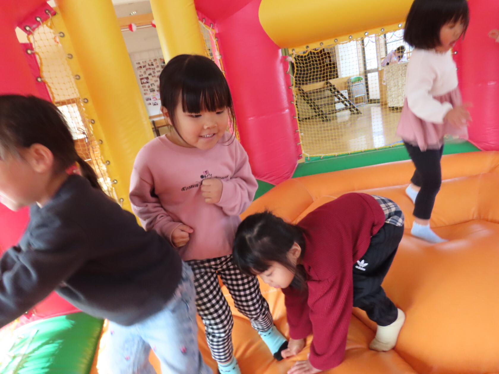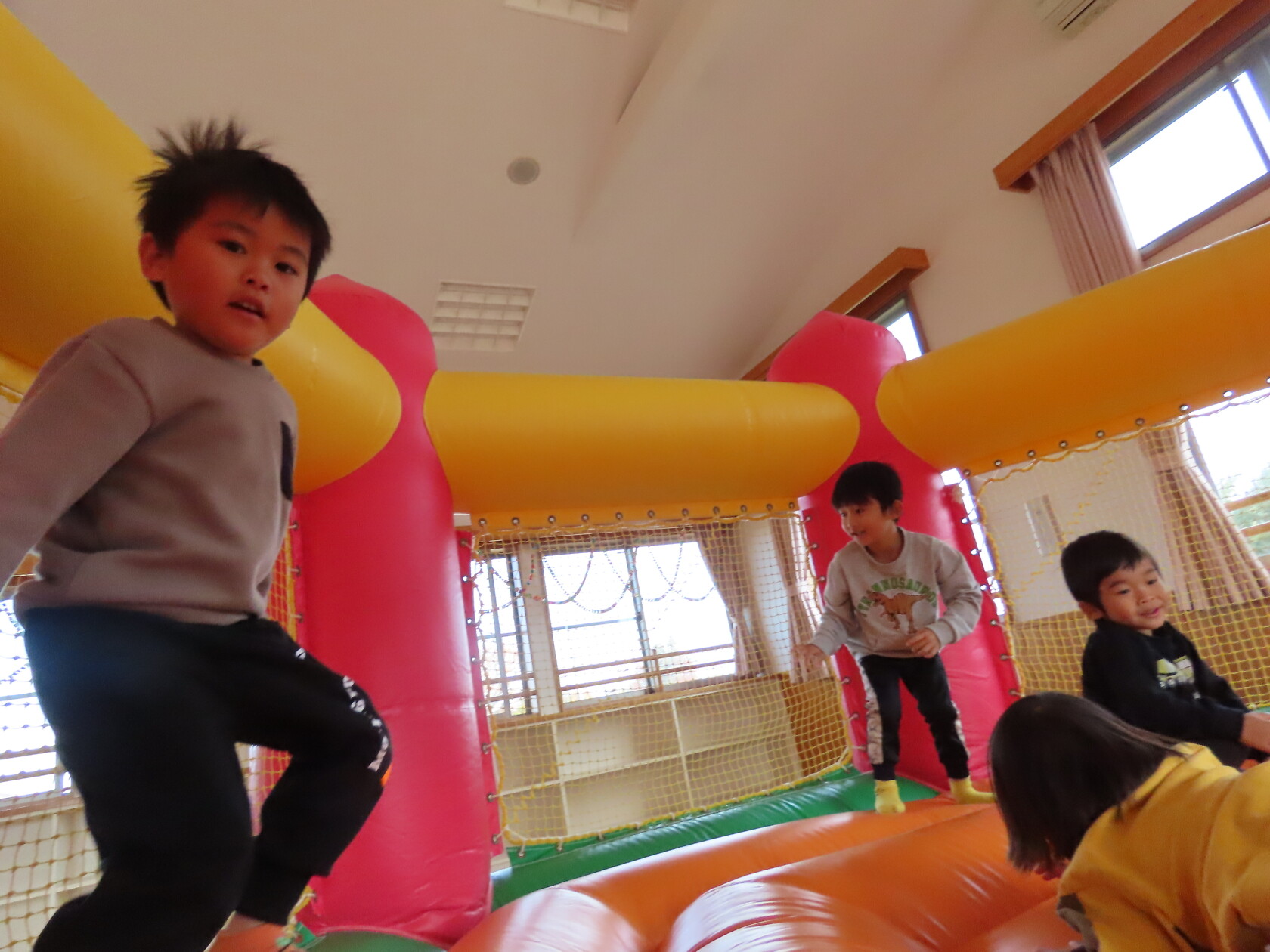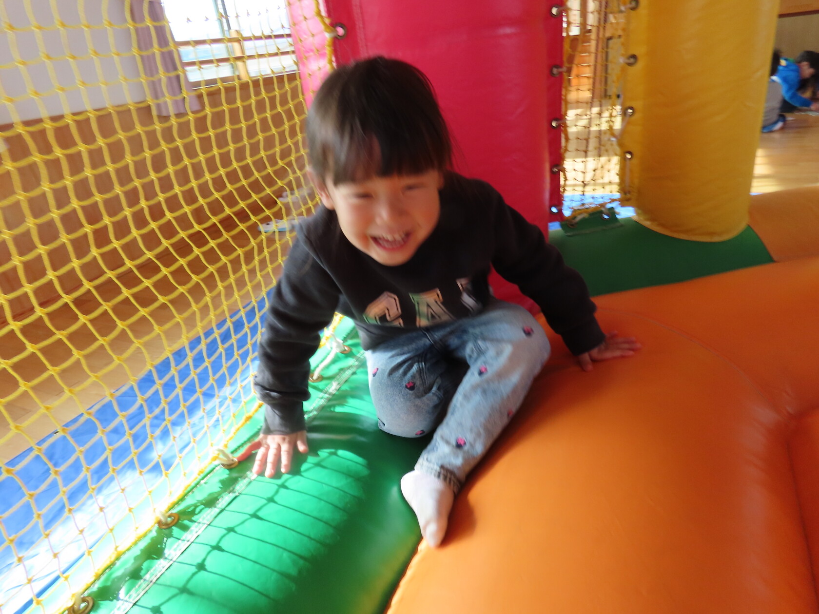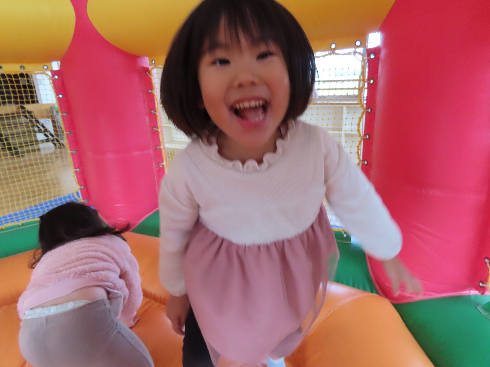今日のできごと(すみれ) 公開済み: 2024年12月4日更新: 2024年12月4日 今日は、2階のホールで・・・。 エアーランドを楽しみました😁ホールに近づくと、エアーランドの空気を送り込む音が聞こえただけで「わー!やったー!トランポリン!!」と大歓声😆🎵 色んな表情を見せてくれました📸💕