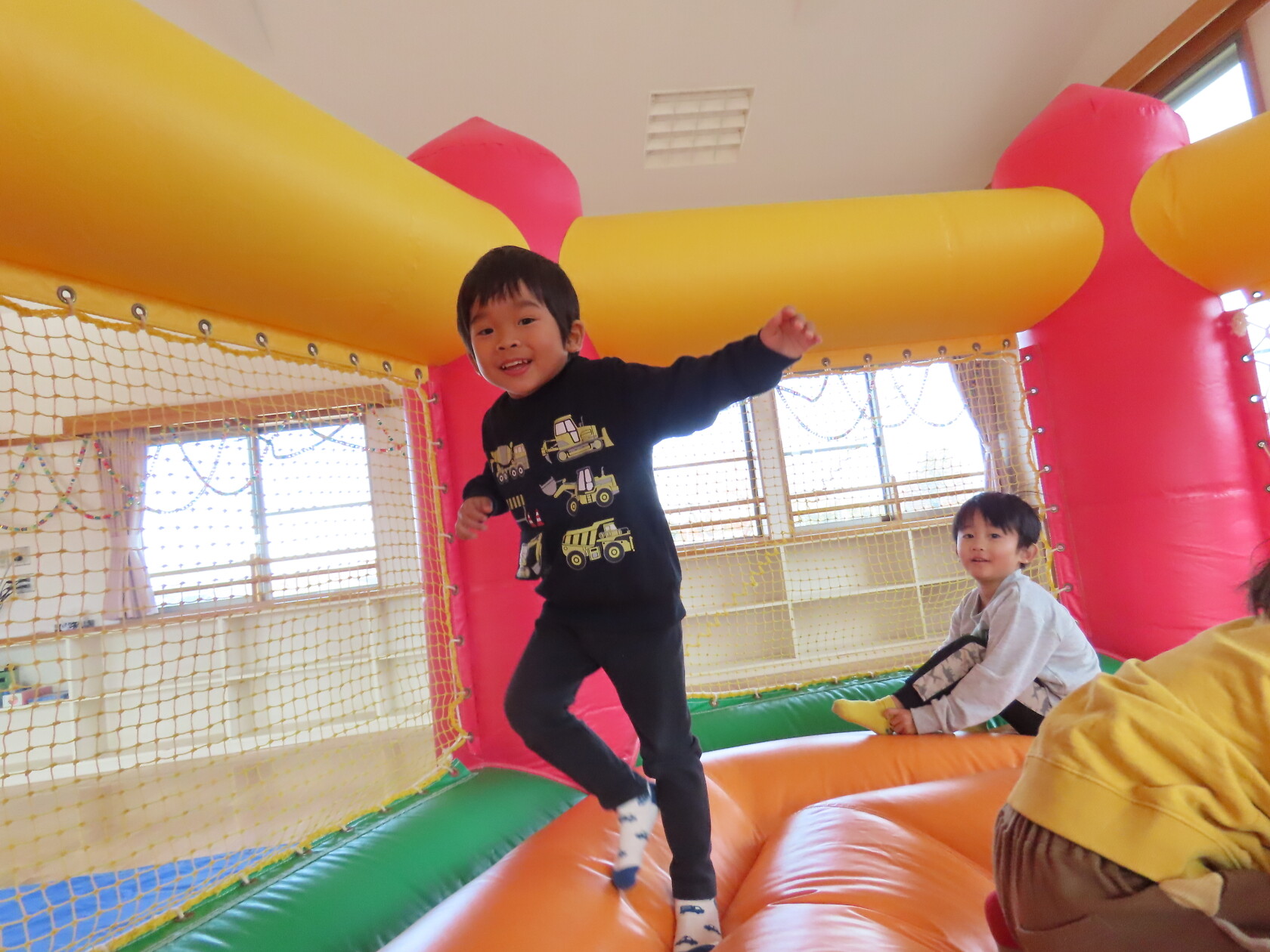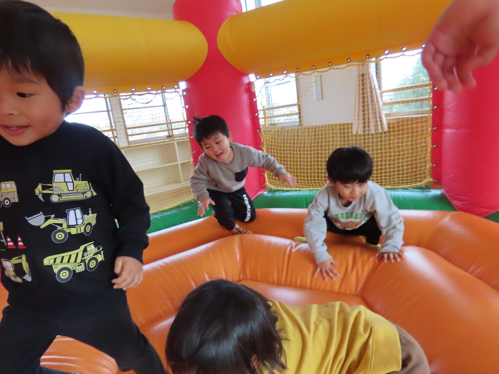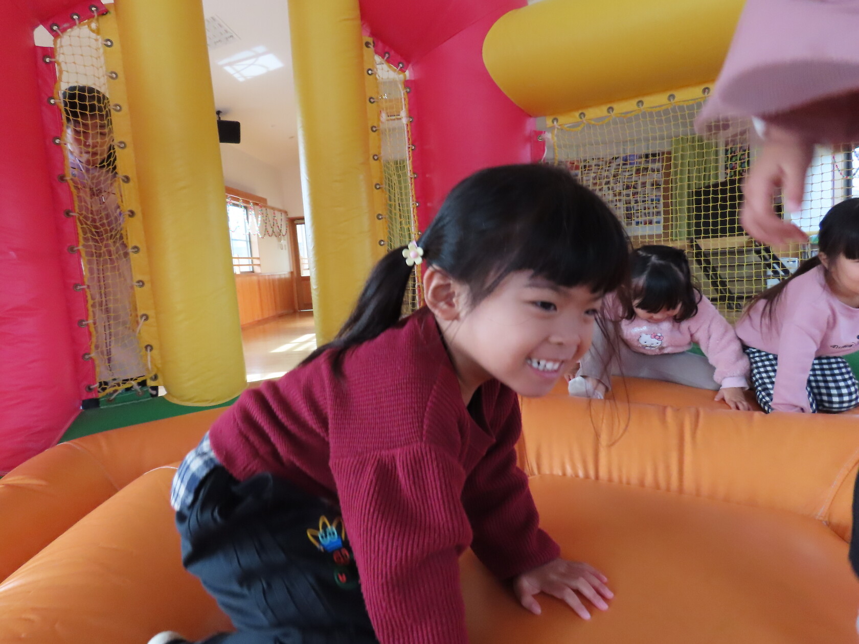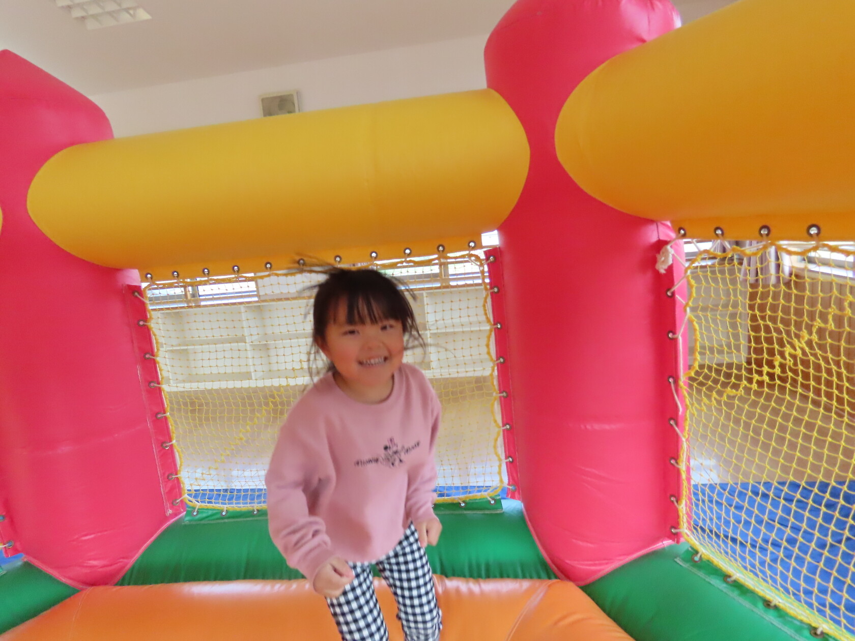 今日のできごと(すみれ) 公開済み: 2024年12月4日更新: 2024年12月4日 今日は、2階のホールで・・・。 エアーランドを楽しみました😁ホールに近づくと、エアーランドの空気を送り込む音が聞こえただけで「わー!やったー!トランポリン!!」と大歓声😆🎵 色んな表情を見せてくれました📸💕