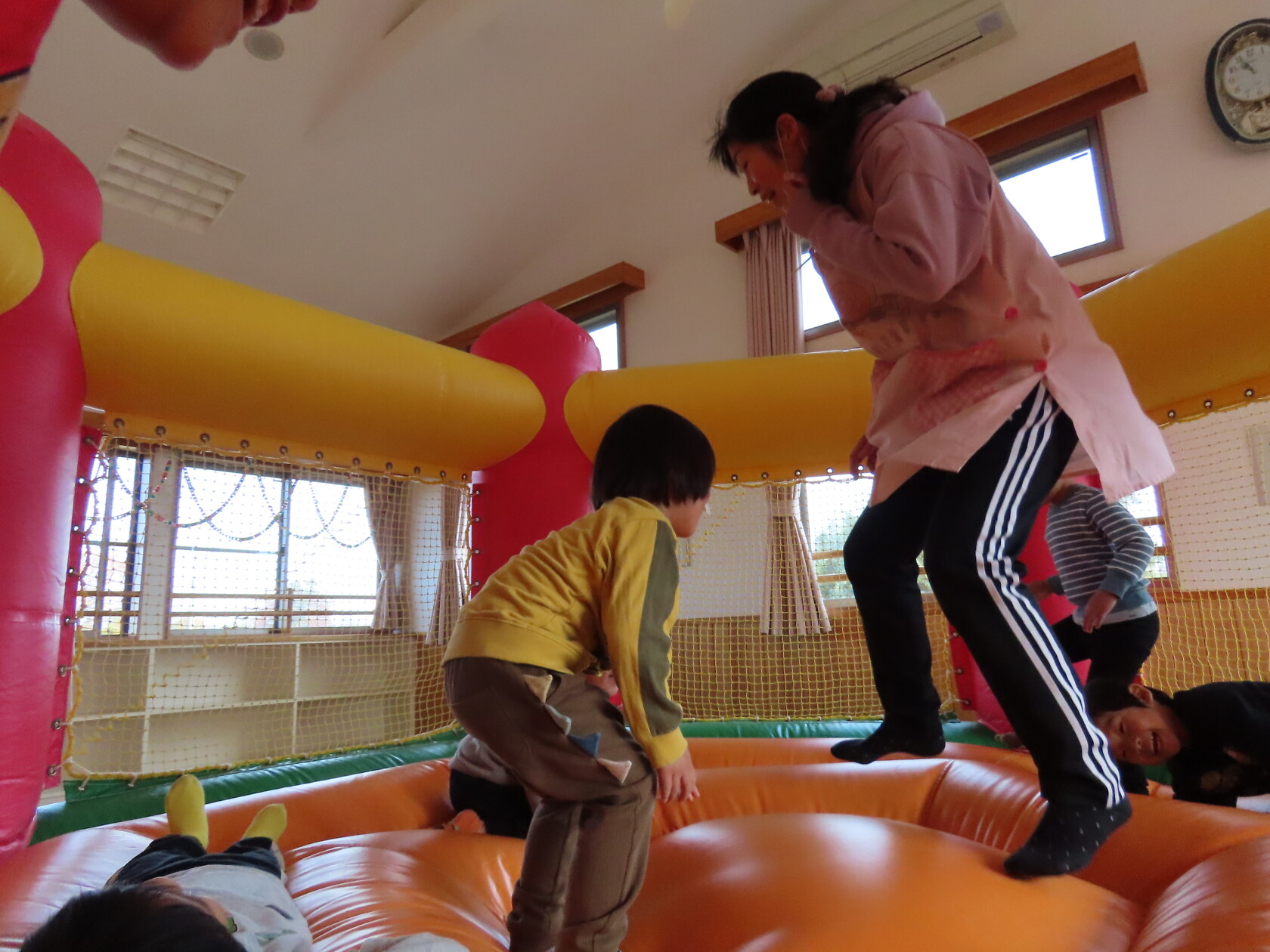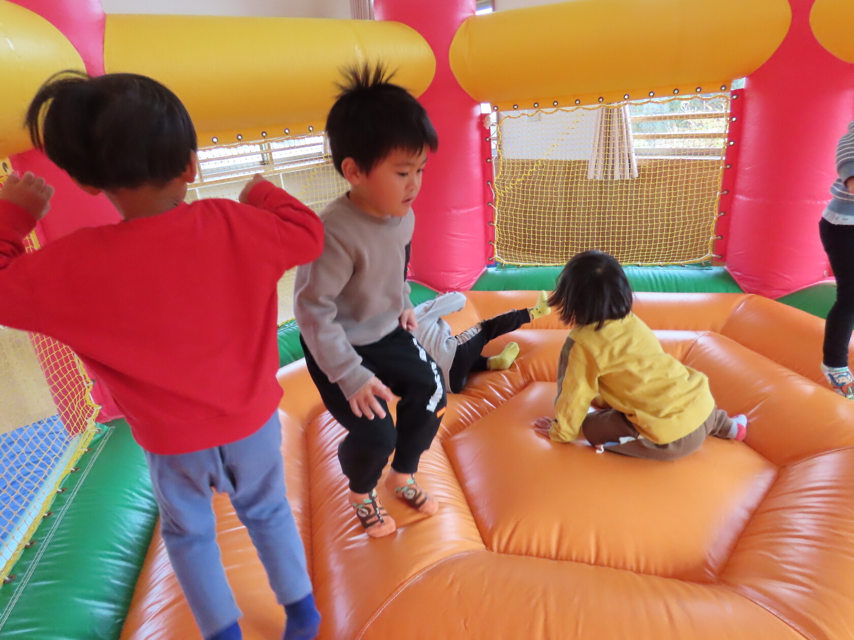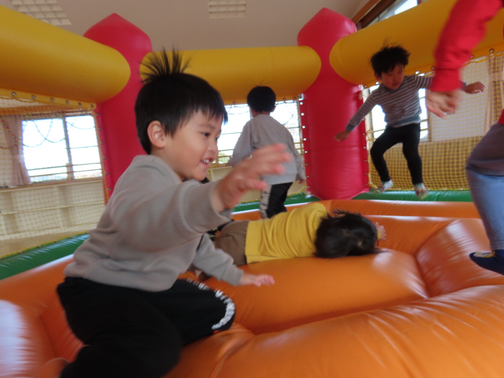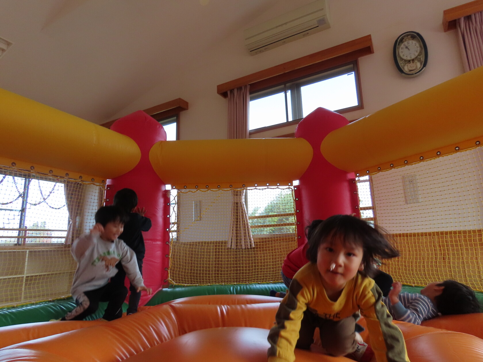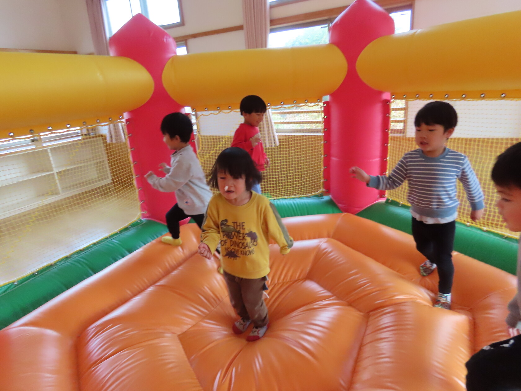 今日のできごと(すみれ) 公開済み: 2024年12月4日更新: 2024年12月4日 今日は、2階のホールで・・・。 エアーランドを楽しみました😁ホールに近づくと、エアーランドの空気を送り込む音が聞こえただけで「わー!やったー!トランポリン!!」と大歓声😆🎵 色んな表情を見せてくれました📸💕