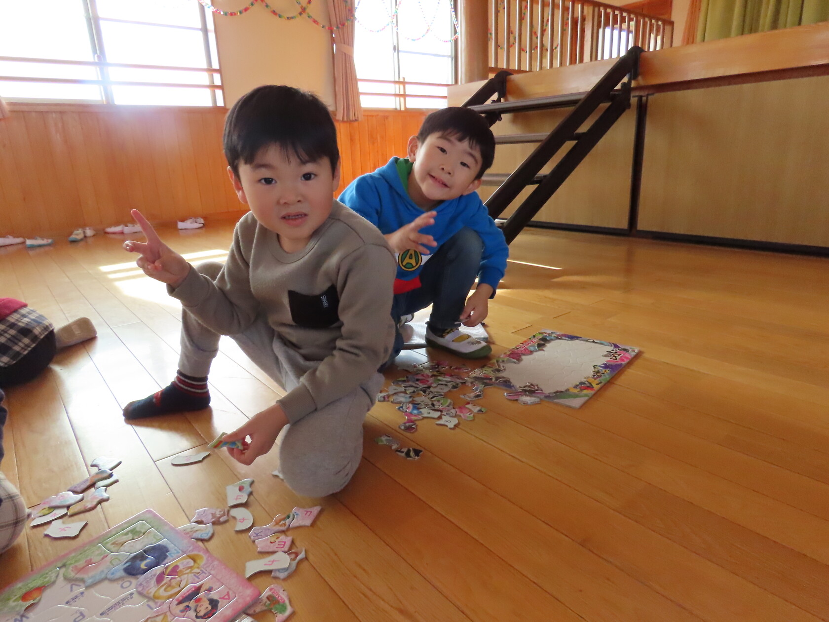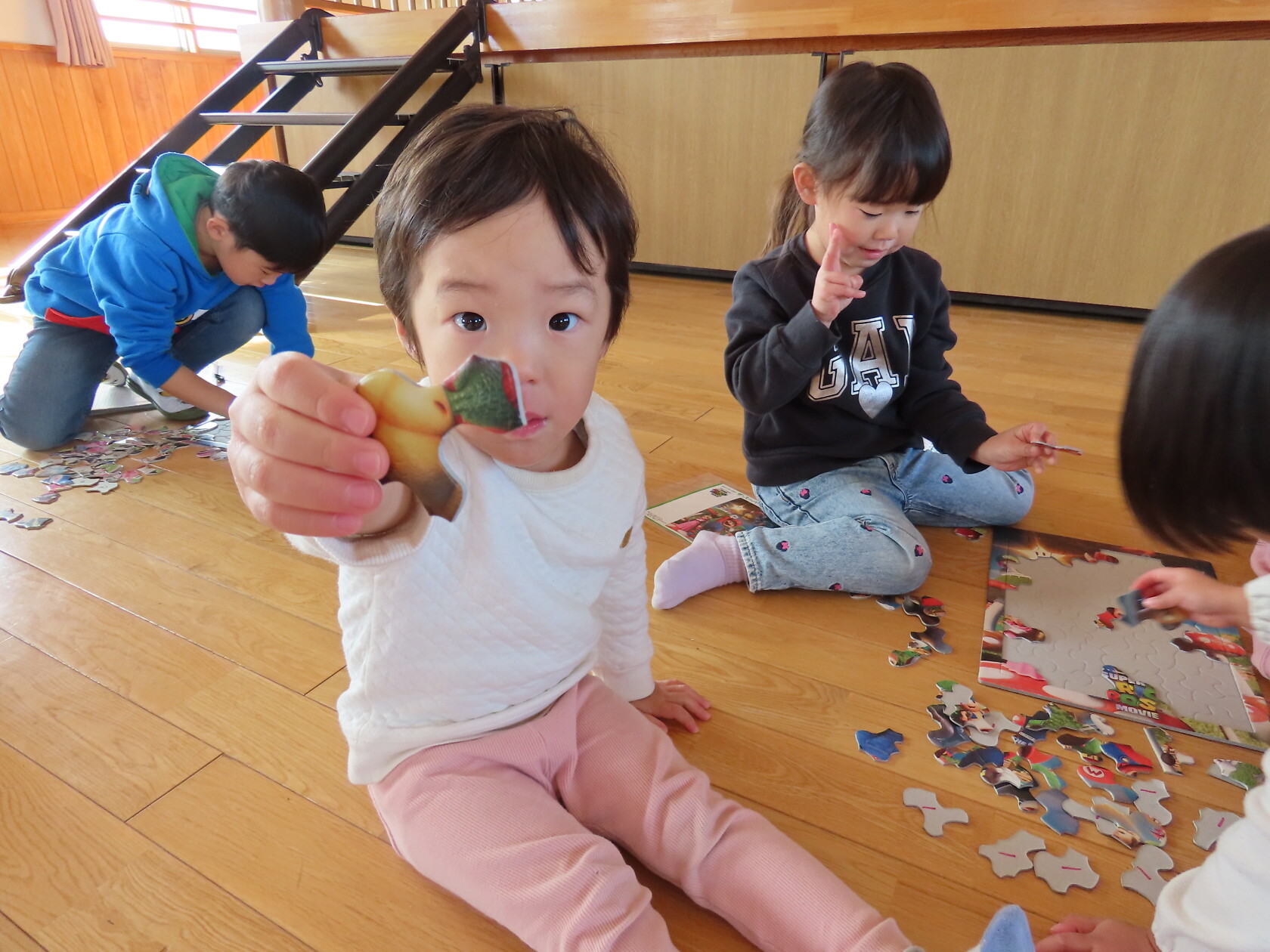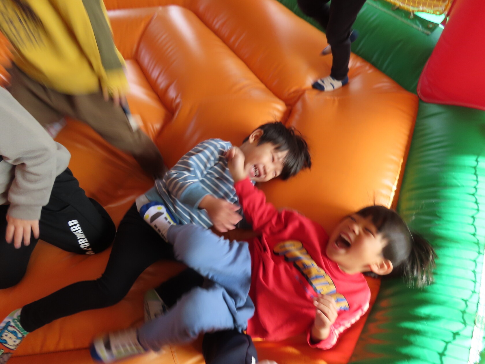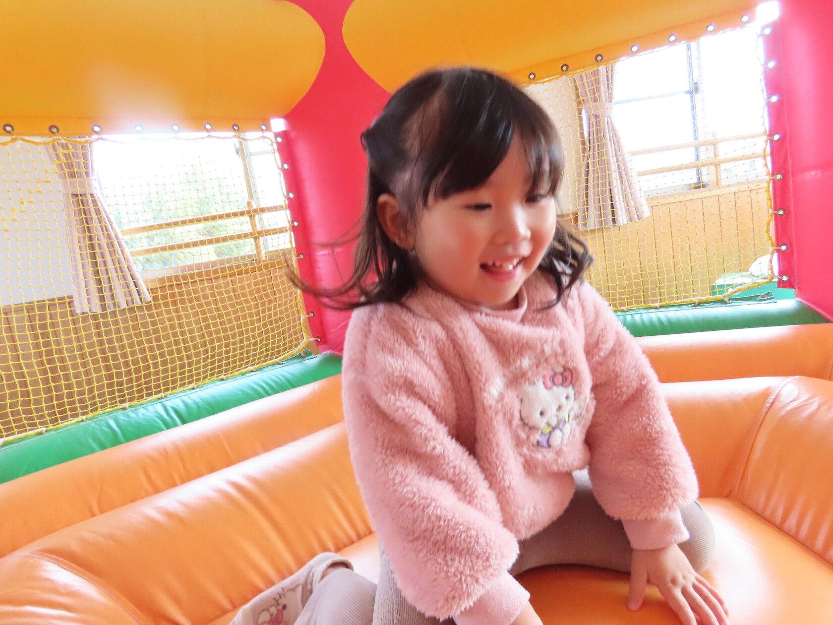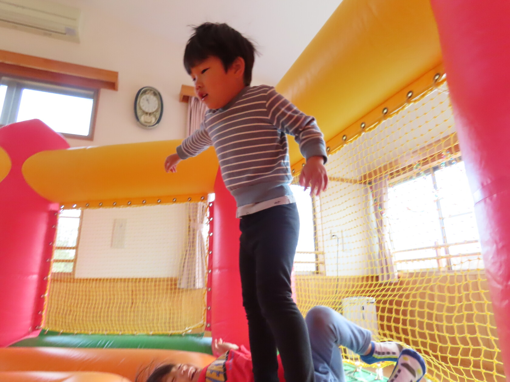 今日のできごと(すみれ) 公開済み: 2024年12月4日更新: 2024年12月4日 今日は、2階のホールで・・・。 エアーランドを楽しみました😁ホールに近づくと、エアーランドの空気を送り込む音が聞こえただけで「わー!やったー!トランポリン!!」と大歓声😆🎵 色んな表情を見せてくれました📸💕