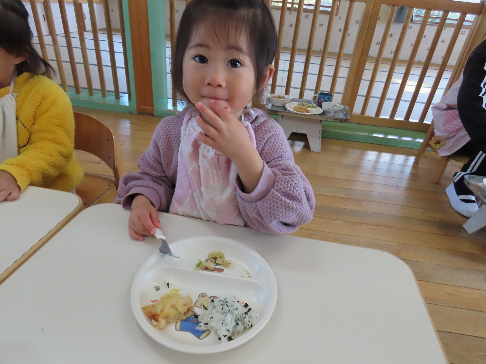 今日のできごと(さくら) 公開済み: 2024年12月4日更新: 2024年12月4日 今日は、午前中のおやつと給食の時間をパシャリ📸 おせんべいの音がパリパリ鳴って、美味しそうなにおいがしていました😊 みんなよく噛んで食べています😋 給食では、自分でしっかりフォークを持って、苦手な子もいる野菜から食べ始めています🎵 完食・おかわりをする子が増え、毎日みんなで美味しく食べています😋