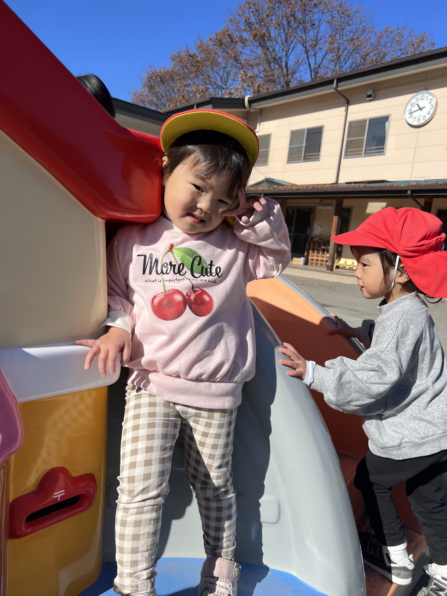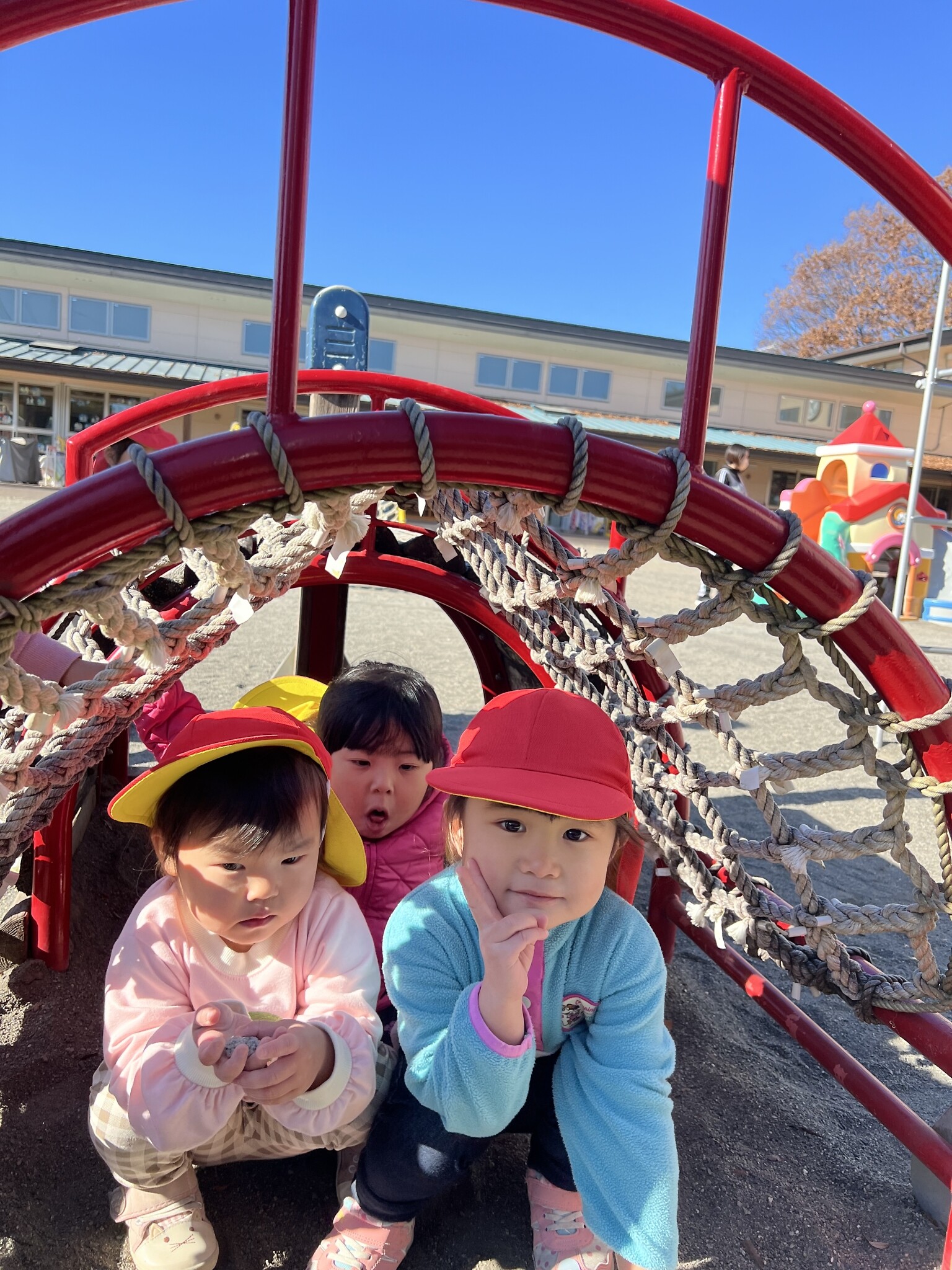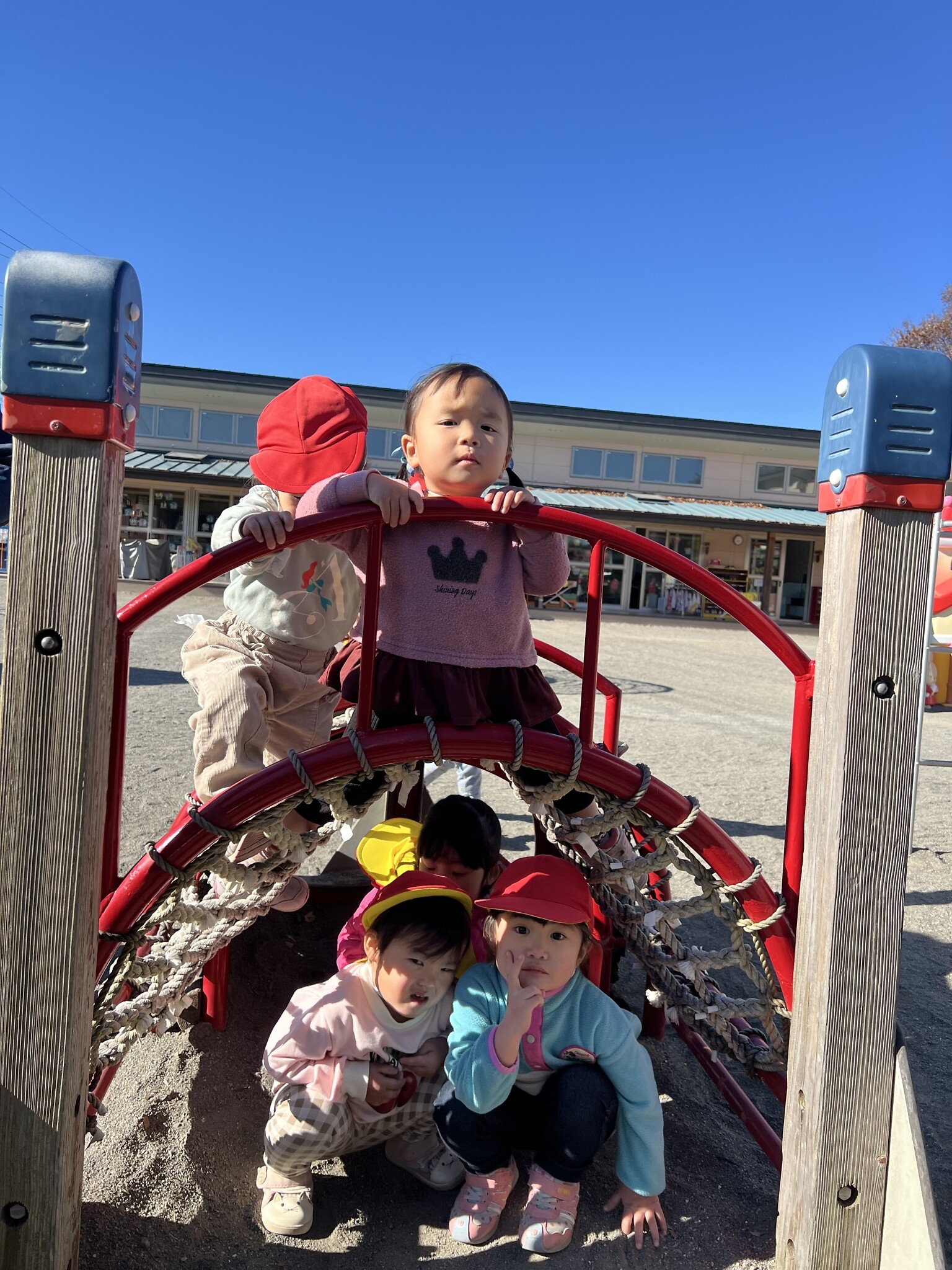 今日のできごと(ちゅうりっぷ組) 公開済み: 2024年12月10日更新: 2024年12月10日 お天気が良かったので、外で遊びました。 たいこ橋を渡ったり、ローラー滑り台をしたり、 “むっくりくまさん”の鬼ごっこをしたり体いっぱい動かして 楽しく遊びました😆