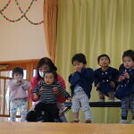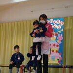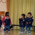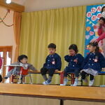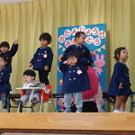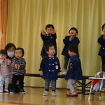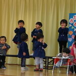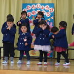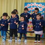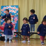 今月より本園のさくら組とちゅうりっぷ組は、合同で発表することになりました。小規模も本園も2歳児さんが手本となり、小さい子も真似をして、元気いっぱい発表することが出来ました!!
