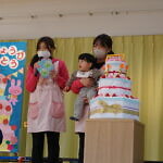 お誕生月のお友達は、ちゅうりっぷ組3人、小規模1人、計4人でした。