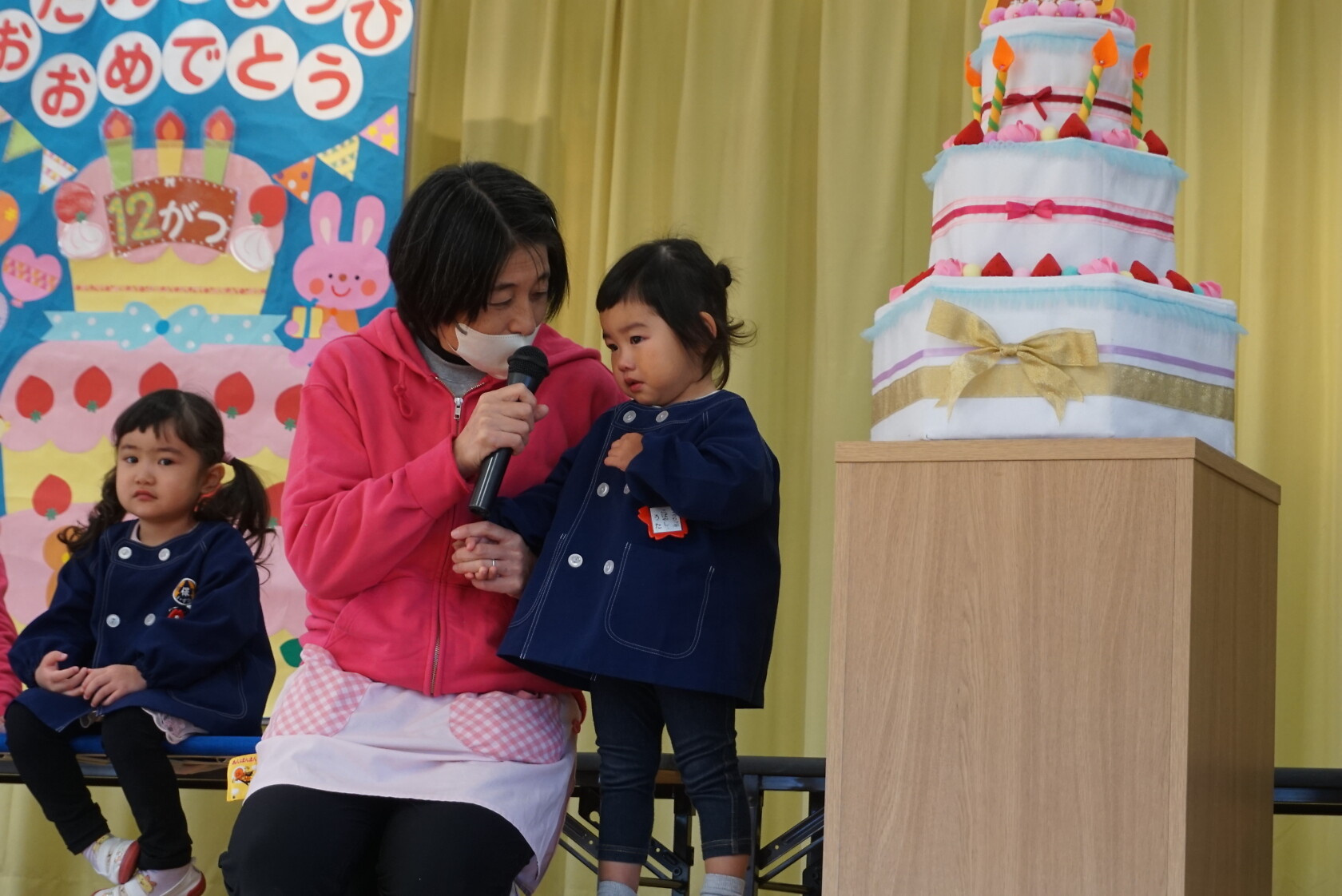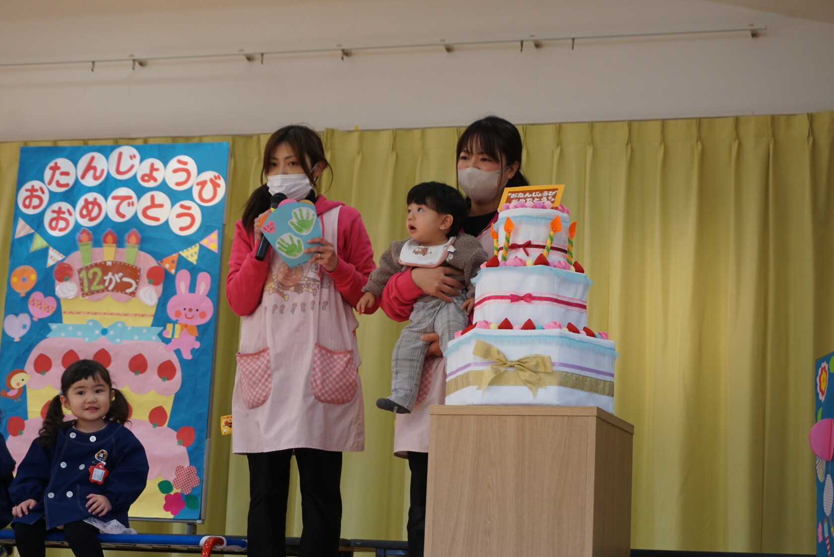 お誕生月のお友達は、ちゅうりっぷ組3人、小規模1人、計4人でした。