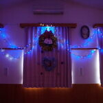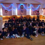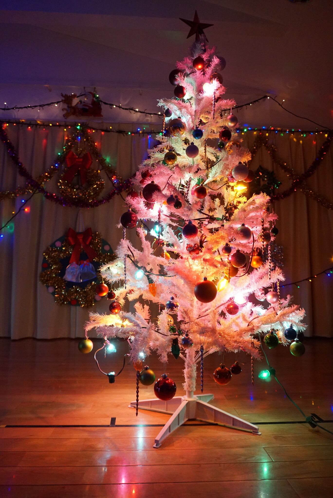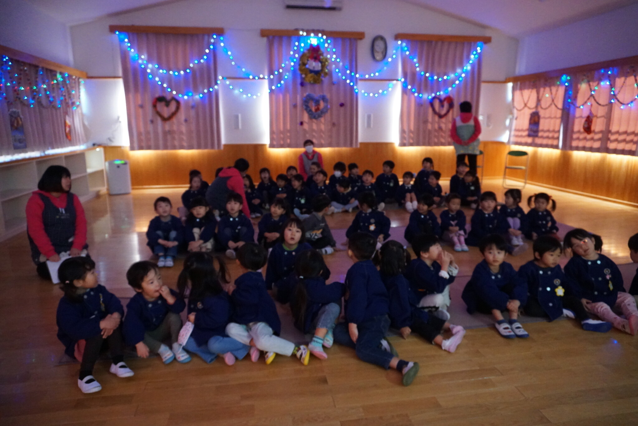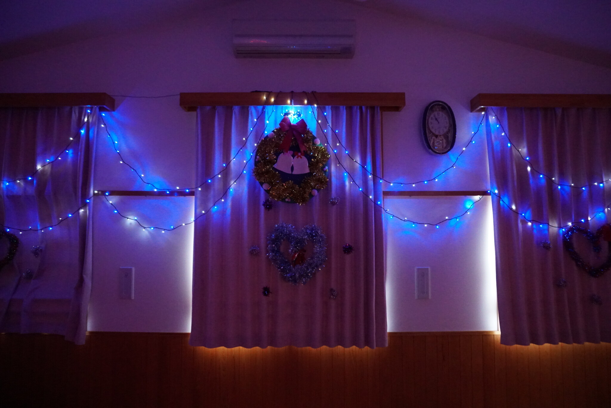 ホールの入り口がカーテンで閉まっているのを見て、ワクワクした気持ちで入るとキラキラのイルミネーションに「わぁー!!」「すごーい!!」と大歓声があがりました。