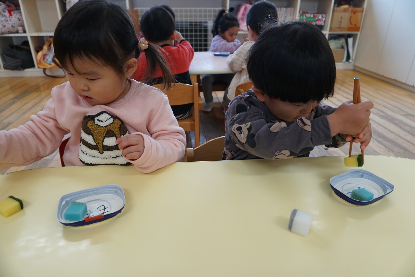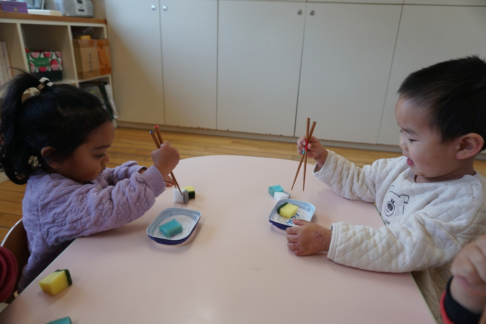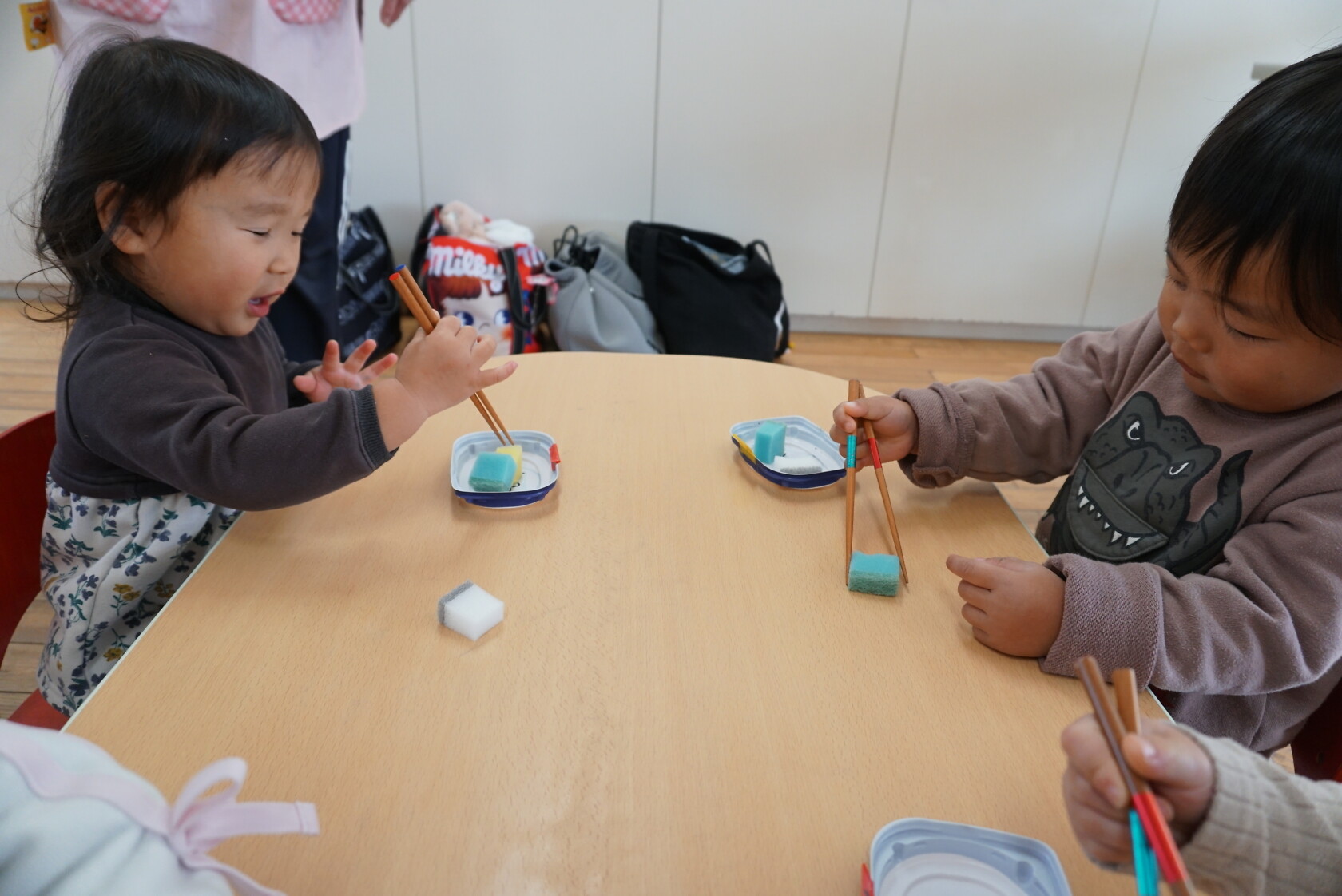 今日のできごと(ちゅうりっぷ・小規模ちゅうりっぷ) 公開済み: 2024年12月25日更新: 2025年8月7日 今日は本園のちゅうりっぷさんと、小規模のちゅうりっぷさん合同でお箸の練習をしました! 先週から始まったお箸の練習ですが、毎日少しずつ練習を重ね、今はスポンジをつかめるように頑張っているとことです💪 年末年始のお休み中、ぜひお箸での食事にチャレンジしてみて下さいね✨