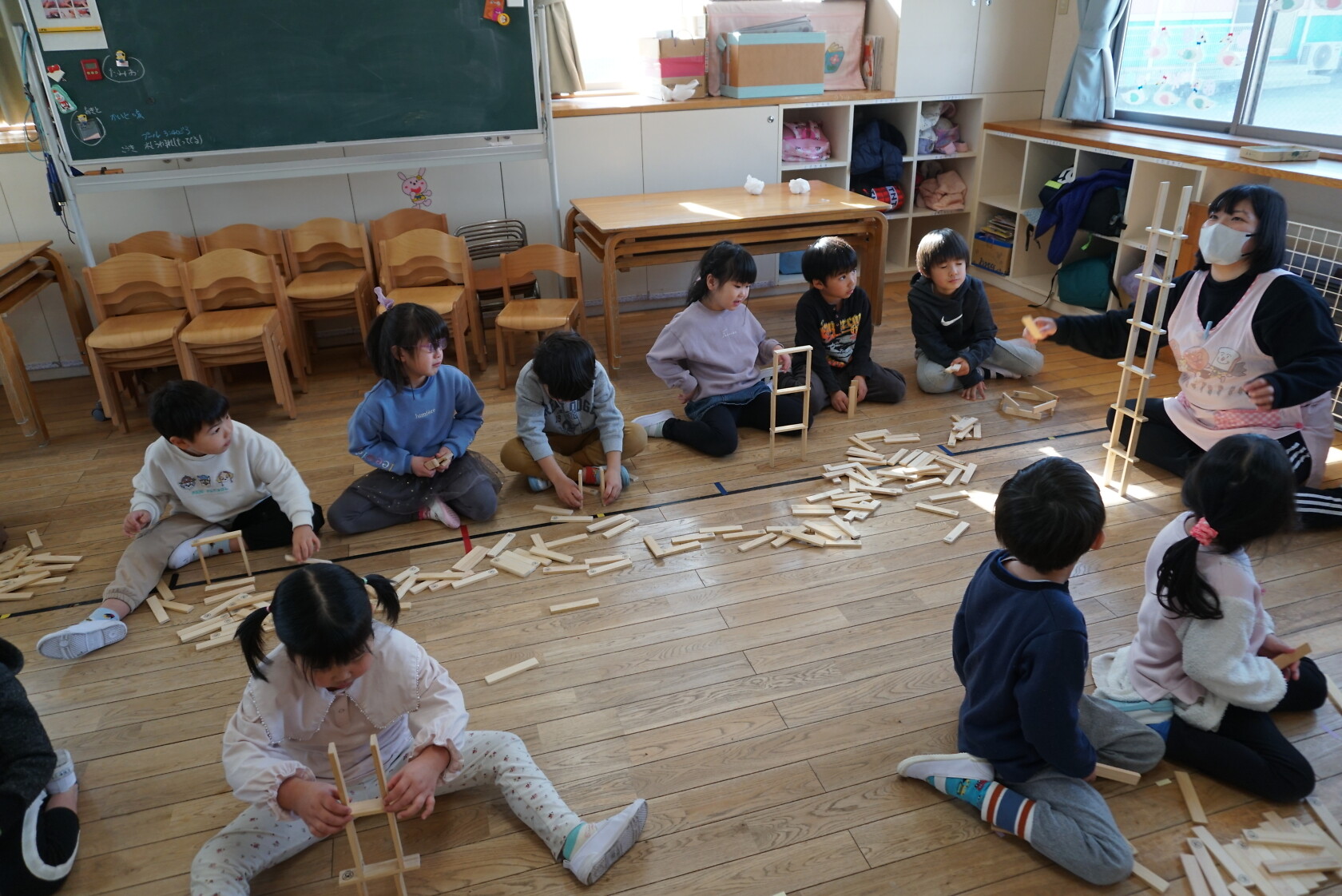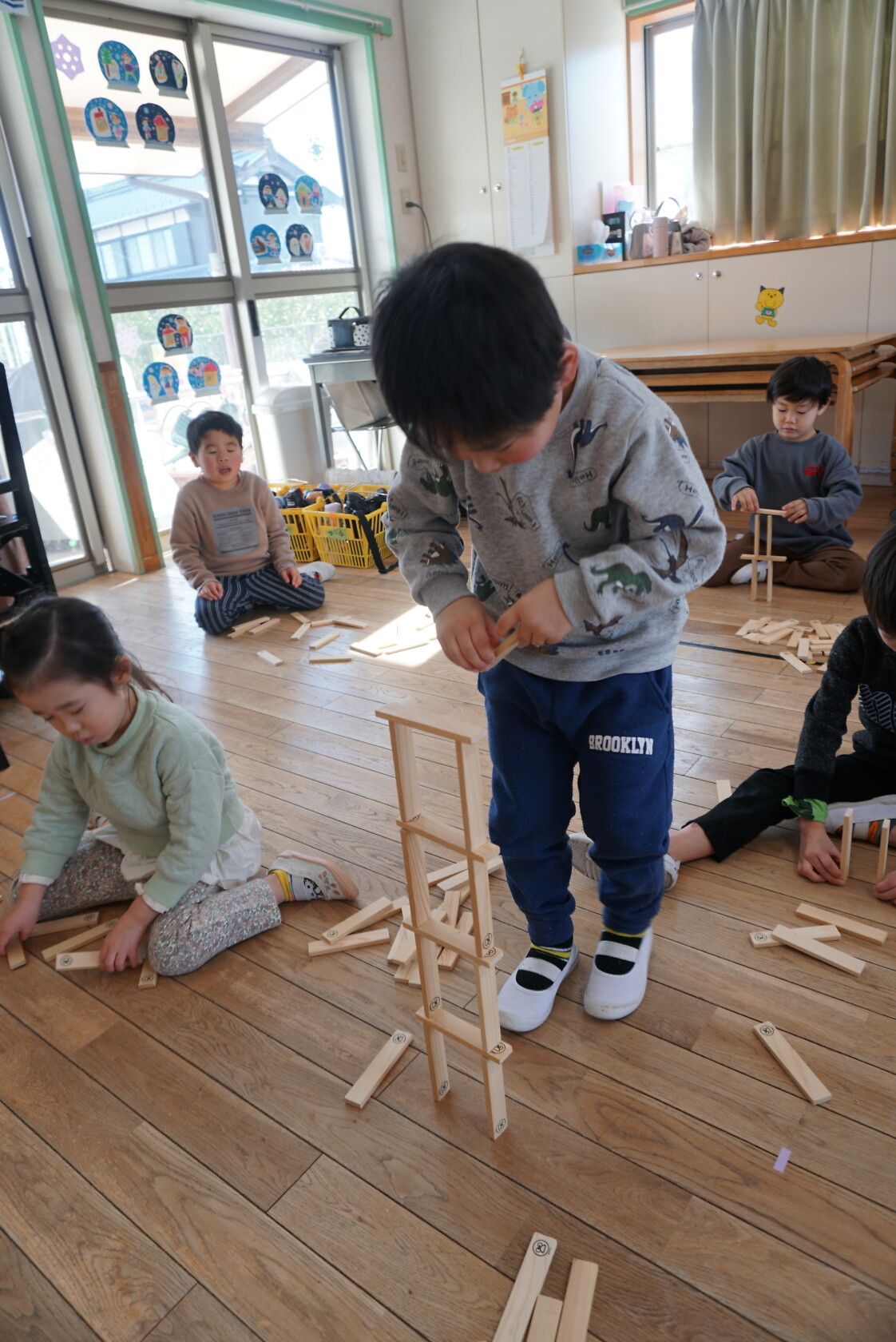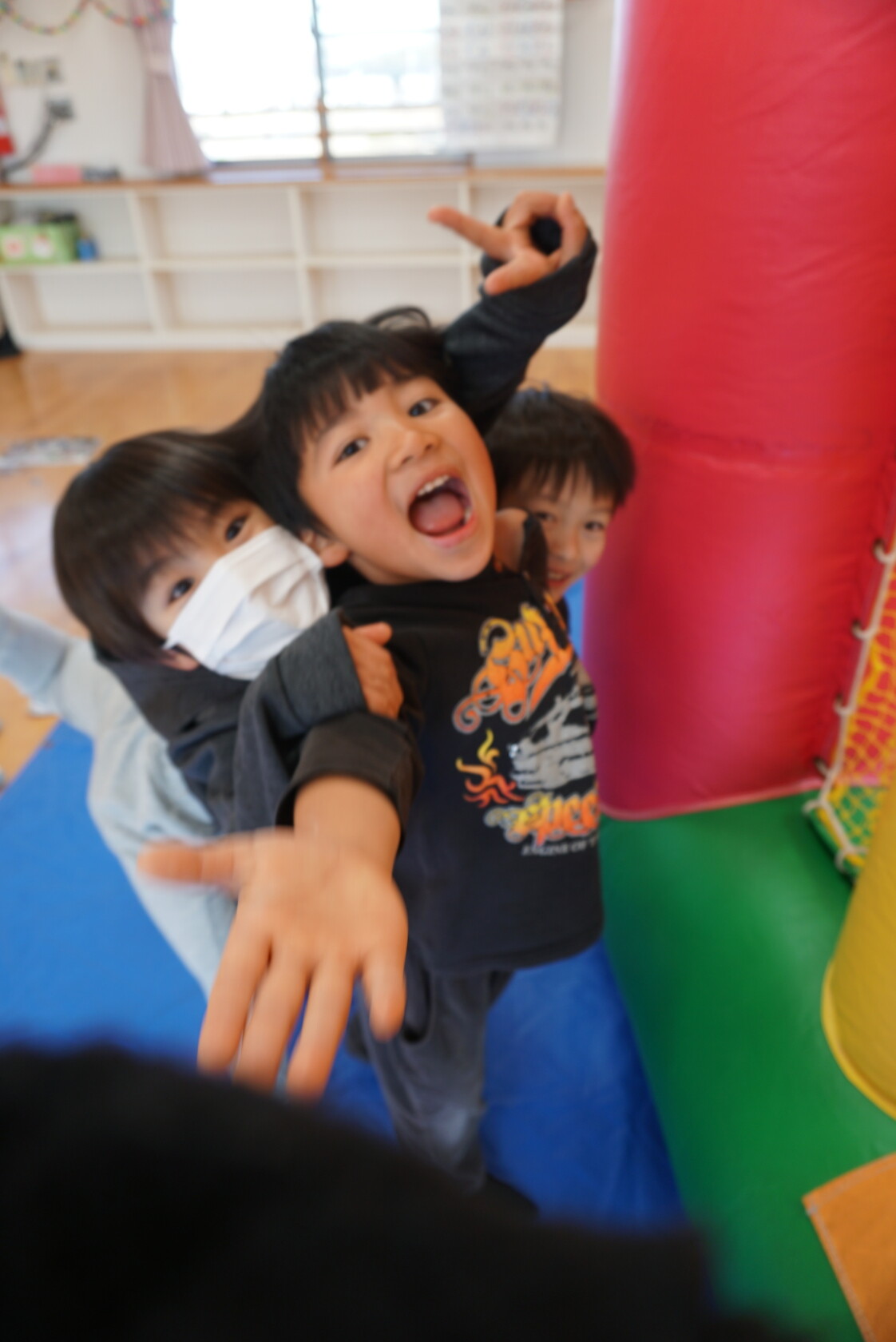 今日のできごと(ひまわり) 公開済み: 2025年1月20日更新: 2025年1月20日 今日はエアーランドとカプラであそびました!!😁 毎月恒例のエアーランドでは慣れてきた子達がさらにダイナミックに遊ぶようになりました!! カプラでは自分達の身長を超えるように組み立てたりと知恵をふりしぼり頑張っていました😁 どうやって自分の身長よりもたかくしたのか是非、聞いてみて下さいね♪ さいごはみんなでパシャリッ📸