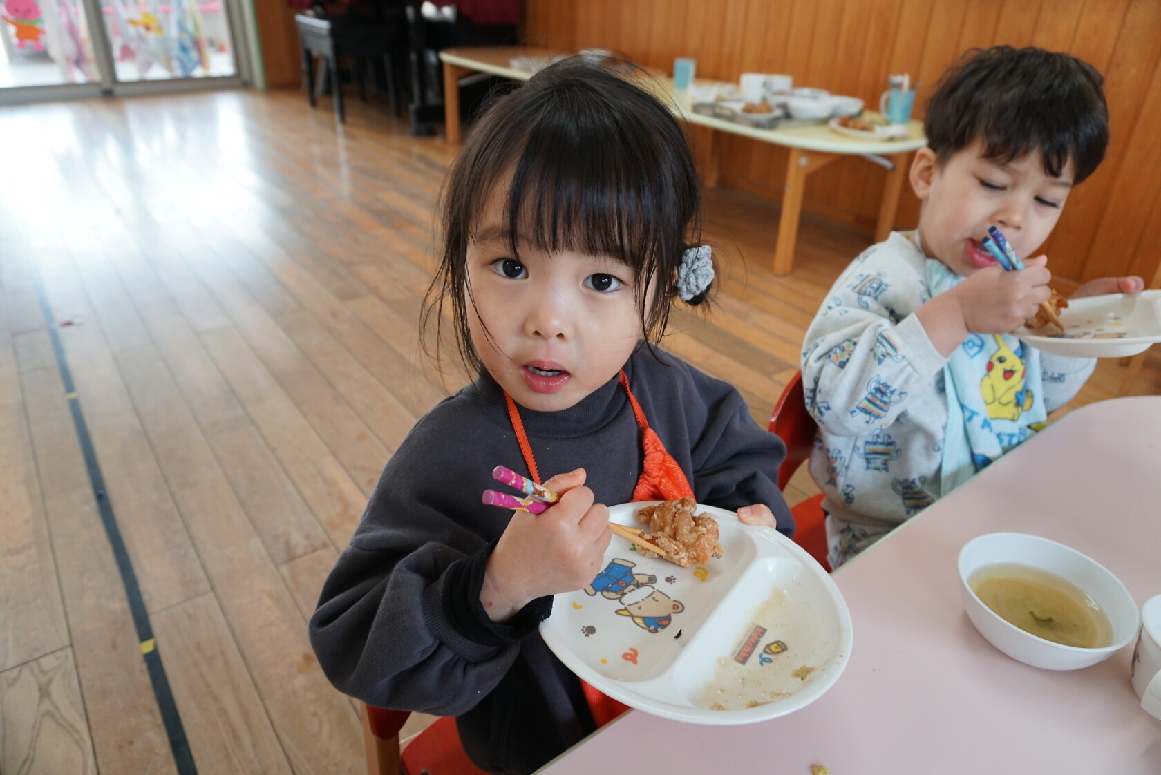 今日のメニューはみんなが大好きなから揚げとひじきご飯!
