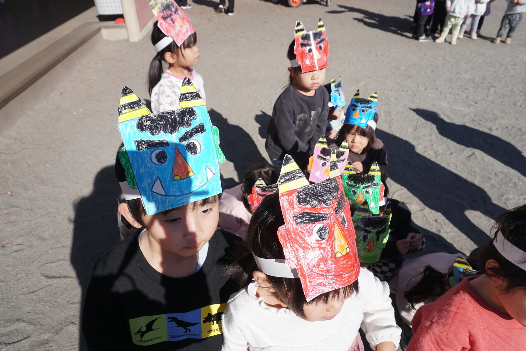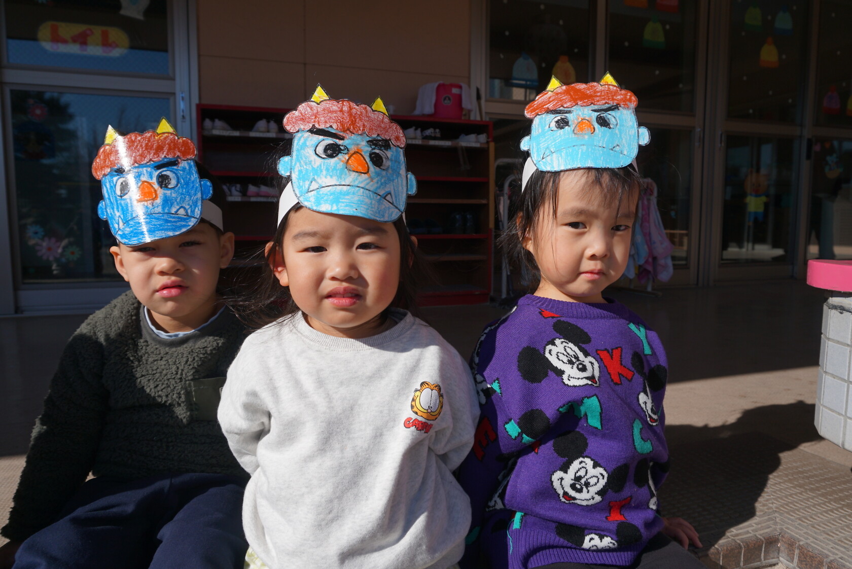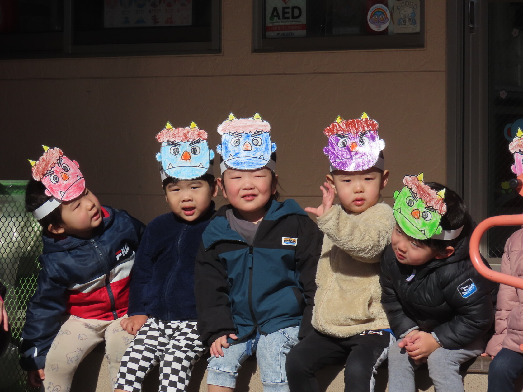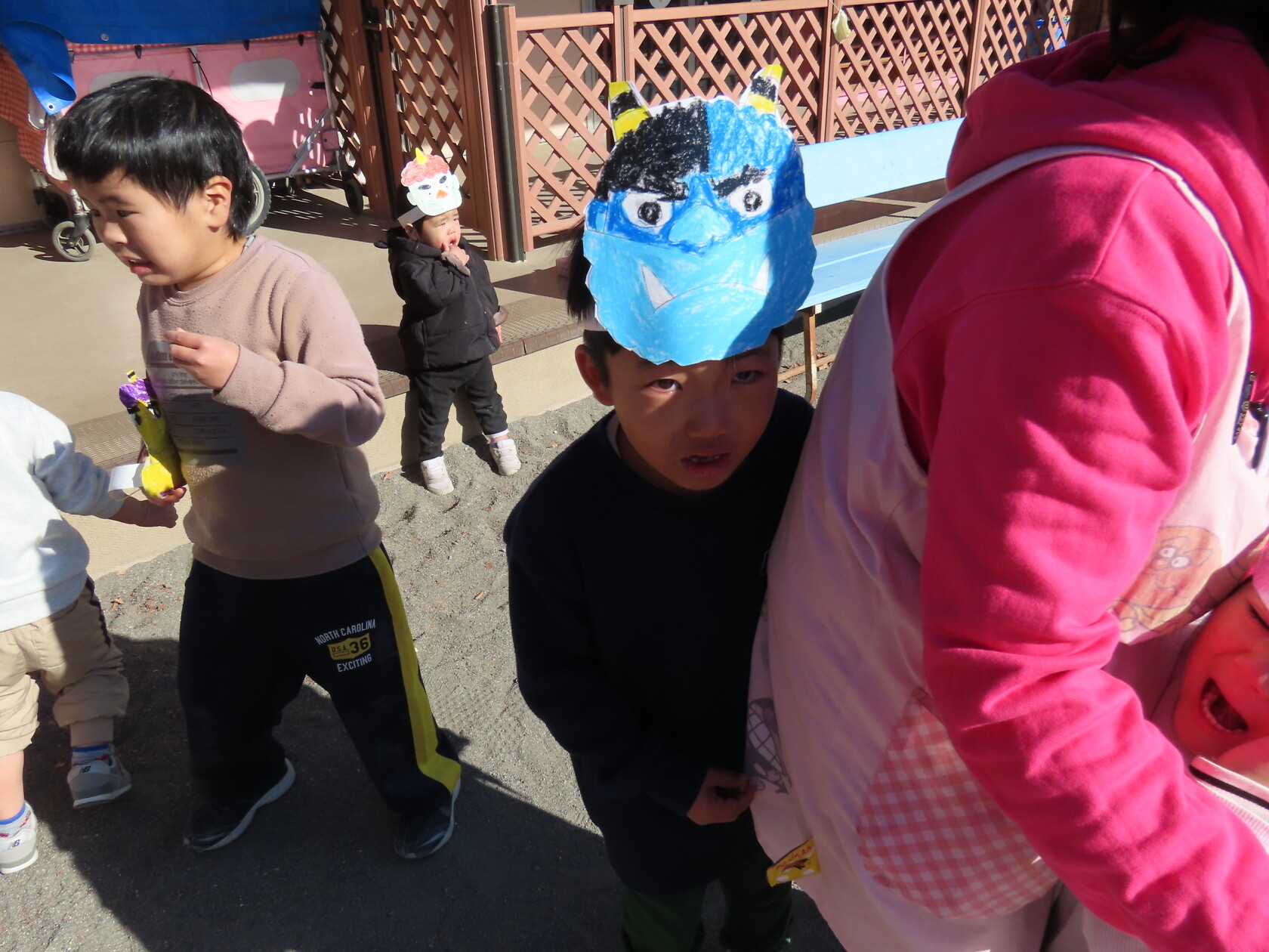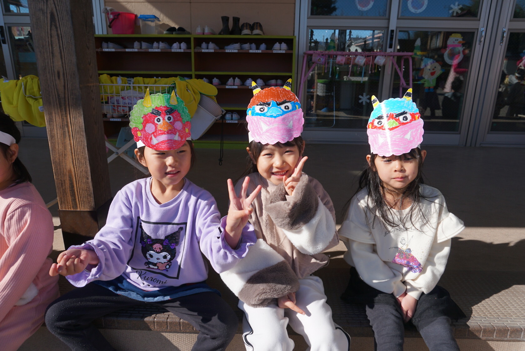 病気や悪いものとされる怖い鬼に無病息災をねがって豆をなげました!!