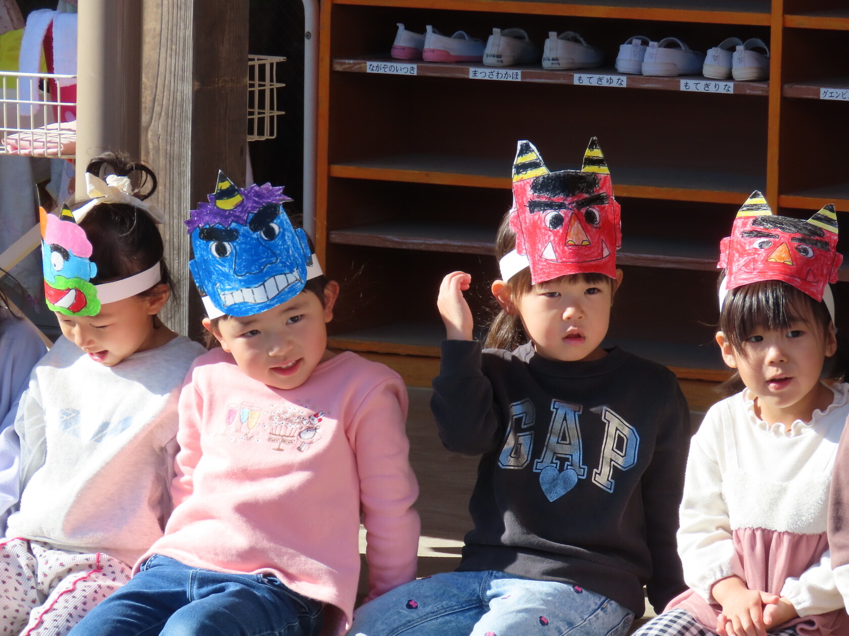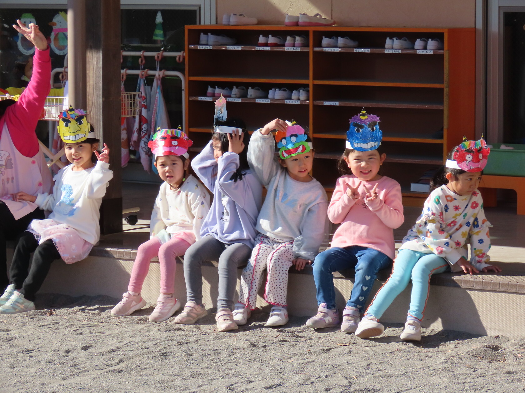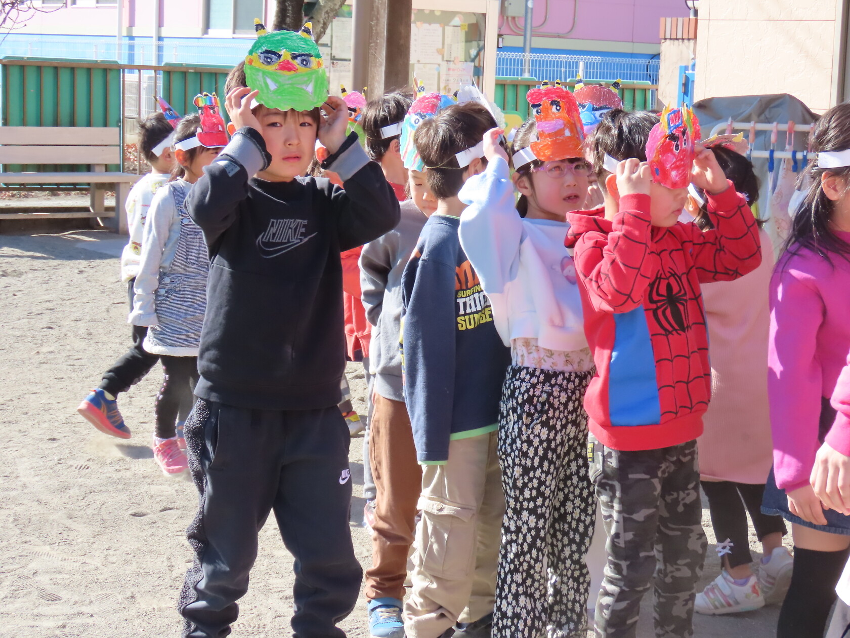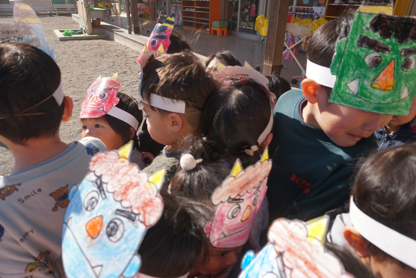 病気や悪いものとされる怖い鬼に無病息災をねがって豆をなげました!!