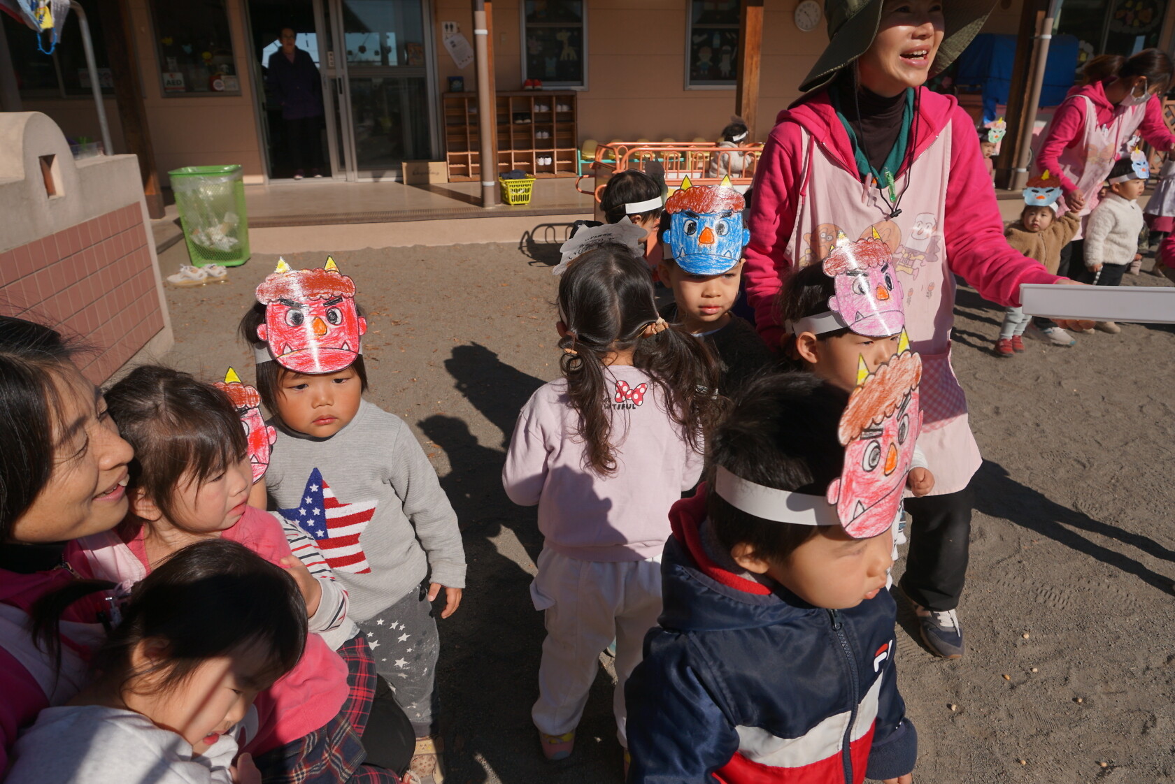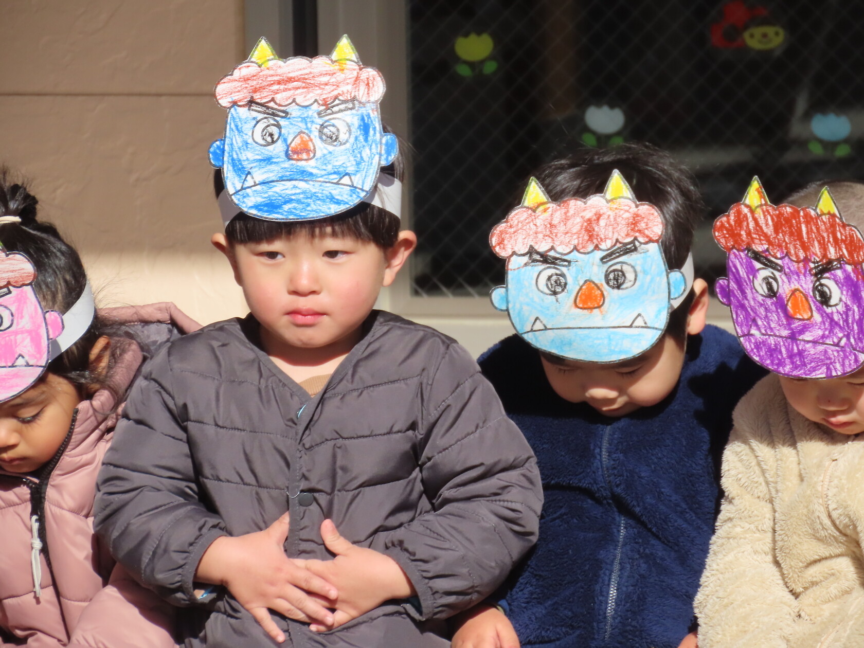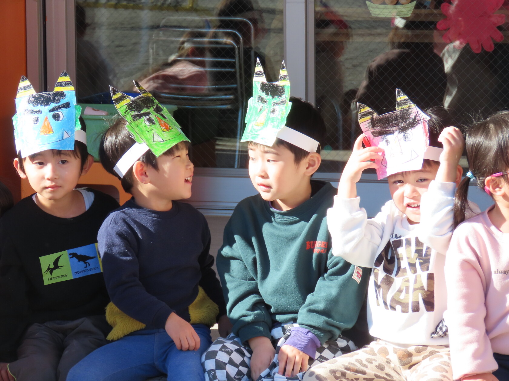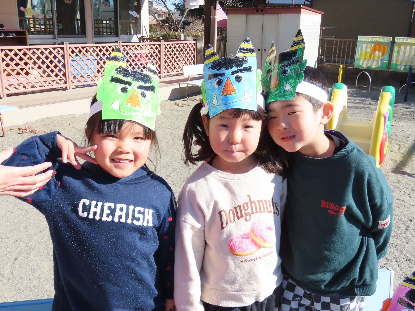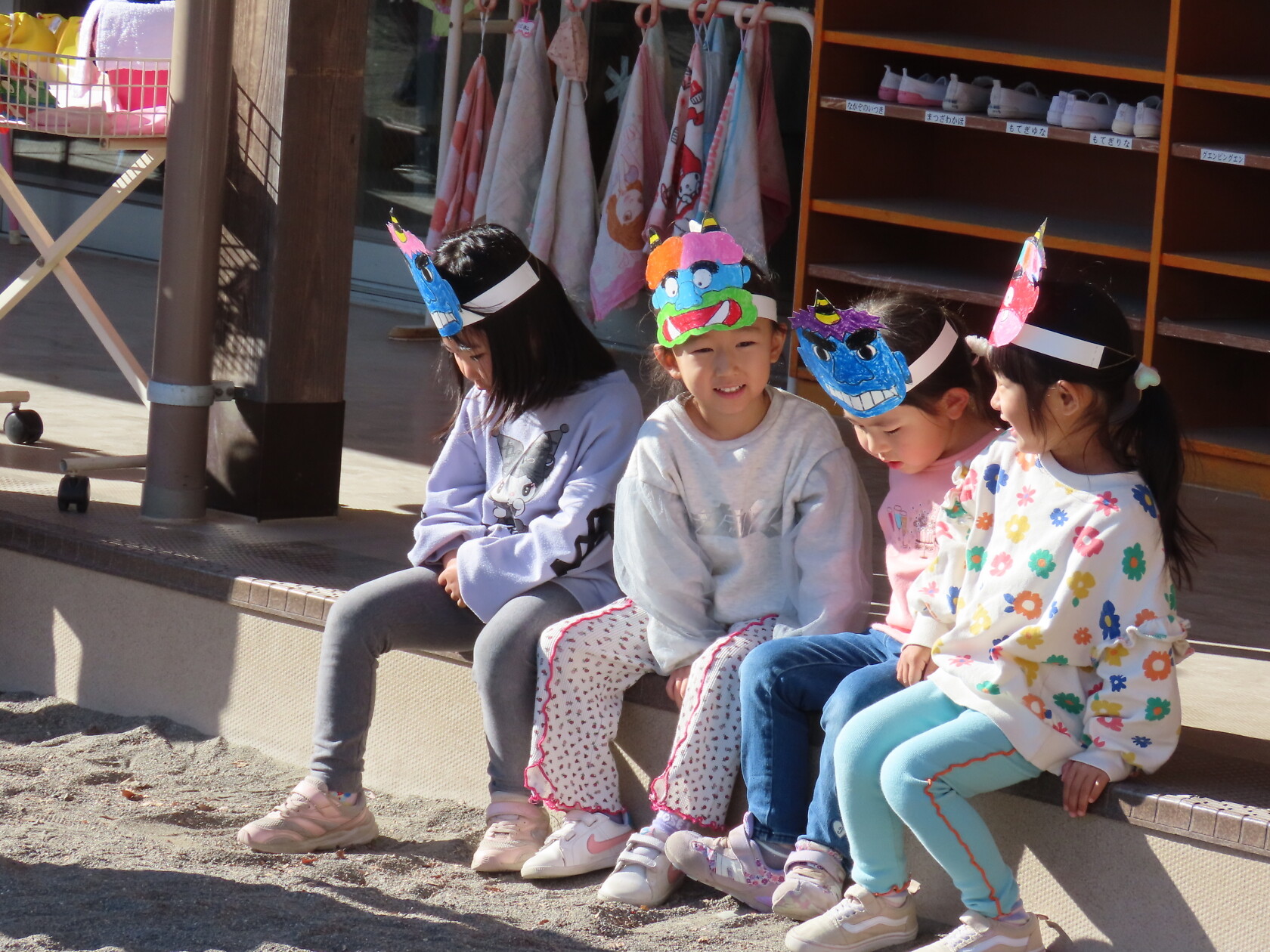 病気や悪いものとされる怖い鬼に無病息災をねがって豆をなげました!!