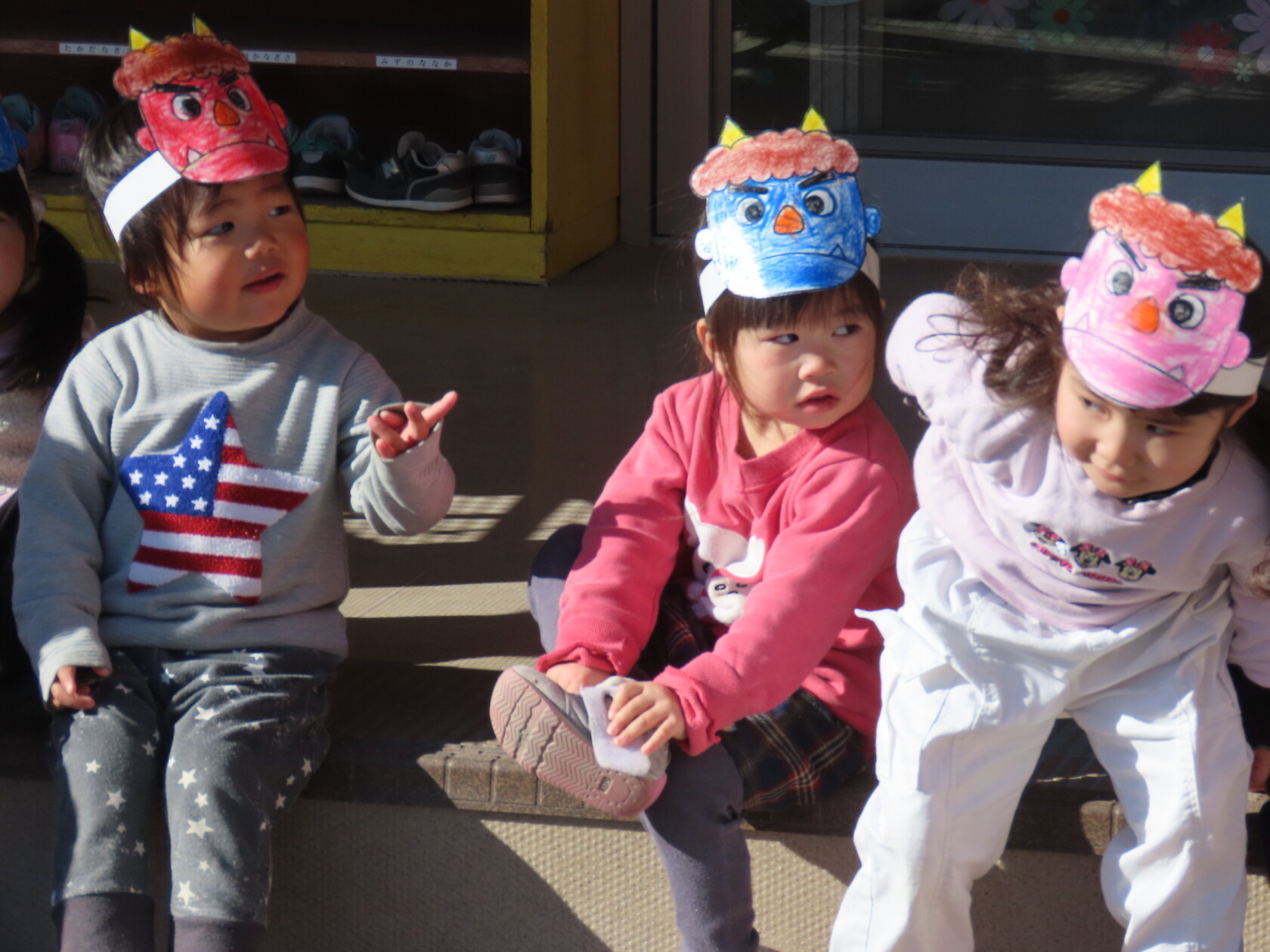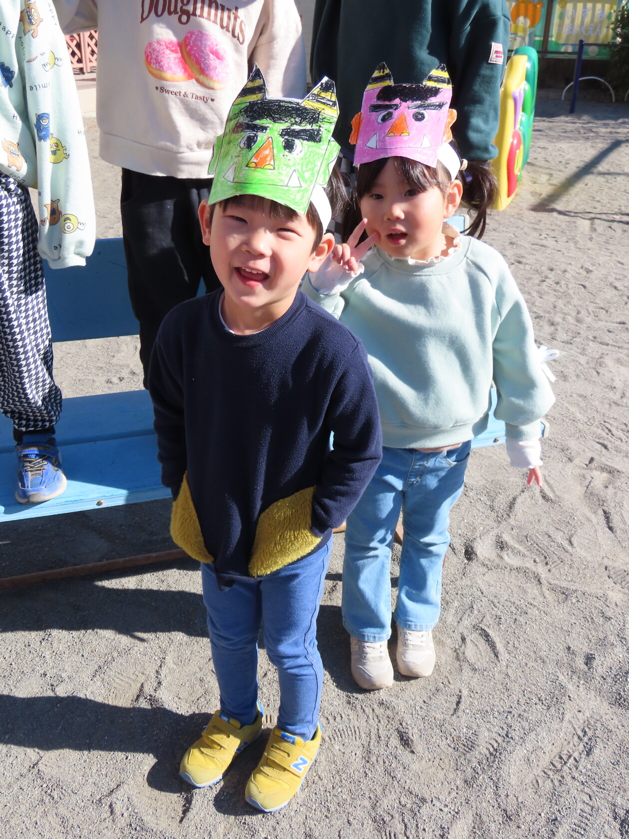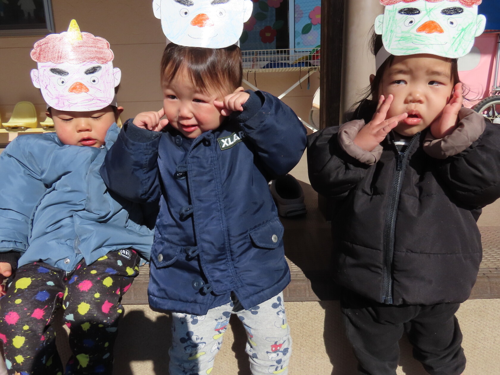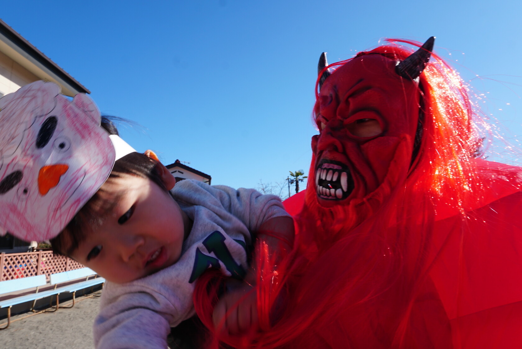 病気や悪いものとされる怖い鬼に無病息災をねがって豆をなげました!!