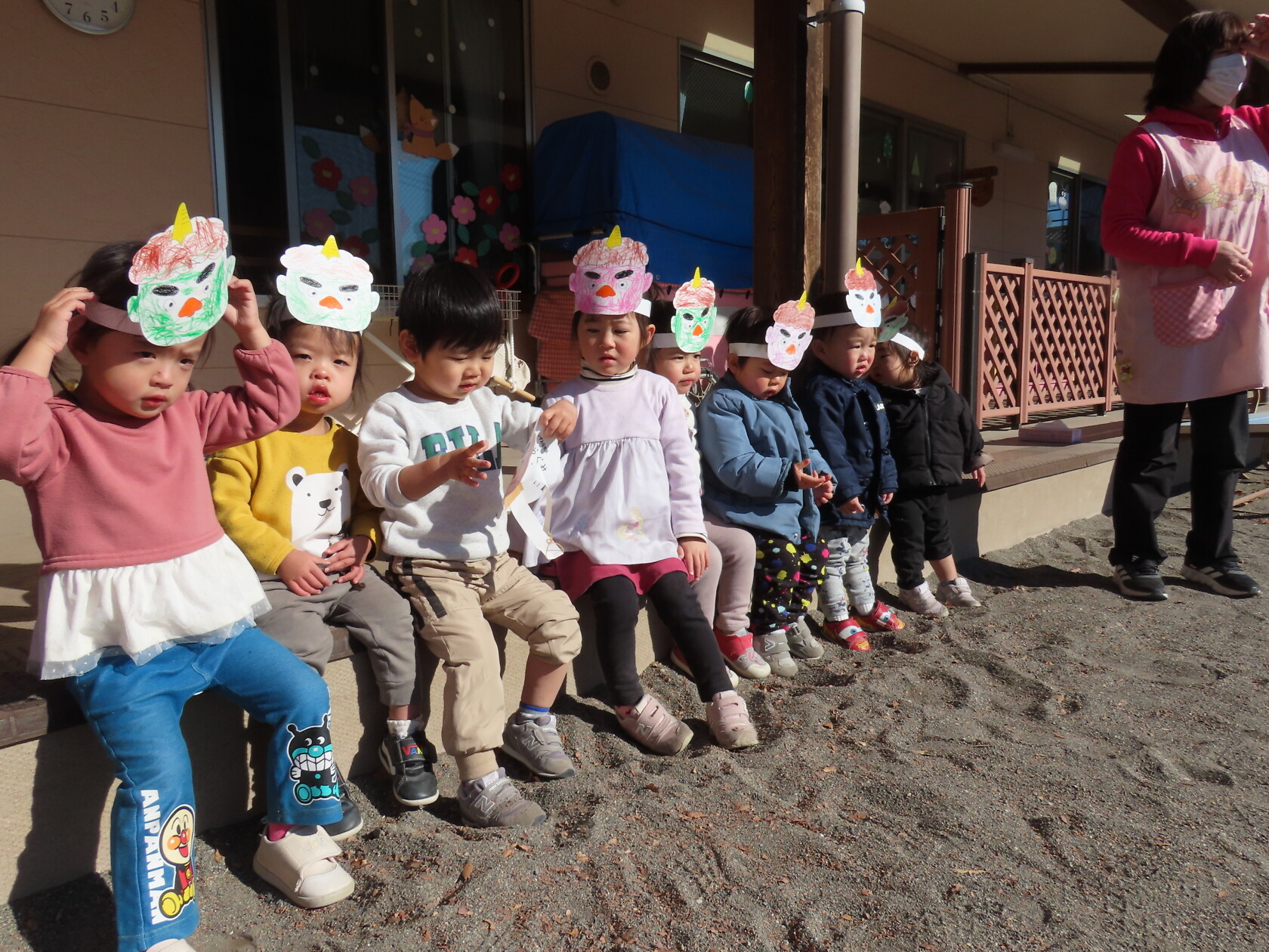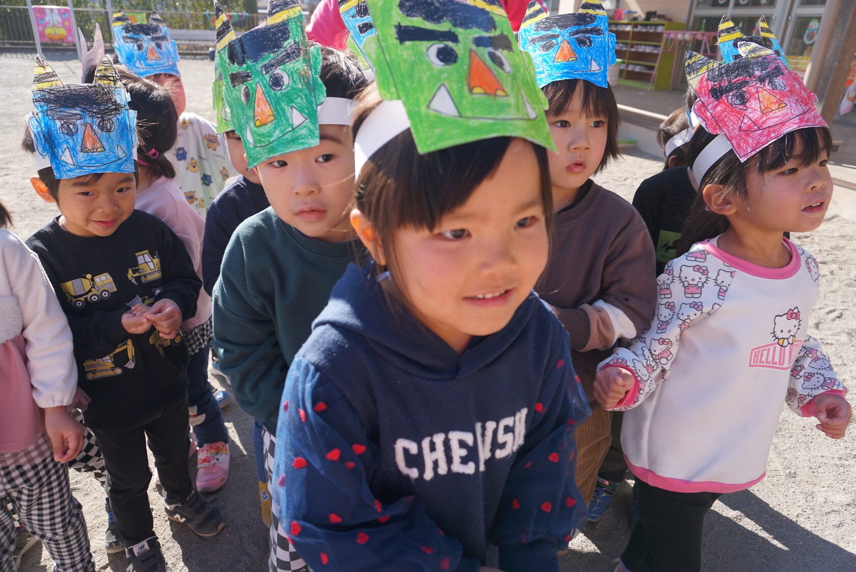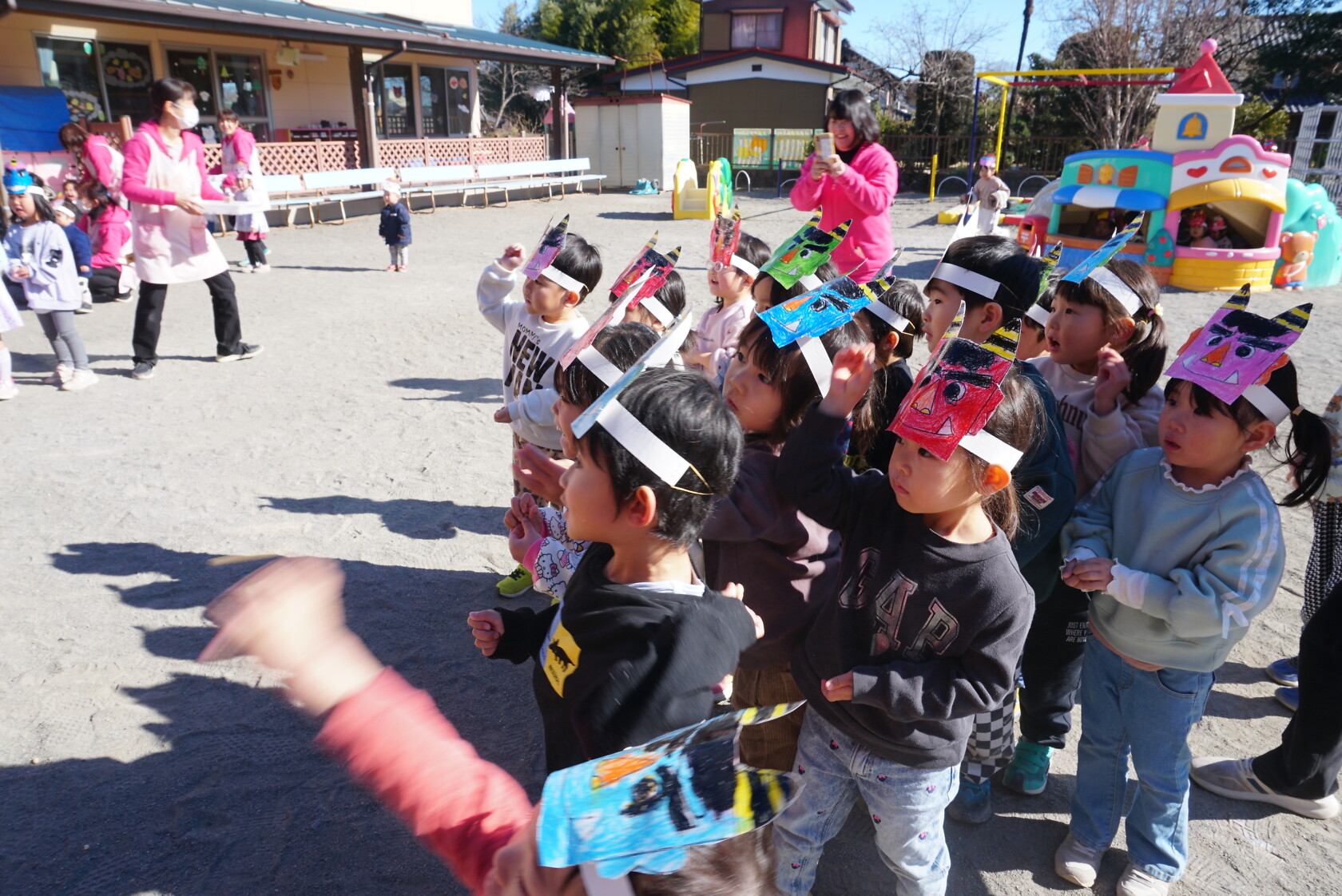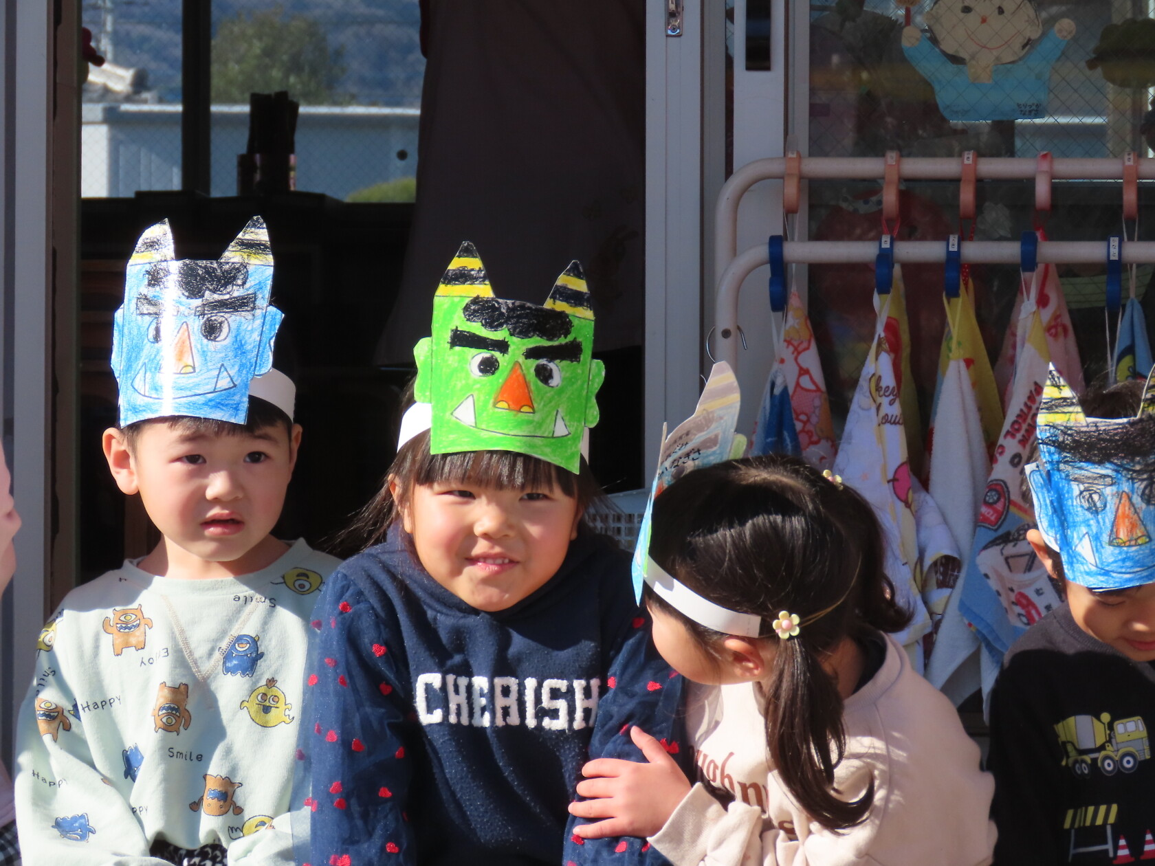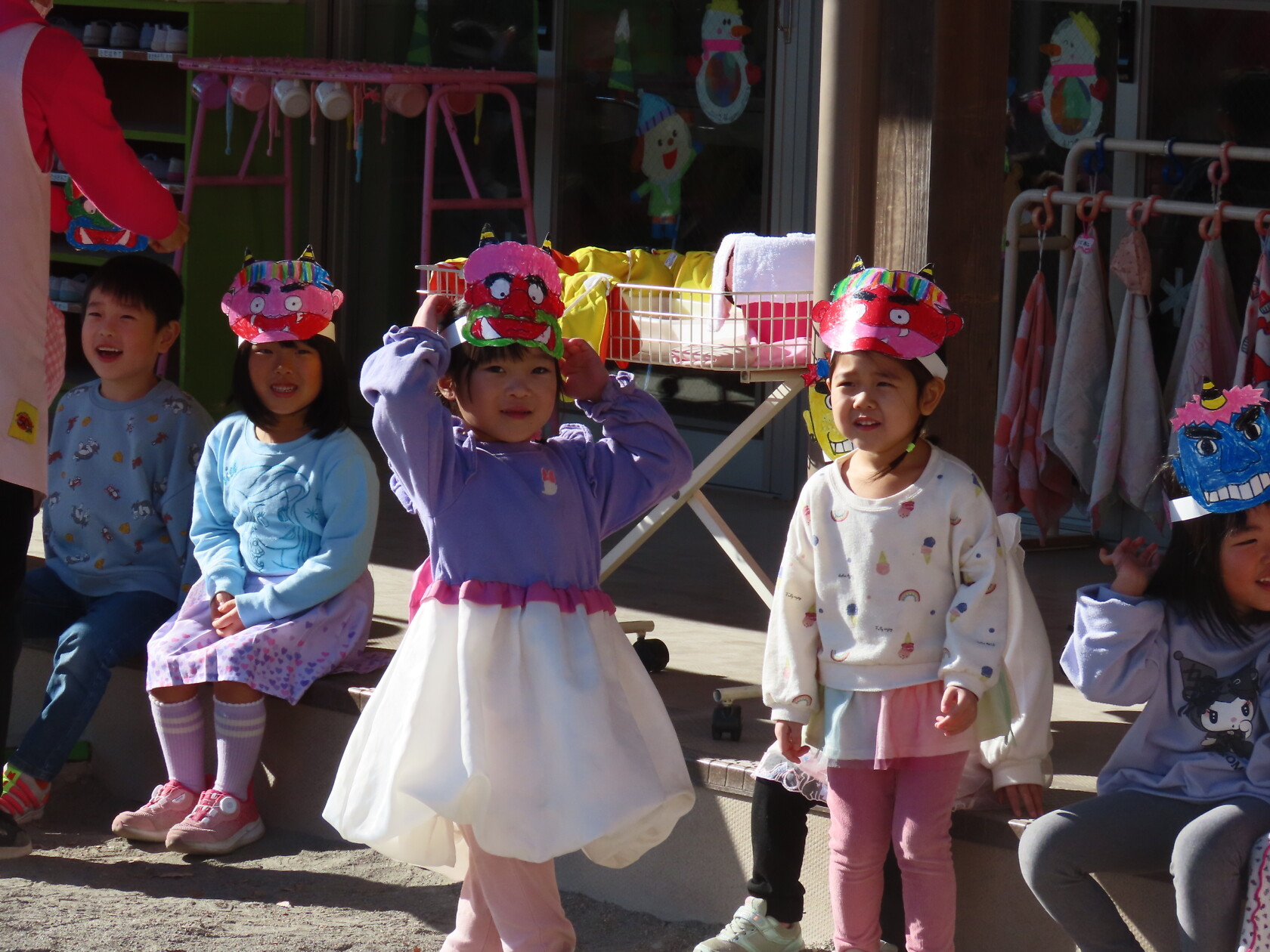 病気や悪いものとされる怖い鬼に無病息災をねがって豆をなげました!!