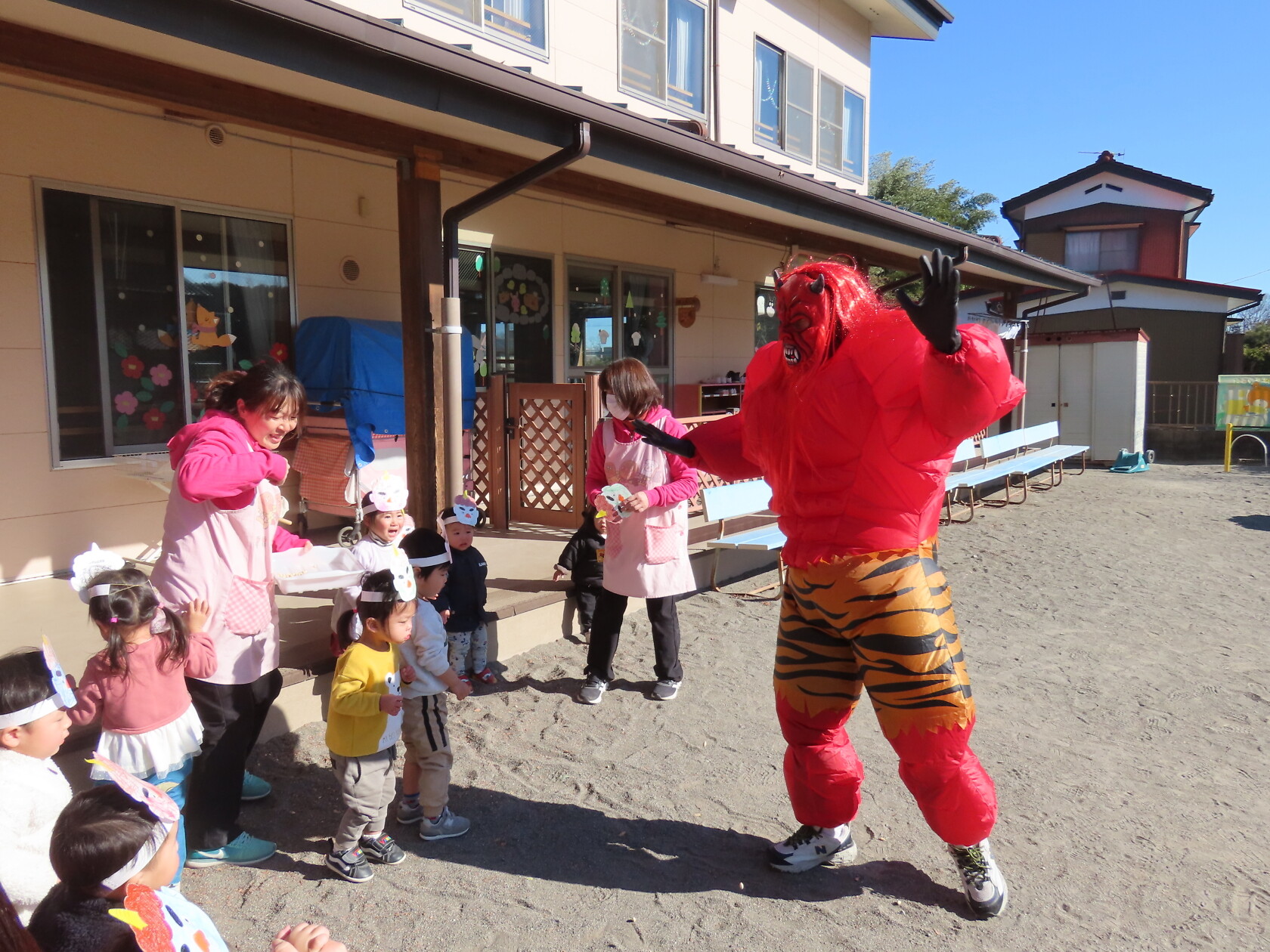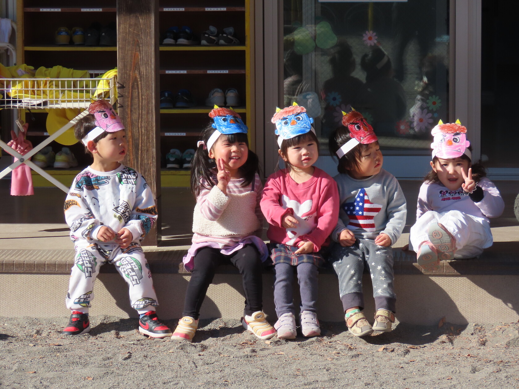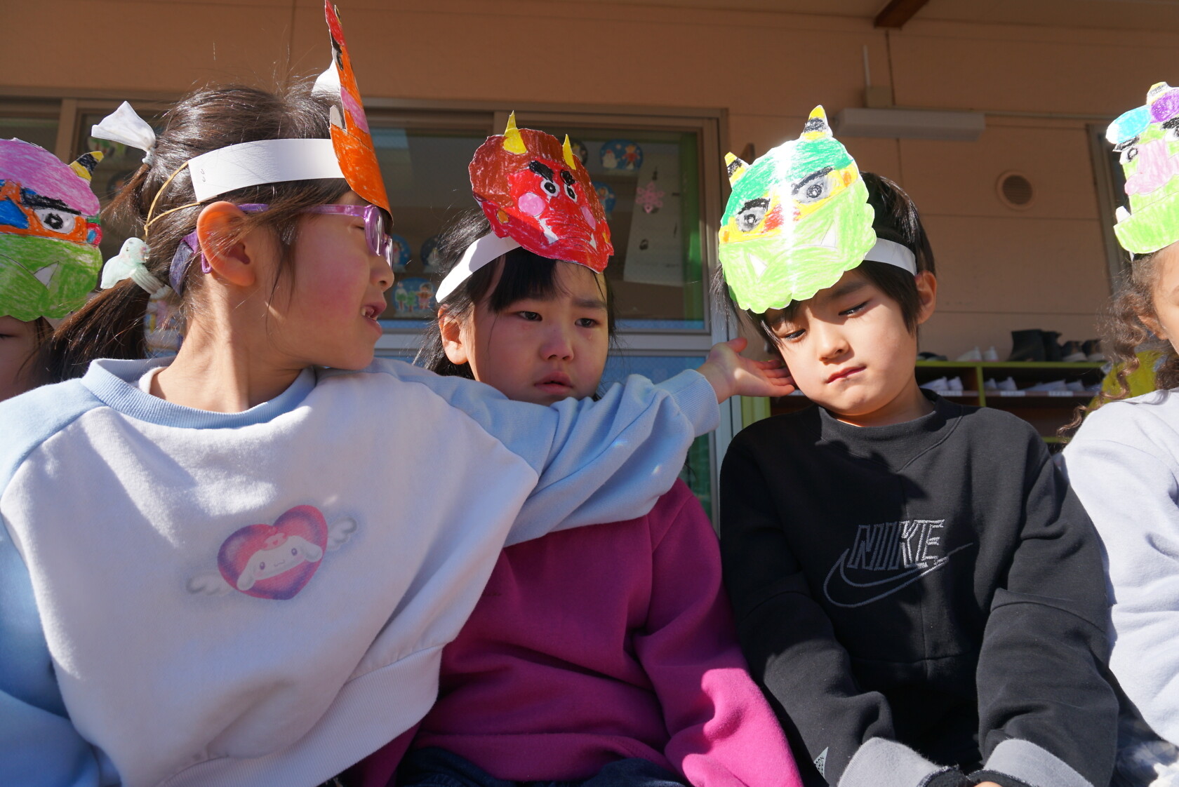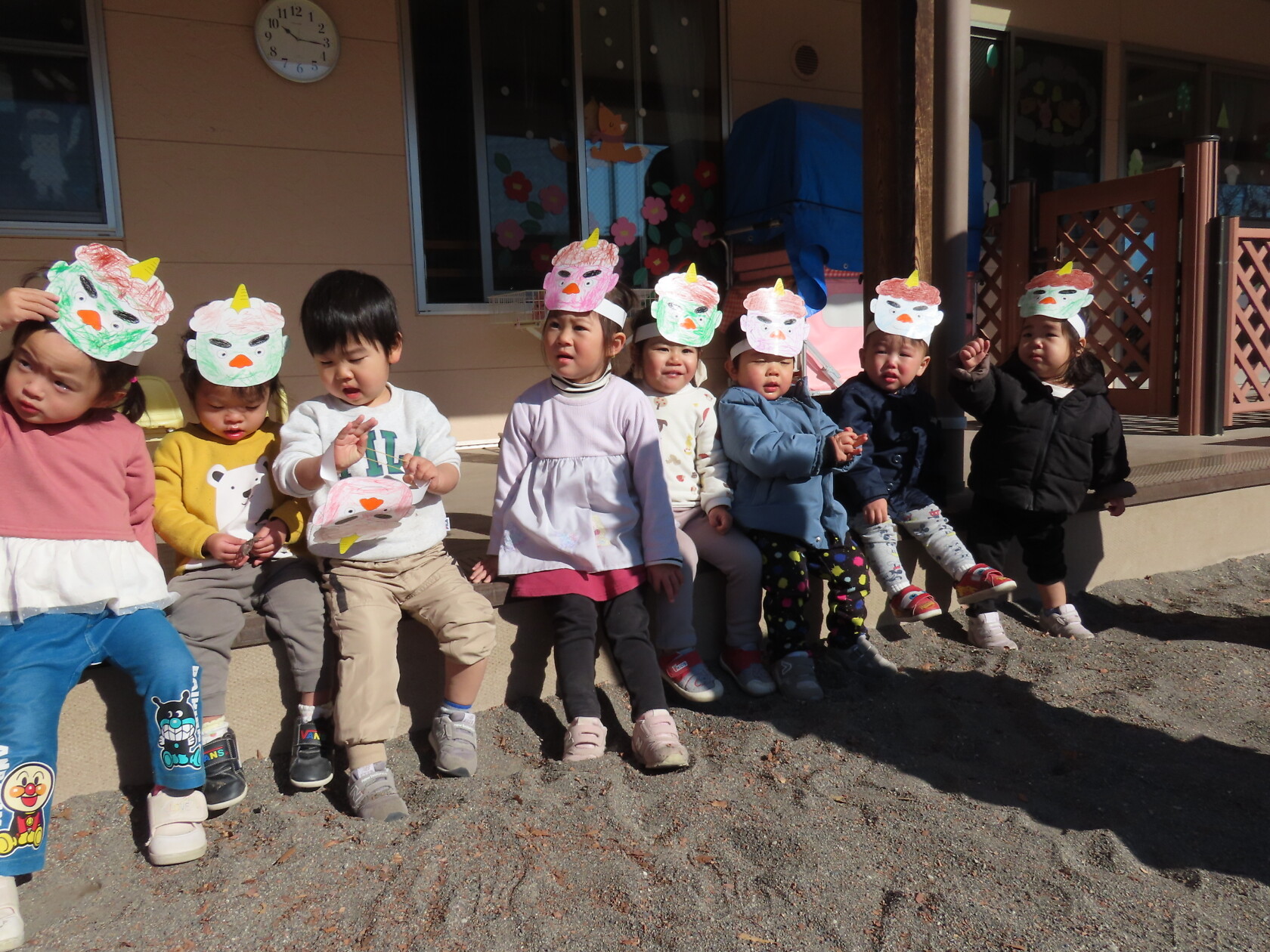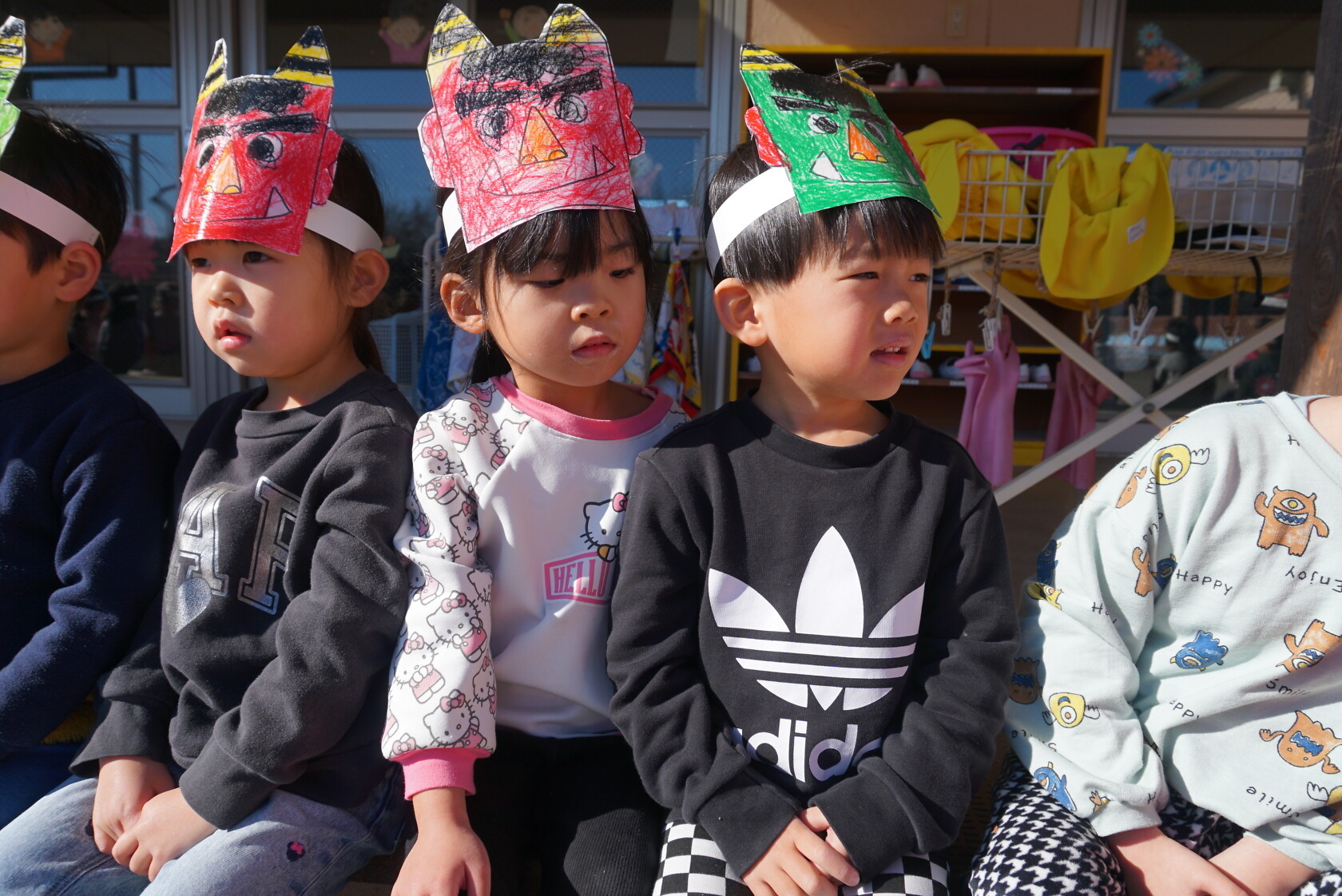 病気や悪いものとされる怖い鬼に無病息災をねがって豆をなげました!!