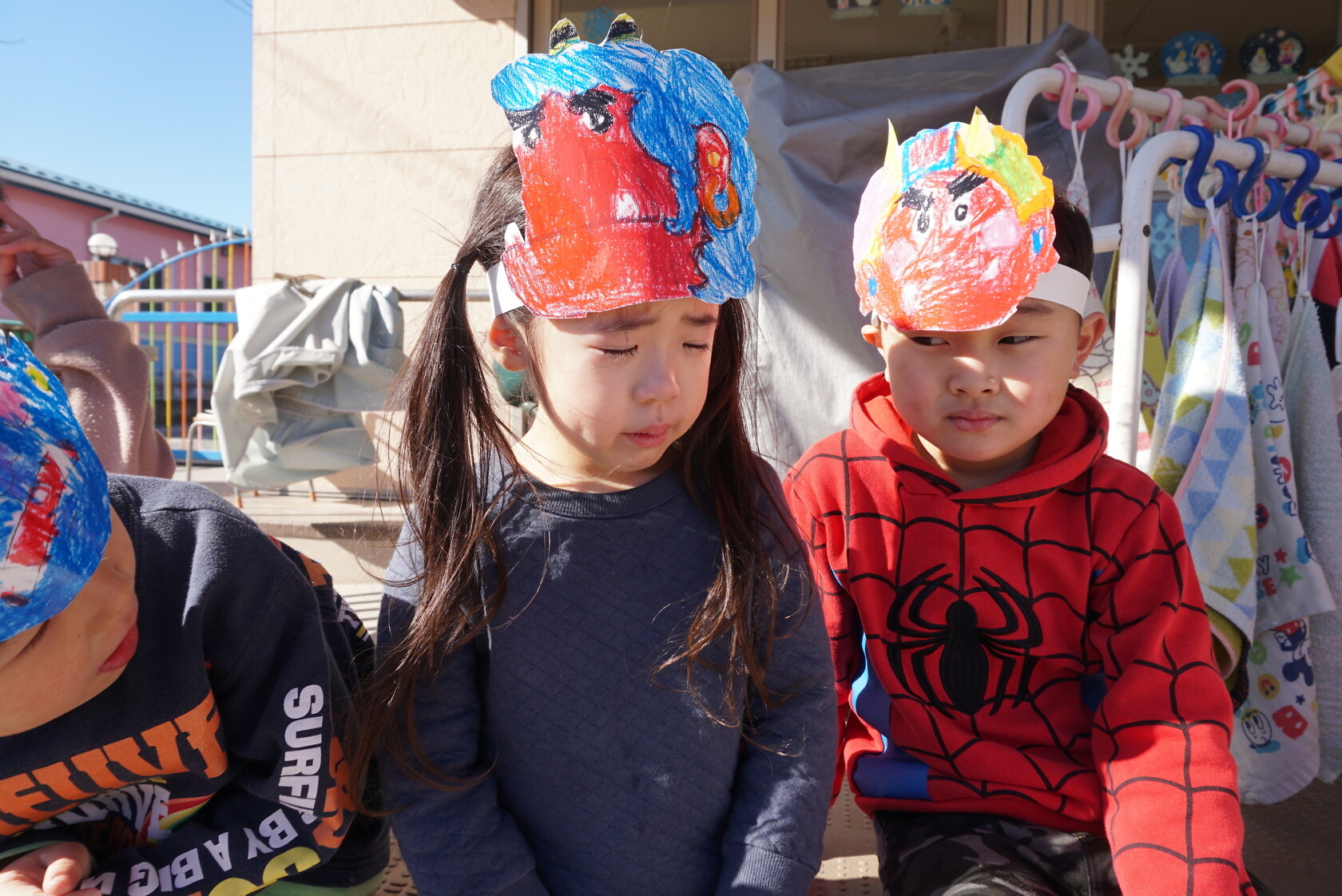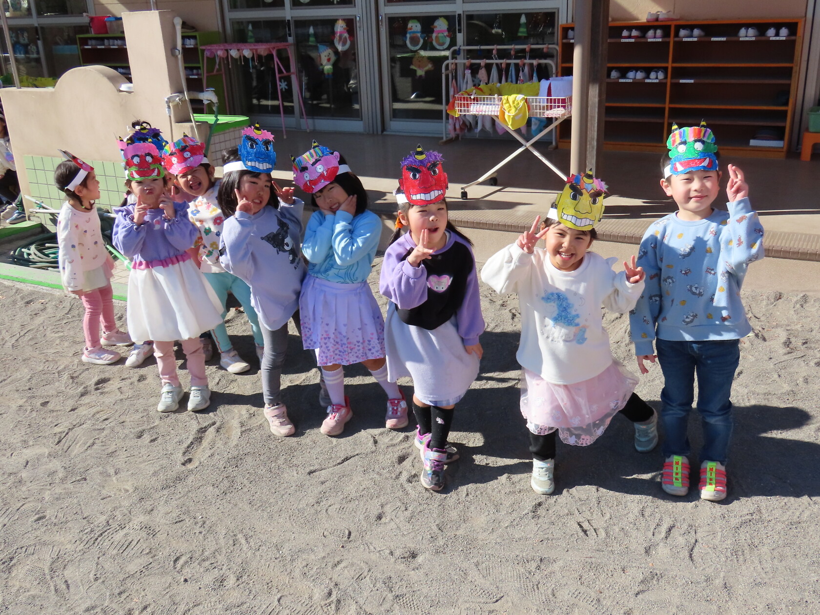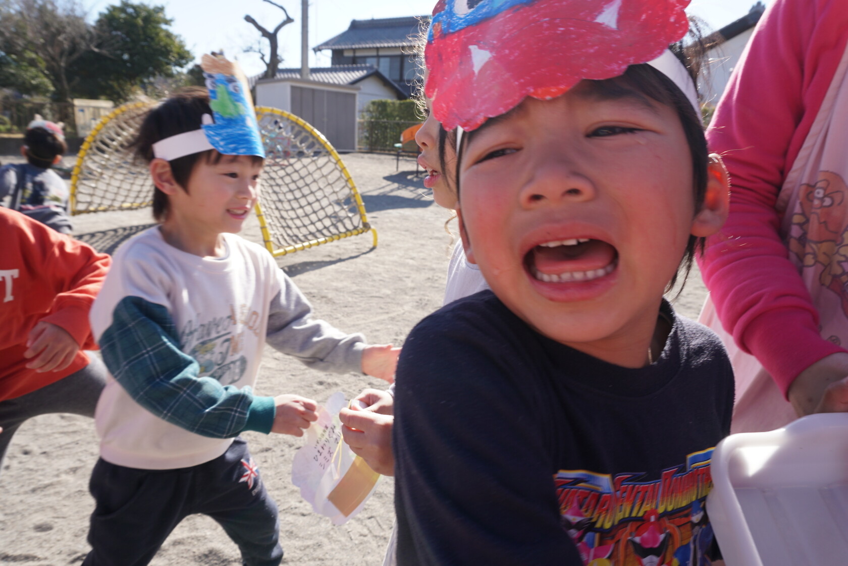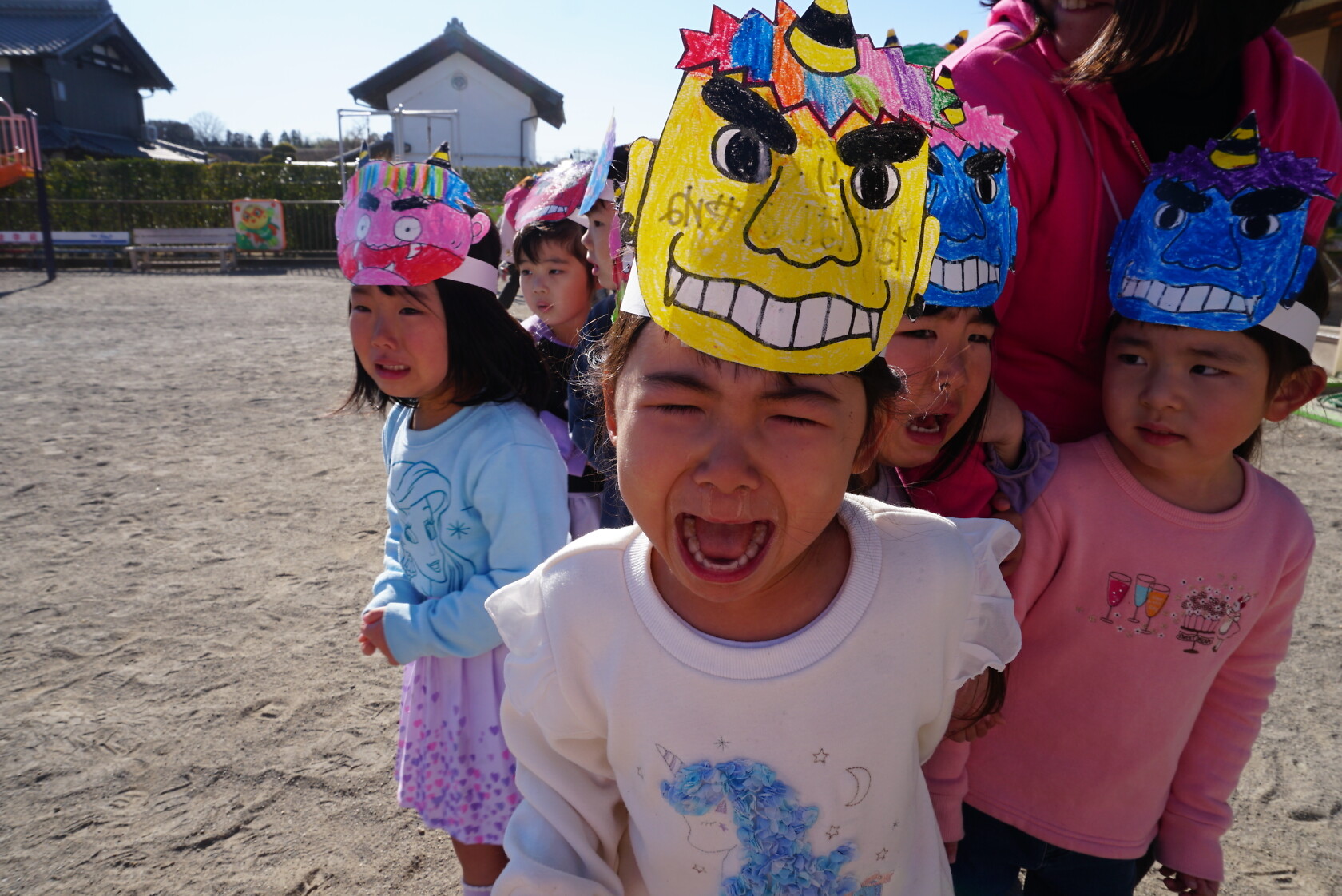 病気や悪いものとされる怖い鬼に無病息災をねがって豆をなげました!!