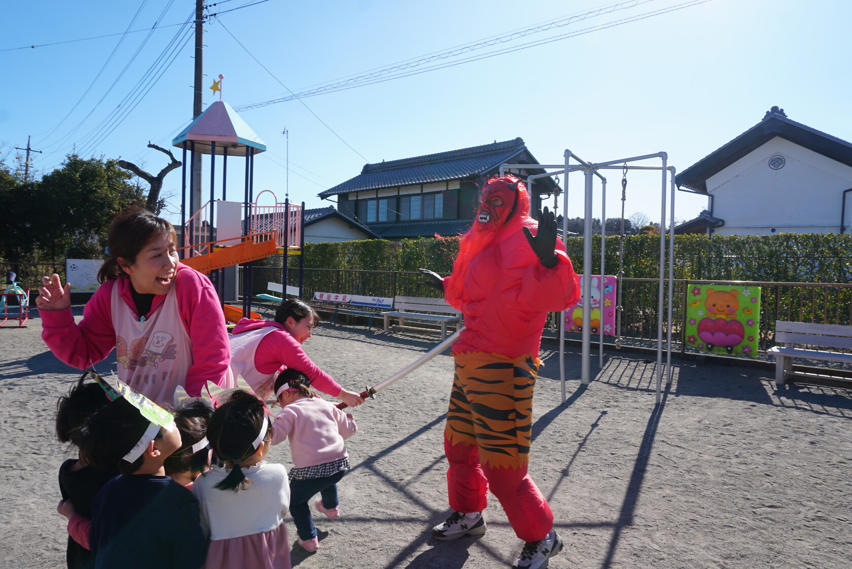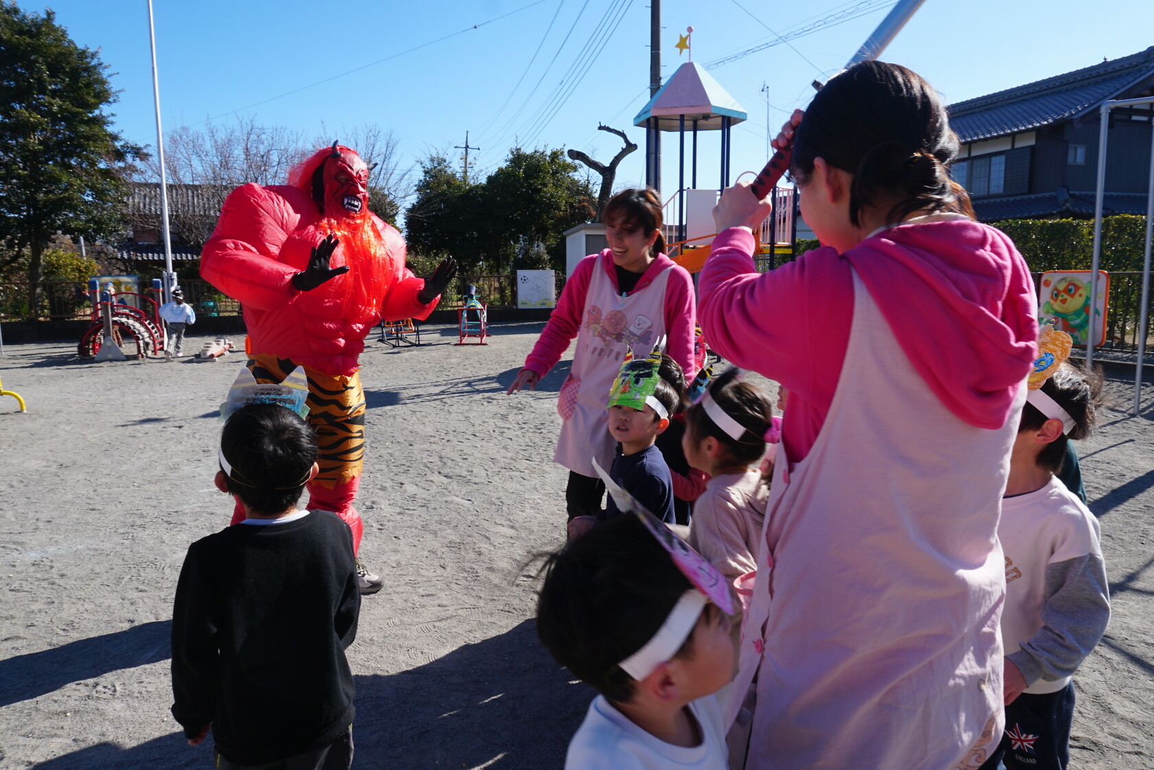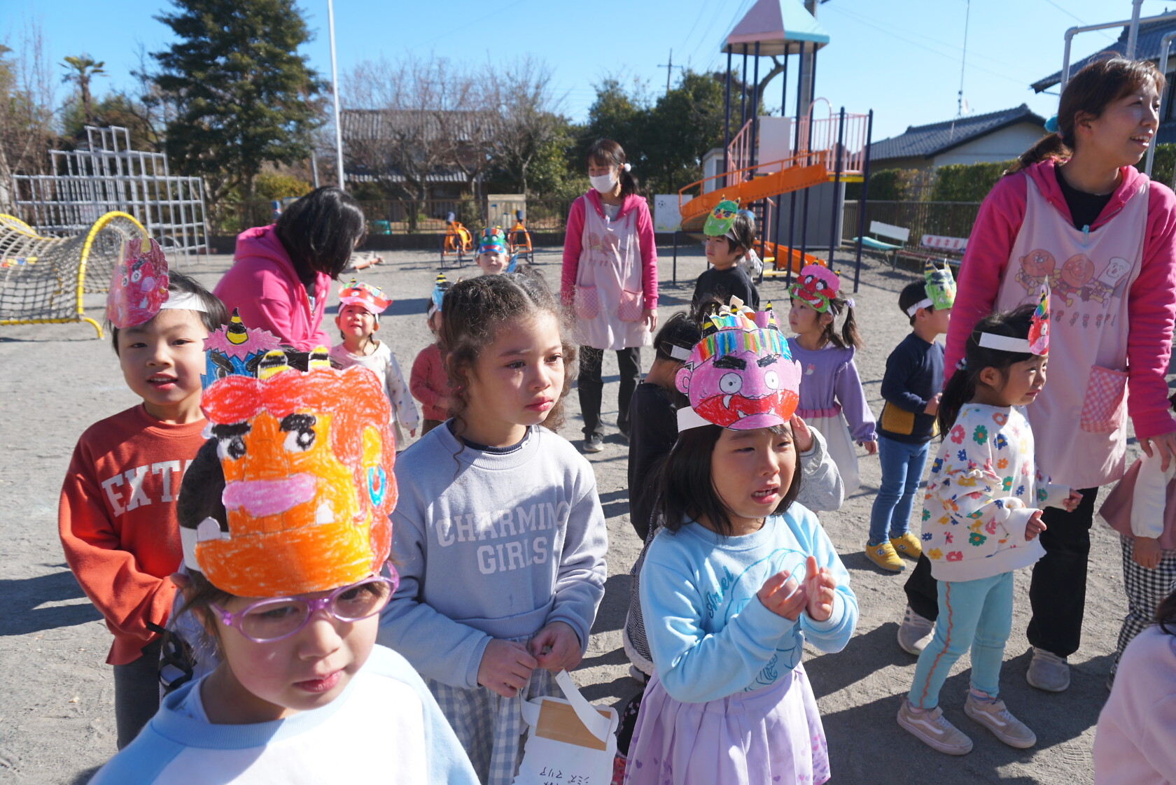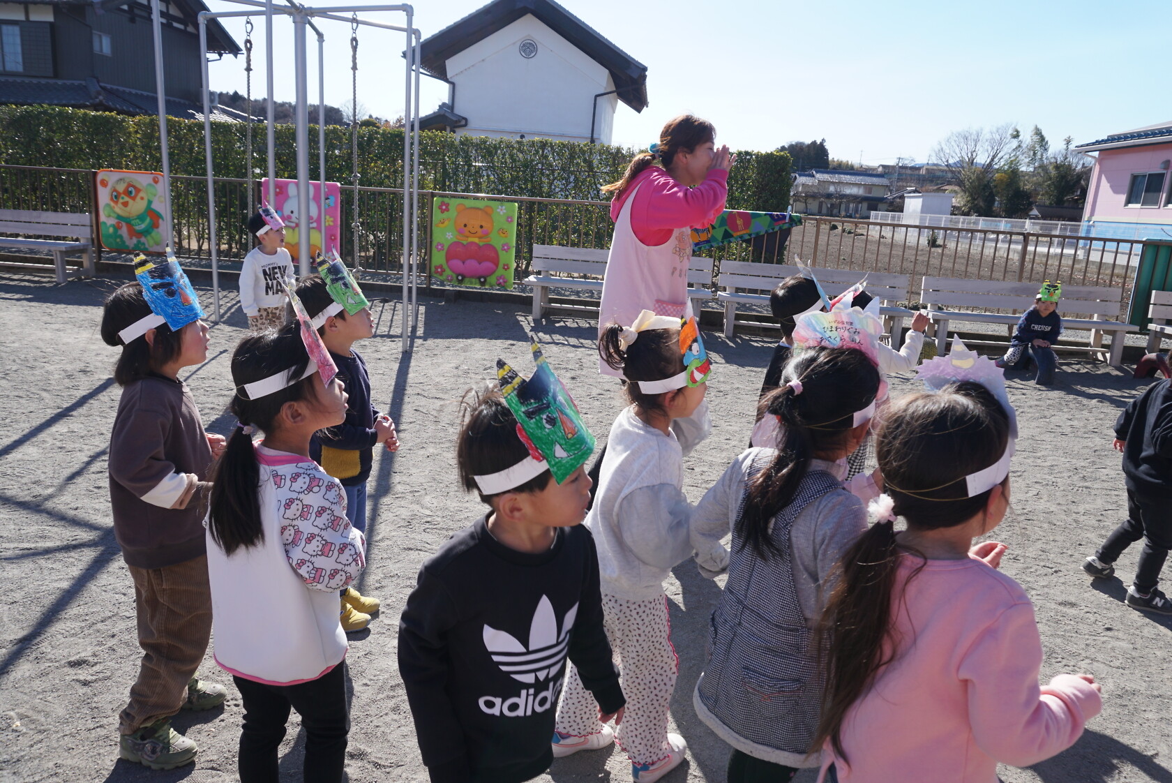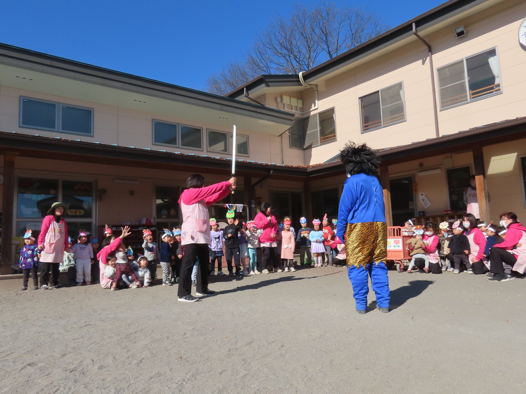 病気や悪いものとされる怖い鬼に無病息災をねがって豆をなげました!!
