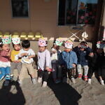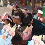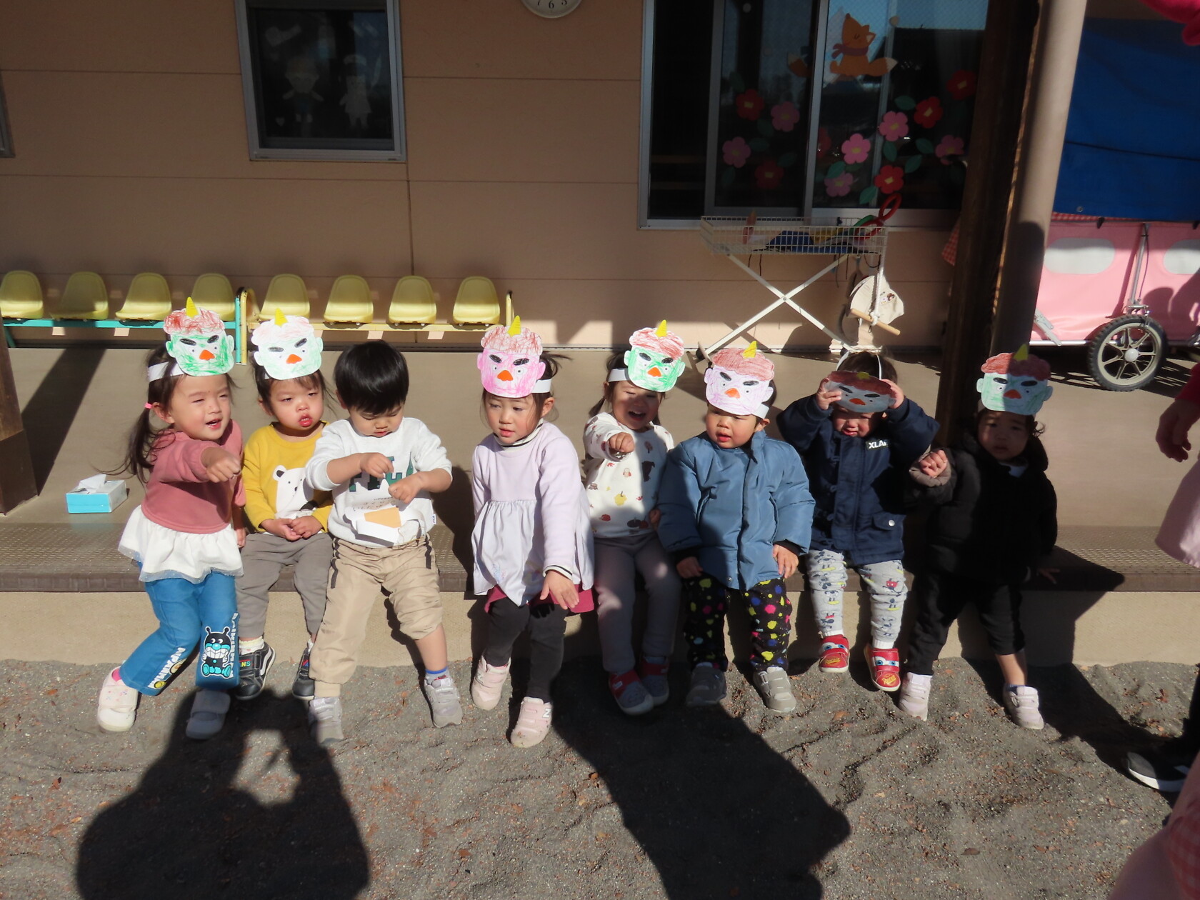 今日鬼のお面を持ち帰りますのでお家でもぜひ、豆をまいてみてくださいね!