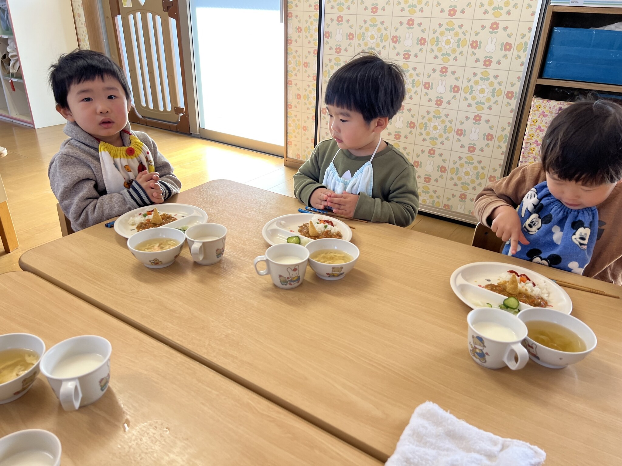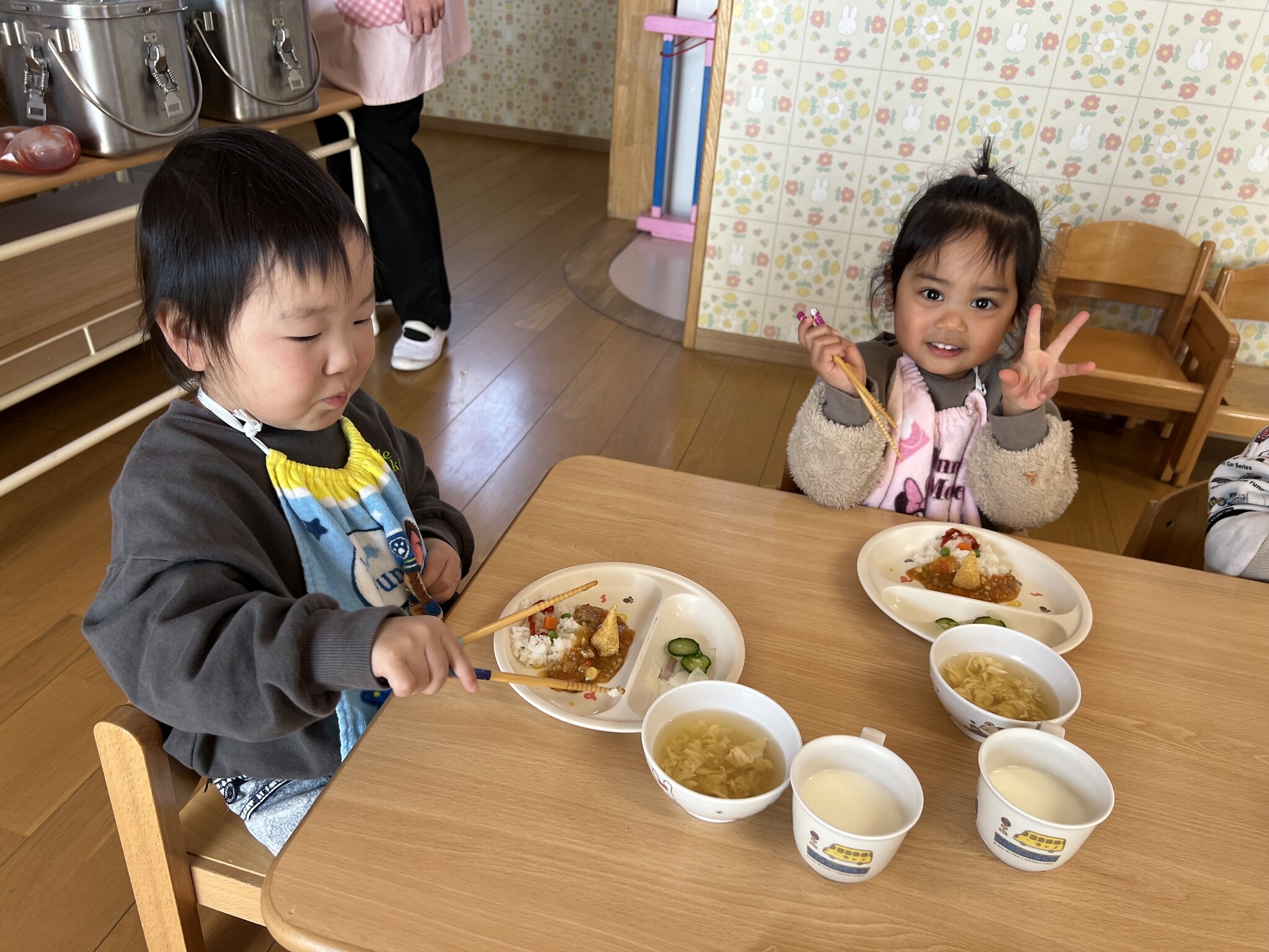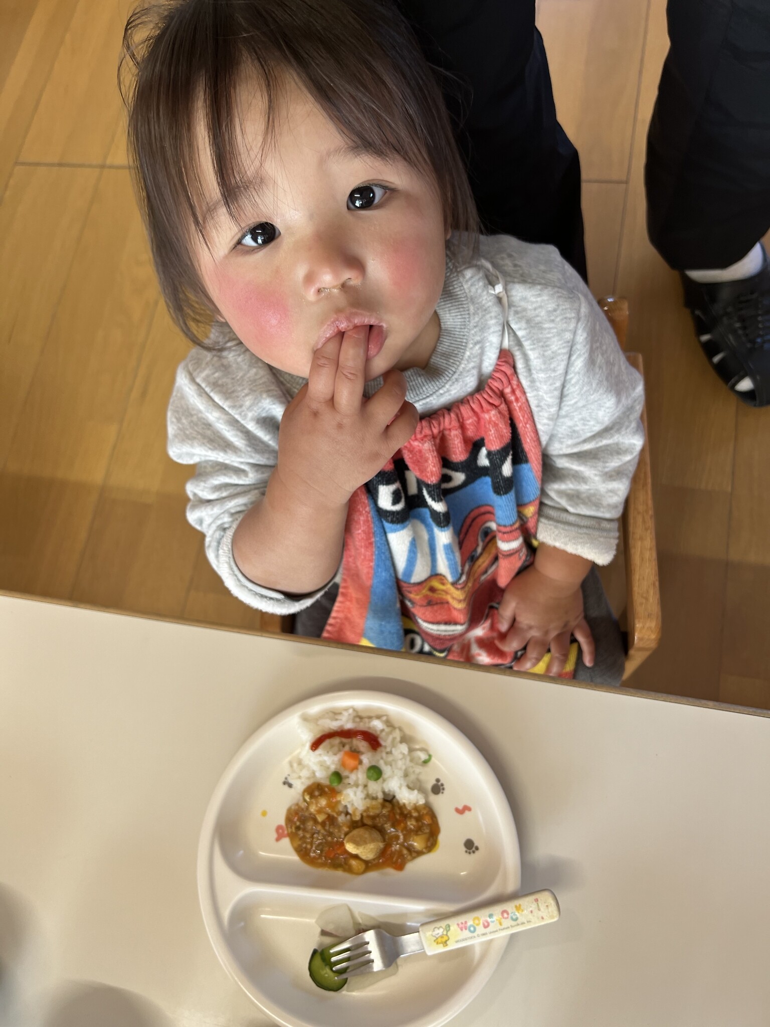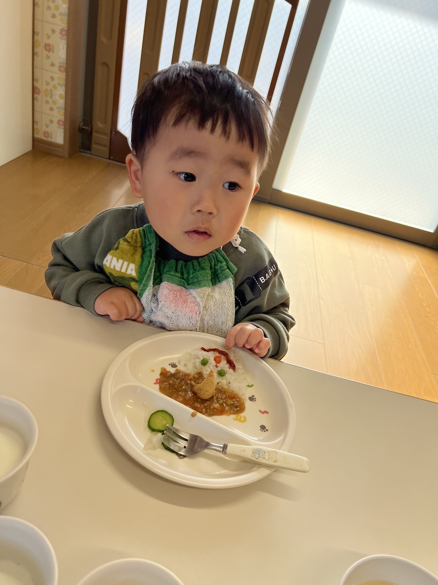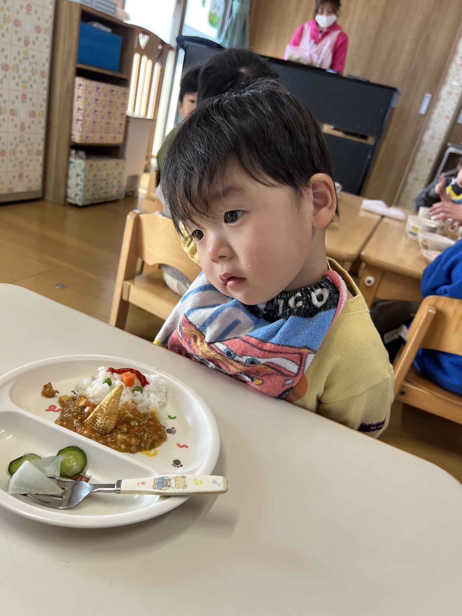 今日のできごと(節分②) 公開済み: 2025年1月31日更新: 2025年1月31日 今日は節分と言うことで行事食がでました!! 毎年恒例、鬼のカレーライスにみんな大喜びでした!! 鬼の角に「給食なのにおかしがのってる」と不思議がっていました😁