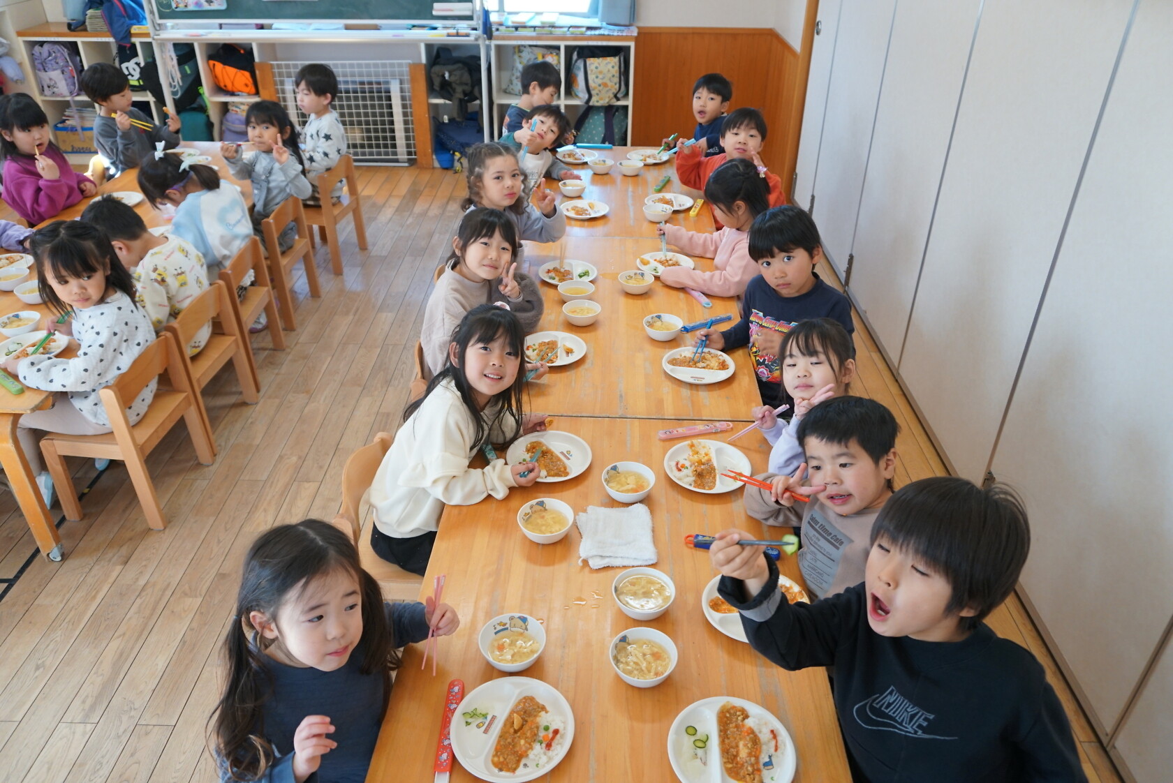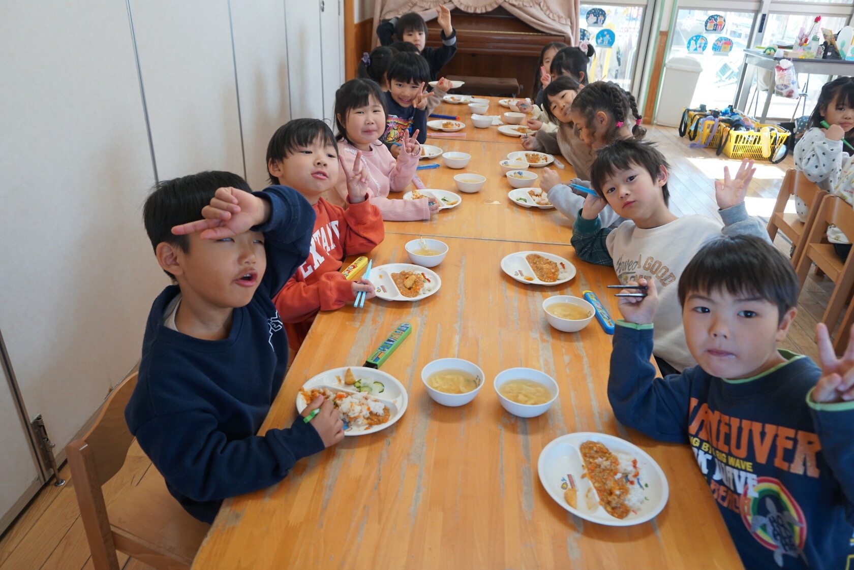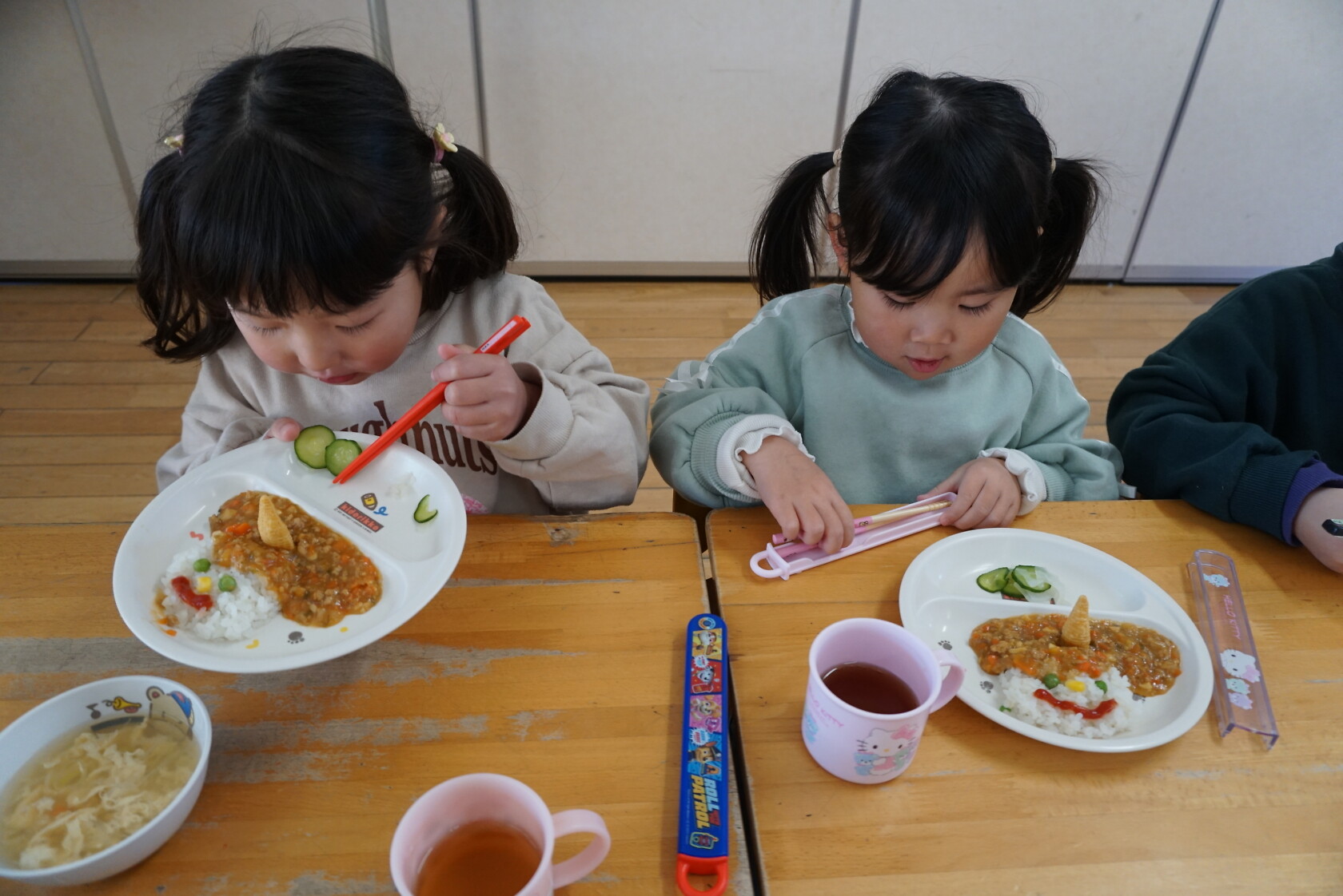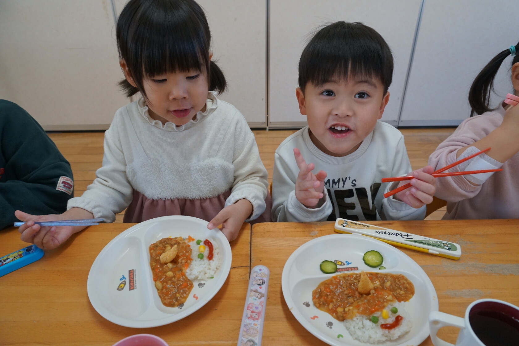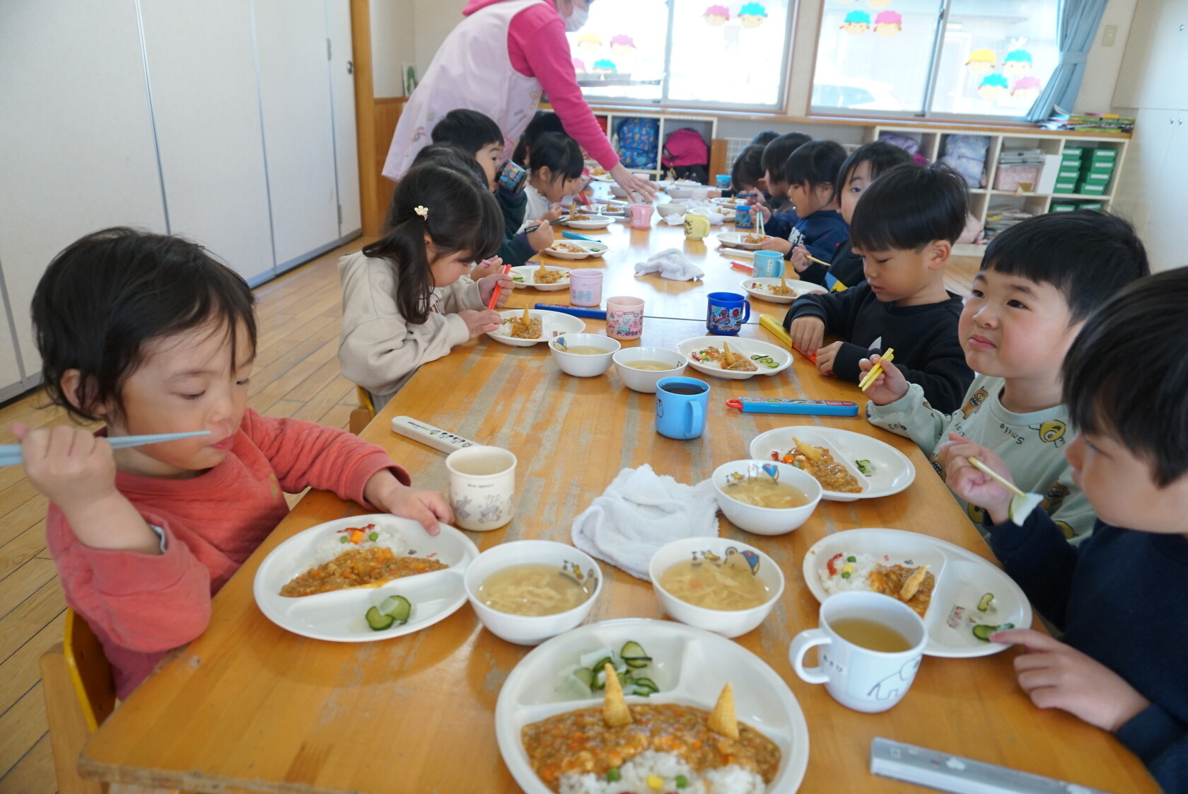 今日のできごと(節分②) 公開済み: 2025年1月31日更新: 2025年1月31日 今日は節分と言うことで行事食がでました!! 毎年恒例、鬼のカレーライスにみんな大喜びでした!! 鬼の角に「給食なのにおかしがのってる」と不思議がっていました😁