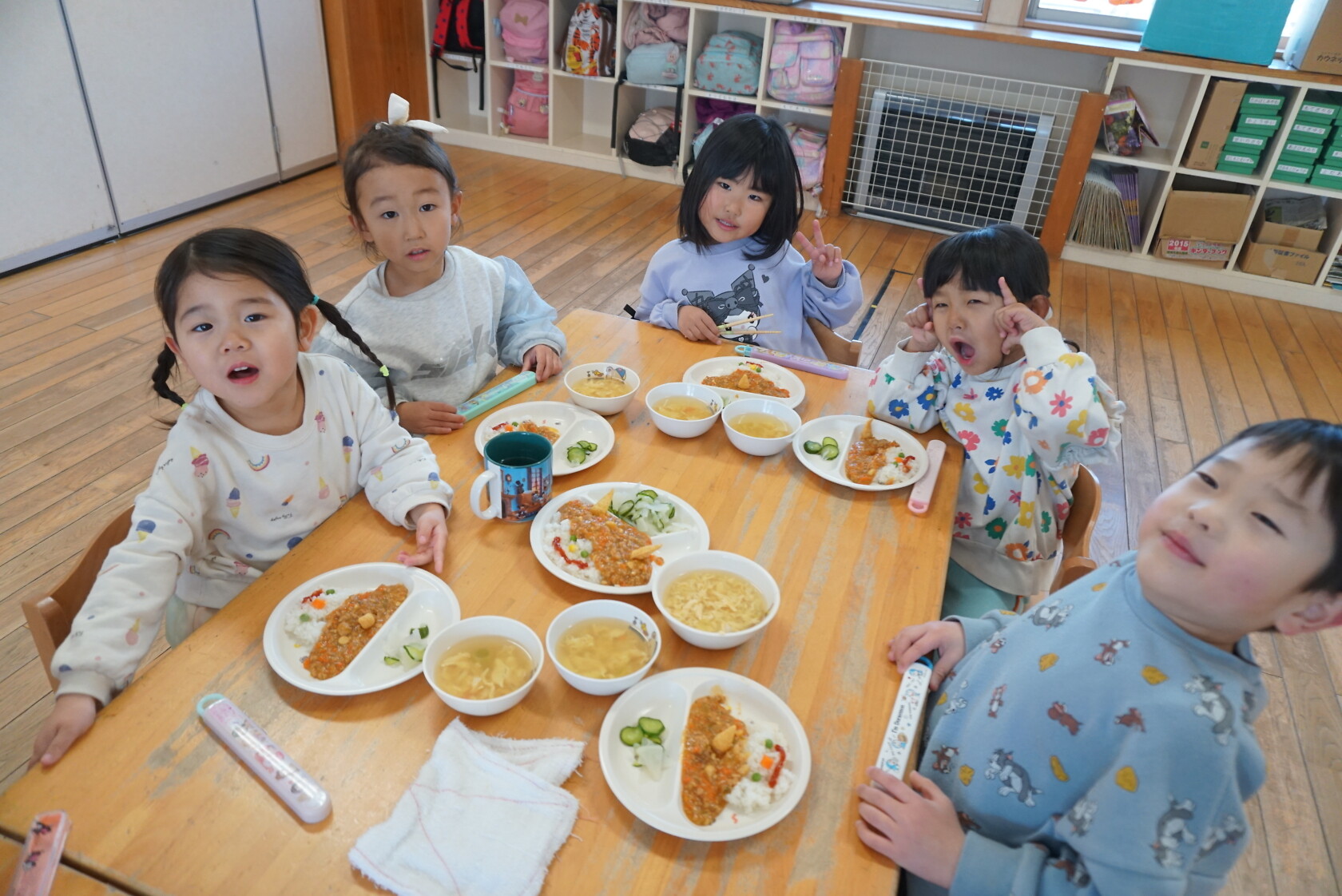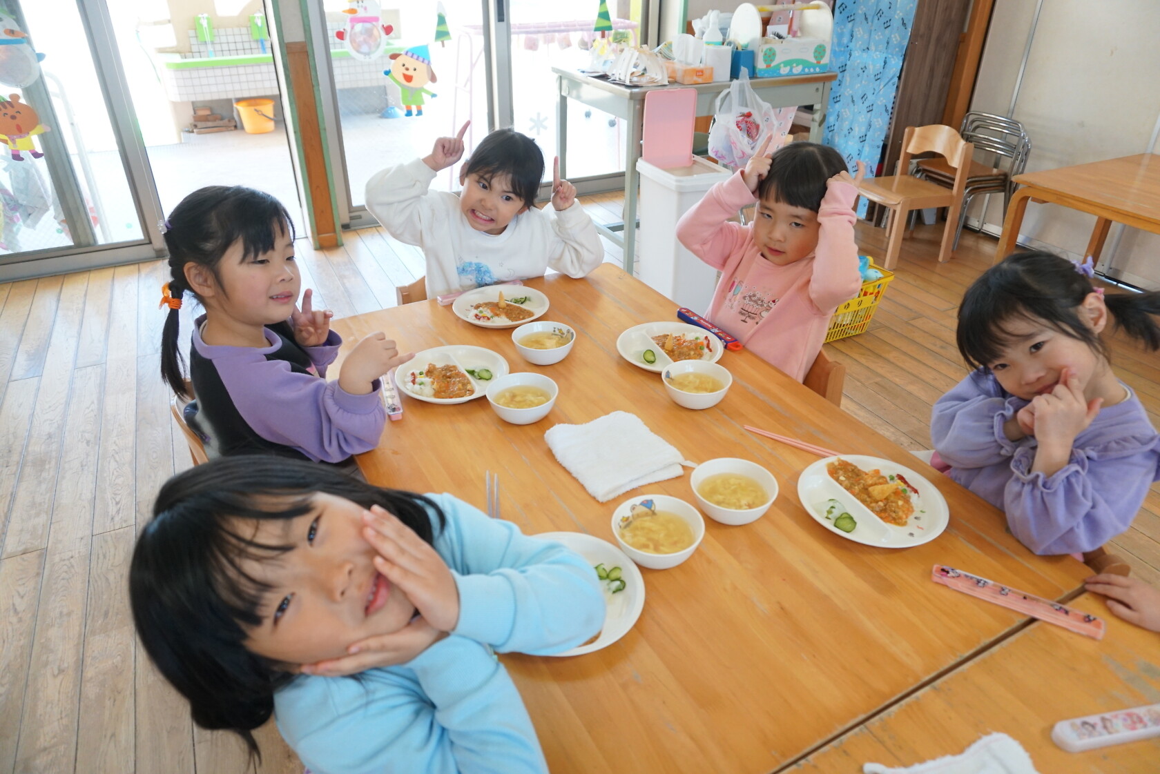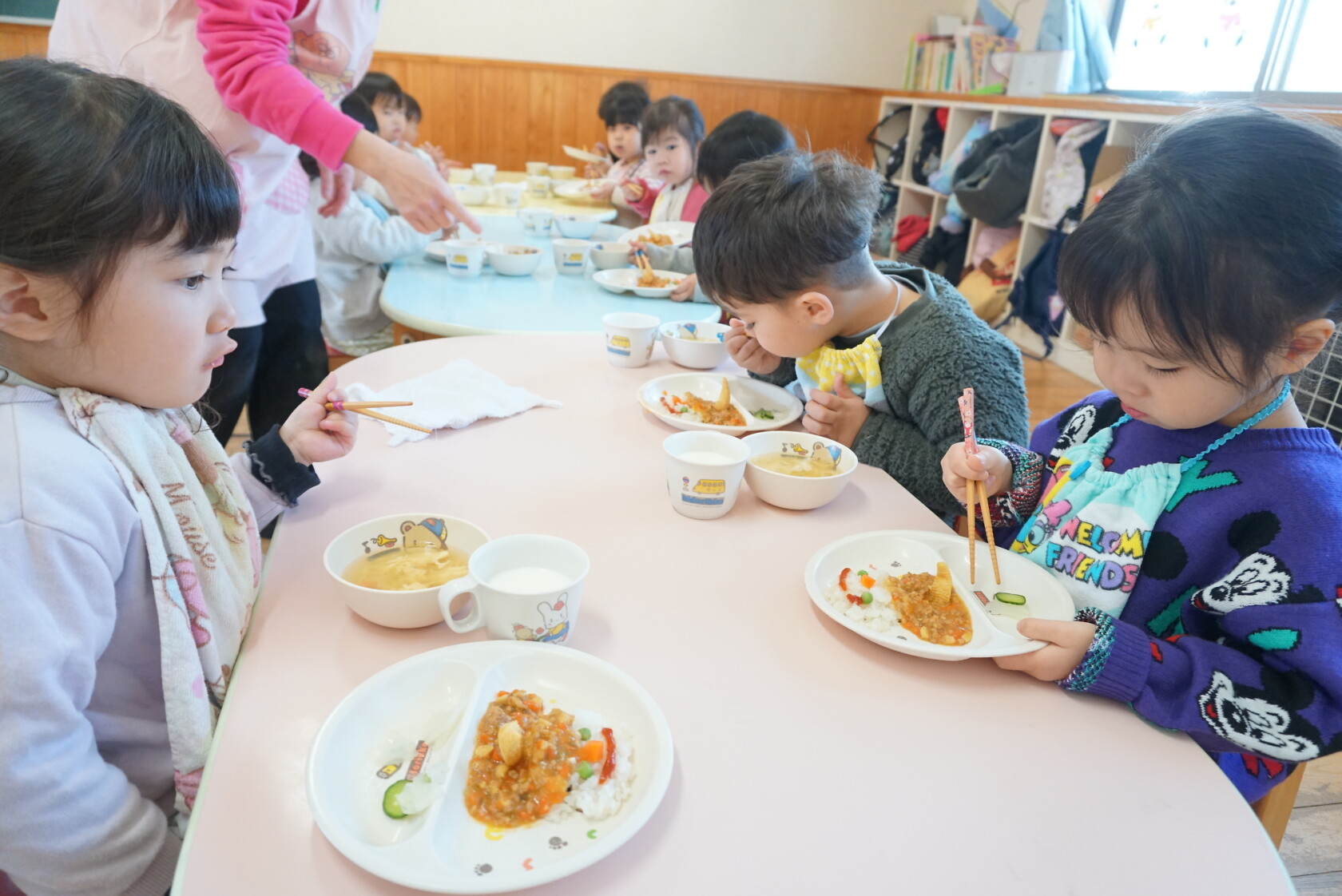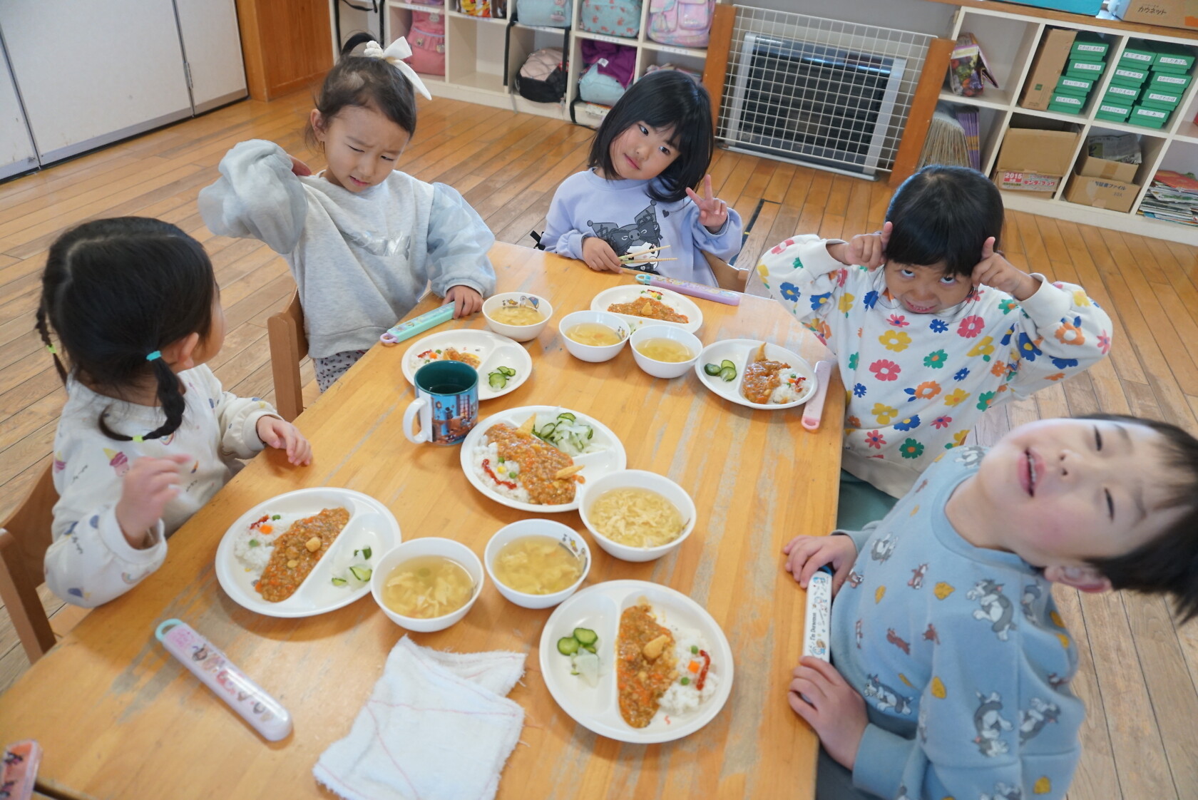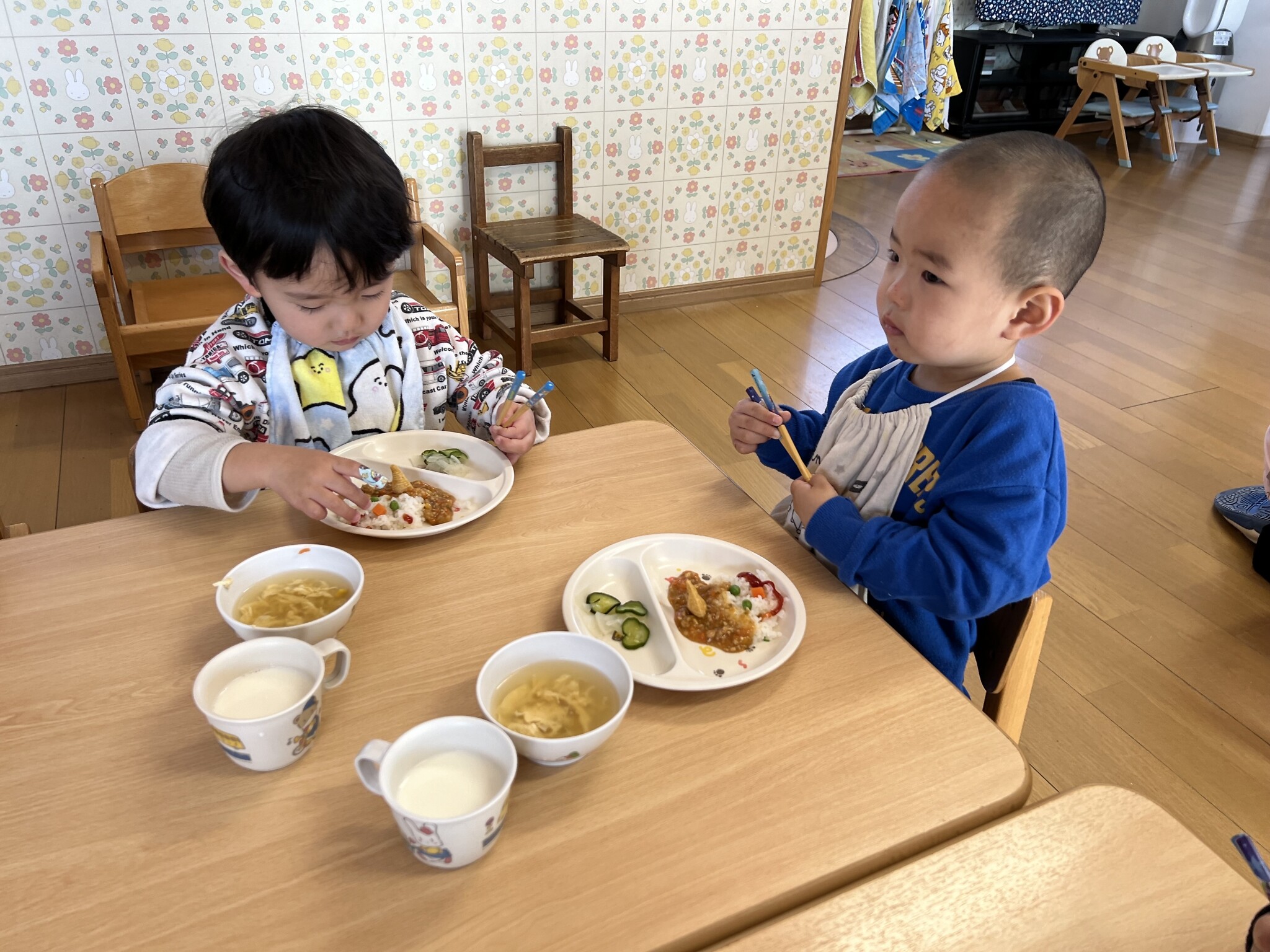 今日のできごと(節分②) 公開済み: 2025年1月31日更新: 2025年1月31日 今日は節分と言うことで行事食がでました!! 毎年恒例、鬼のカレーライスにみんな大喜びでした!! 鬼の角に「給食なのにおかしがのってる」と不思議がっていました😁