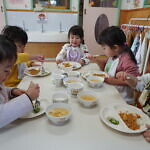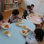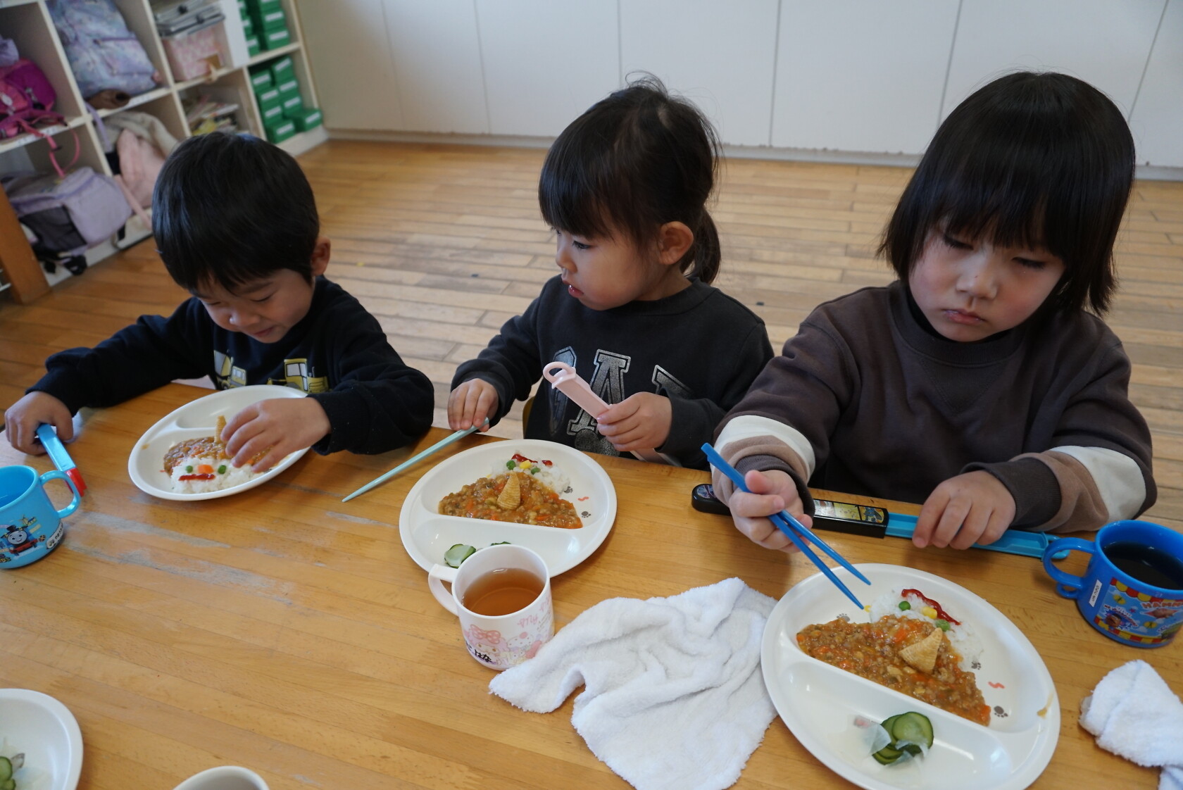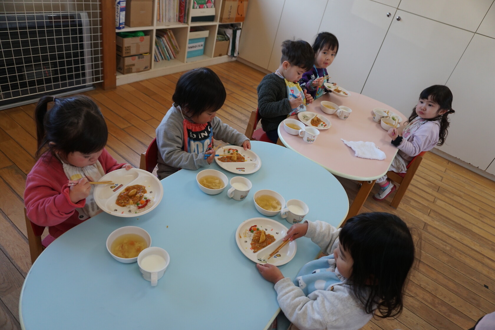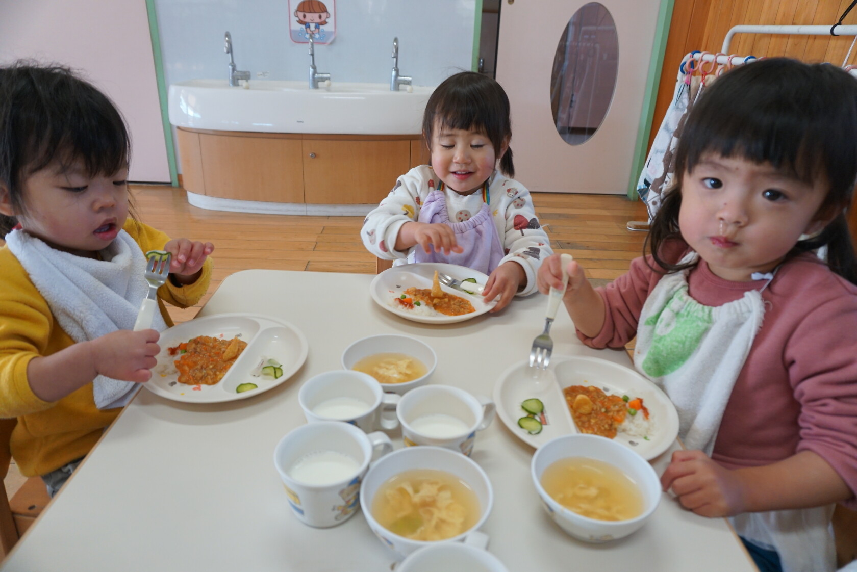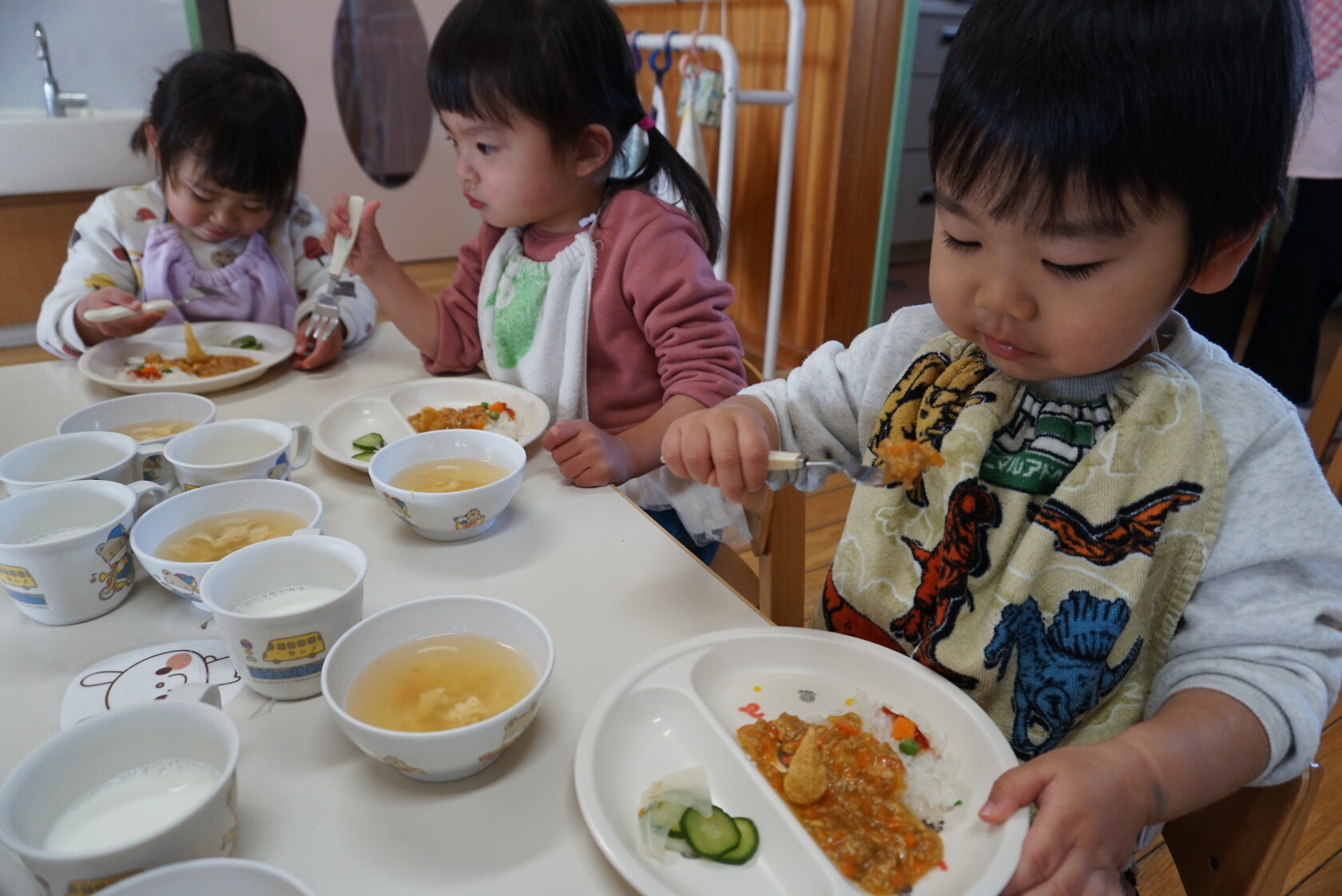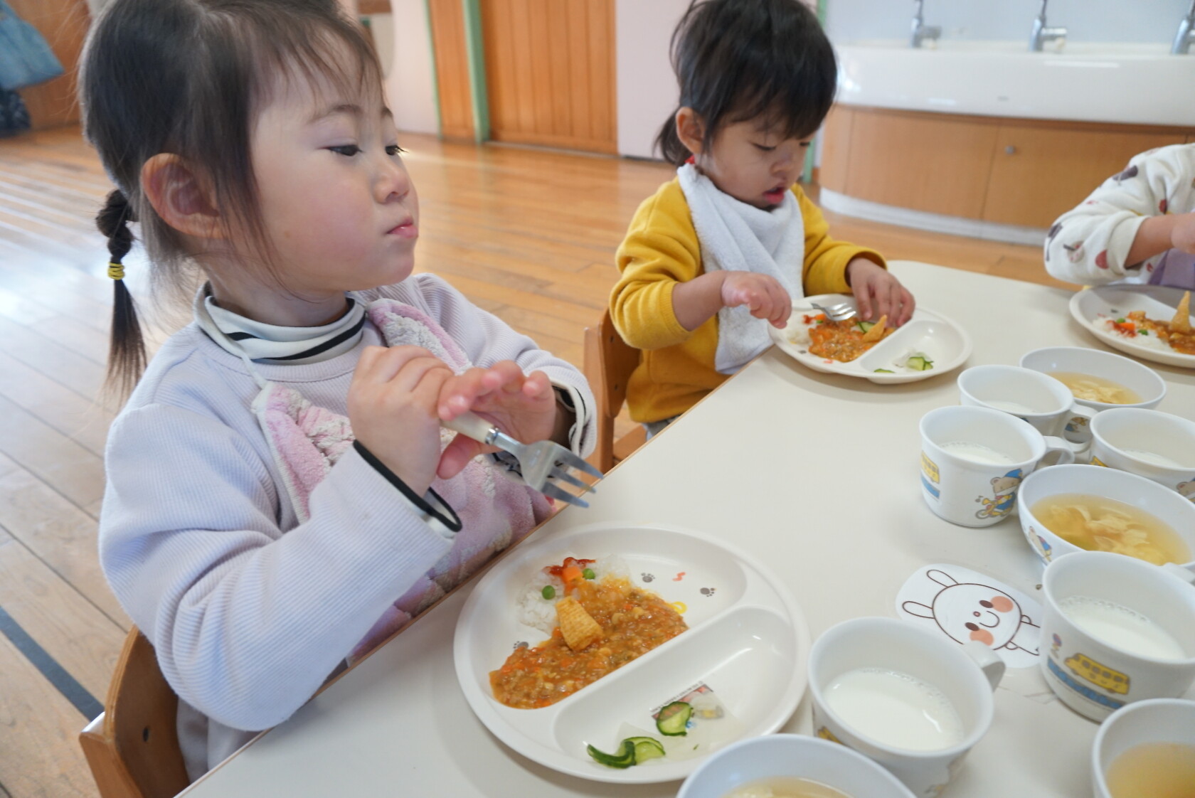 今日のできごと(節分②) 公開済み: 2025年1月31日更新: 2025年1月31日 今日は節分と言うことで行事食がでました!! 毎年恒例、鬼のカレーライスにみんな大喜びでした!! 鬼の角に「給食なのにおかしがのってる」と不思議がっていました😁